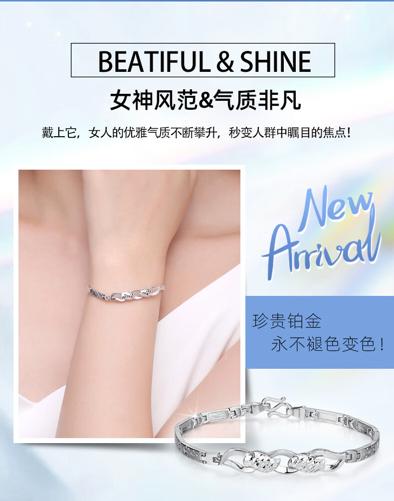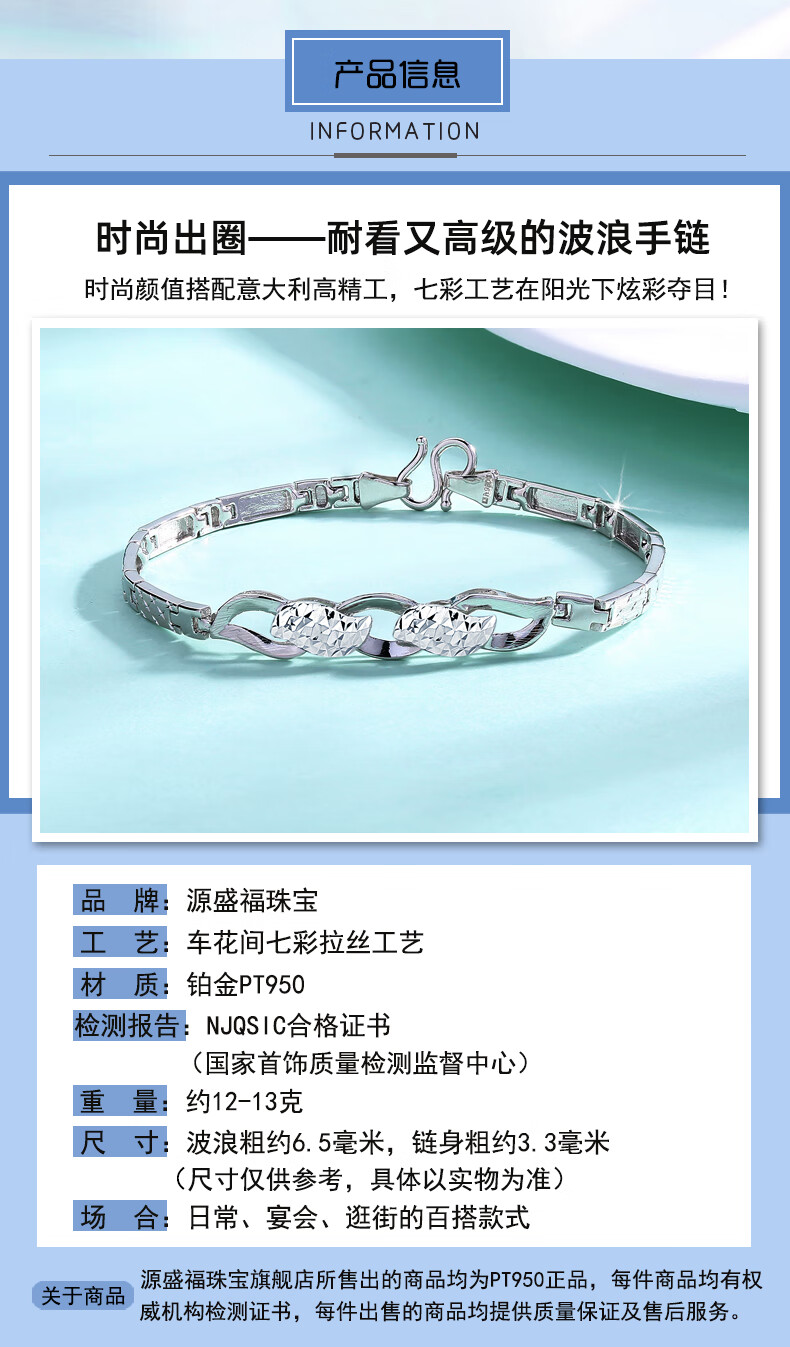 Yuan Shengfu's new PT950 fashionable colorful wave platinum bracelet, exquisite shiny platinum hand jewelry for women, 12.23 grams, length 16CM