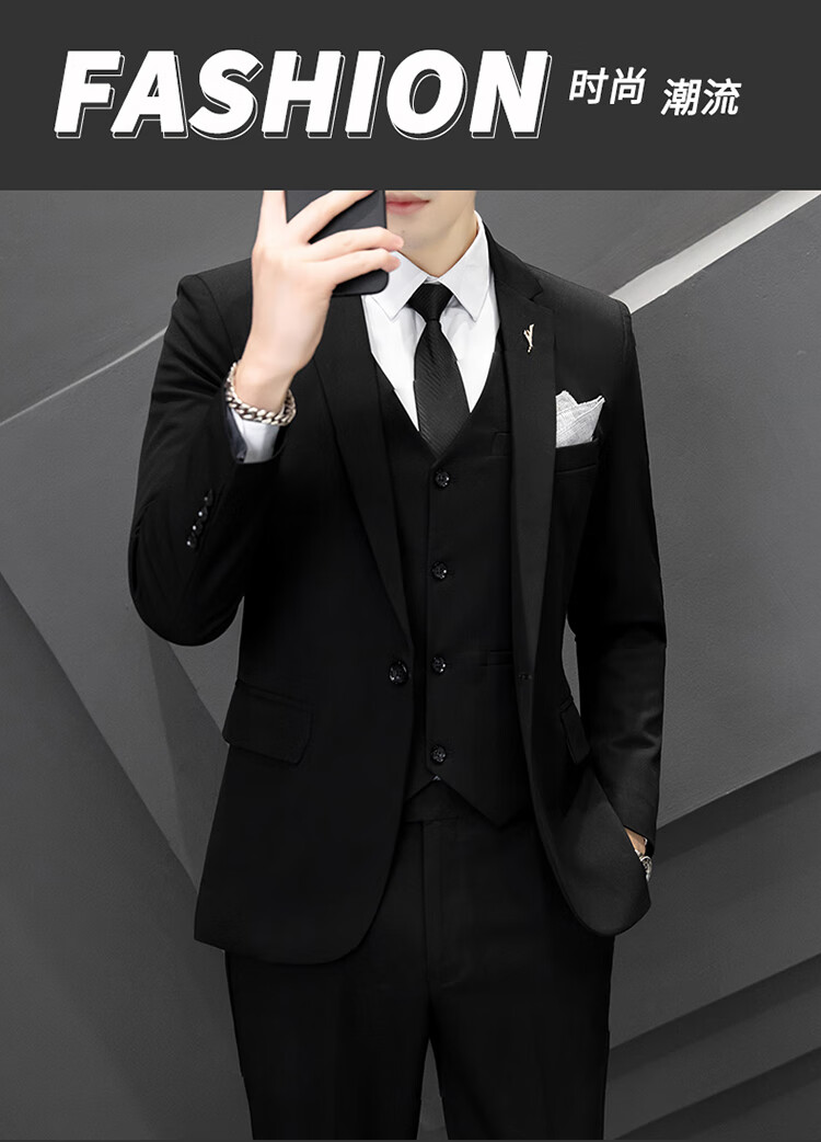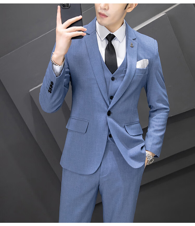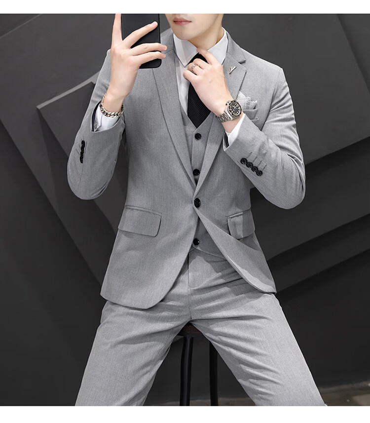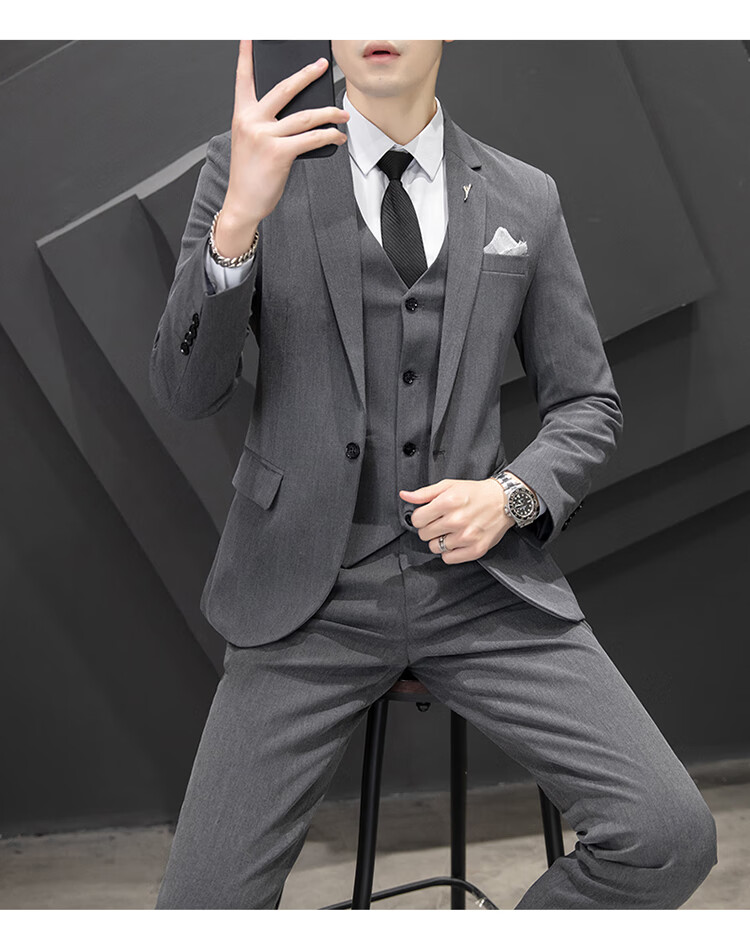 Pierre Cardin suit men's Korean style casual business formal jacket slim fit groomsmen wedding dress no-iron suit knitted apricot two-button suit + pants + vest + shirt S recommended 80-95Jin Jin equals 0.5 kg