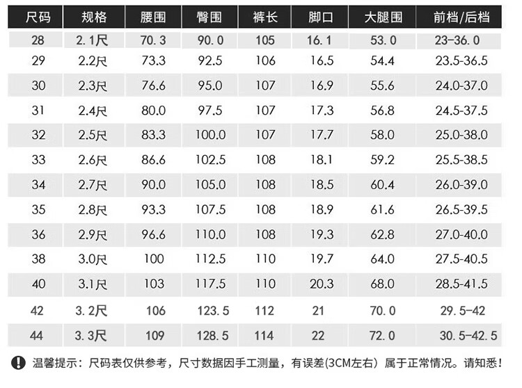 USA(inch) 28-30 30-32 32-34 34-38 38-42