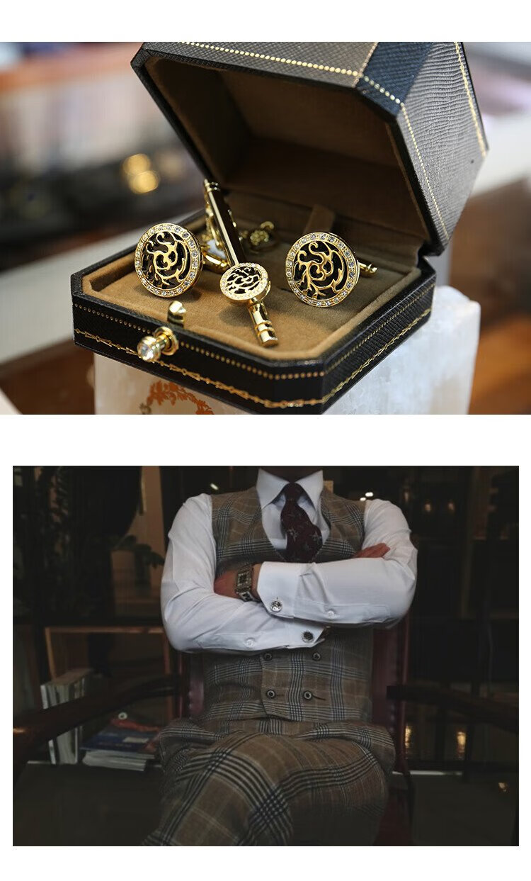 URBAN TAKE Cufflinks Men's Light Luxury Suit French Shirt Wedding Groom Customized Fashion Cuff Buttons Cuff Pins Golden Dragon Cuff Buttons + Tie Clip Gift Box