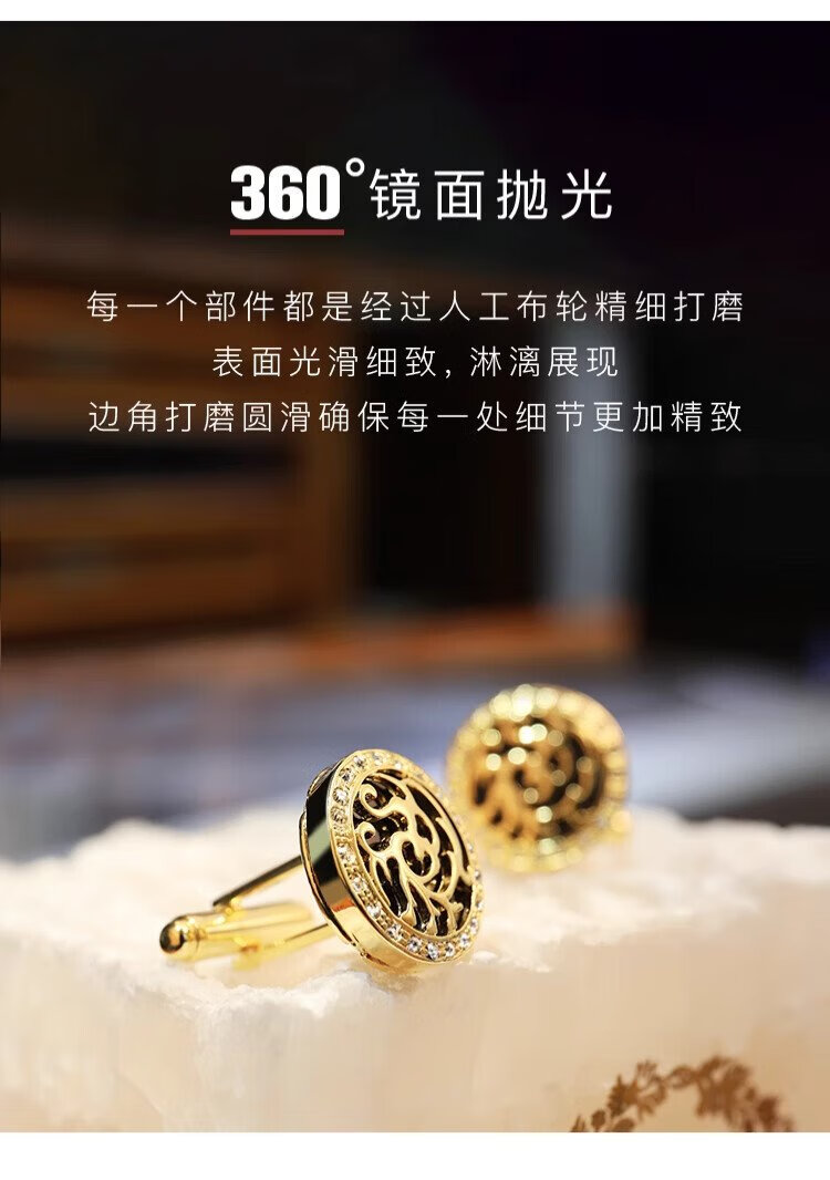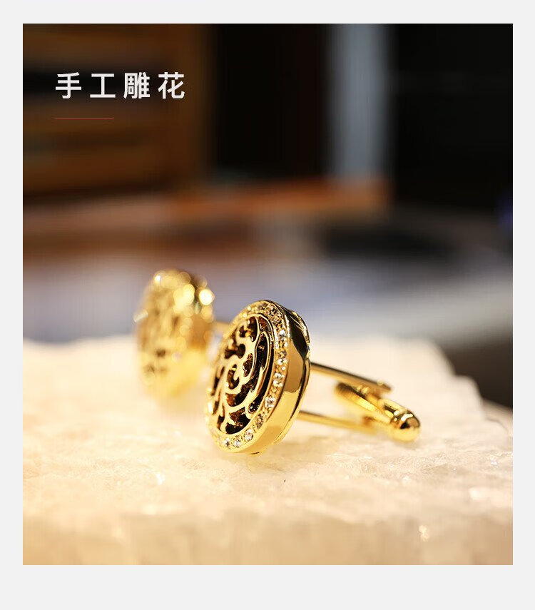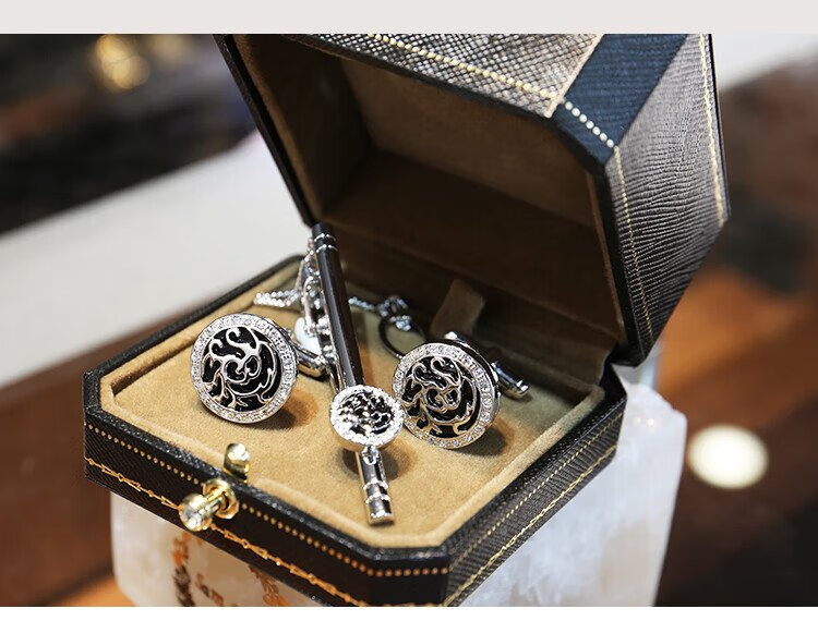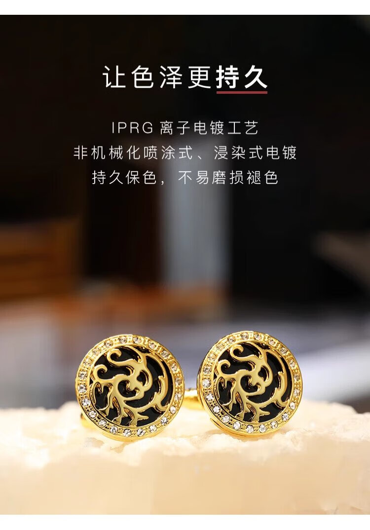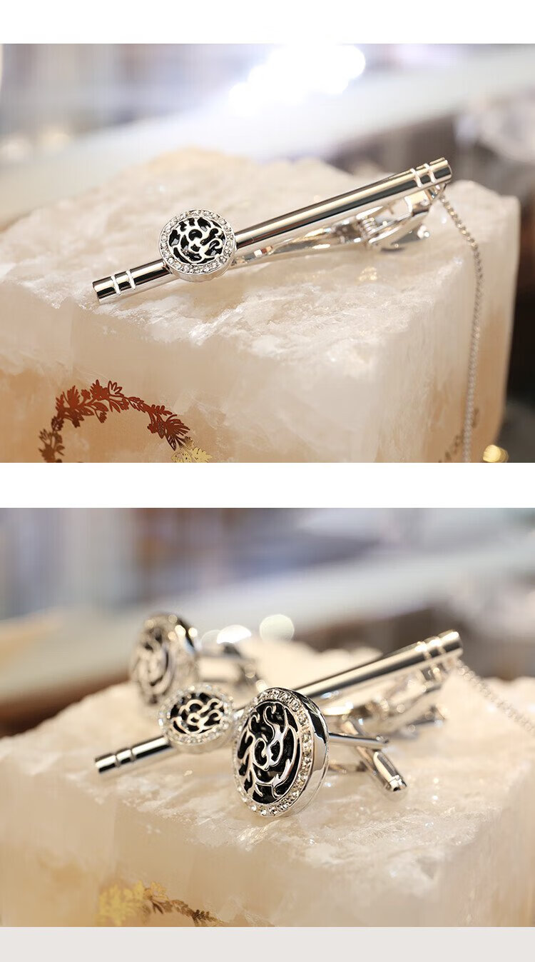 URBAN TAKE<Long Teng> Cufflinks Men's Light Luxury Suit French Shirt Wedding Groom Customized Fashion Cuff Buttons Cuff Pins Golden Dragon Cuff Buttons + Tie Clip Gift Box