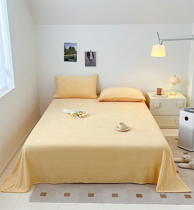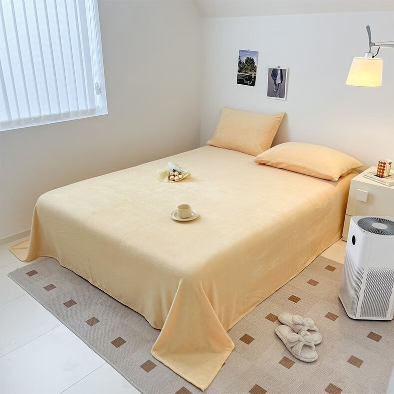 Antarctic winter thickened milk velvet sheet single piece 1.5 meters coral velvet solid color student dormitory autumn and winter bed blanket for bed baby yellow warm thickened milk velvet single sheet 120x230cm suitable for 0.9 bed