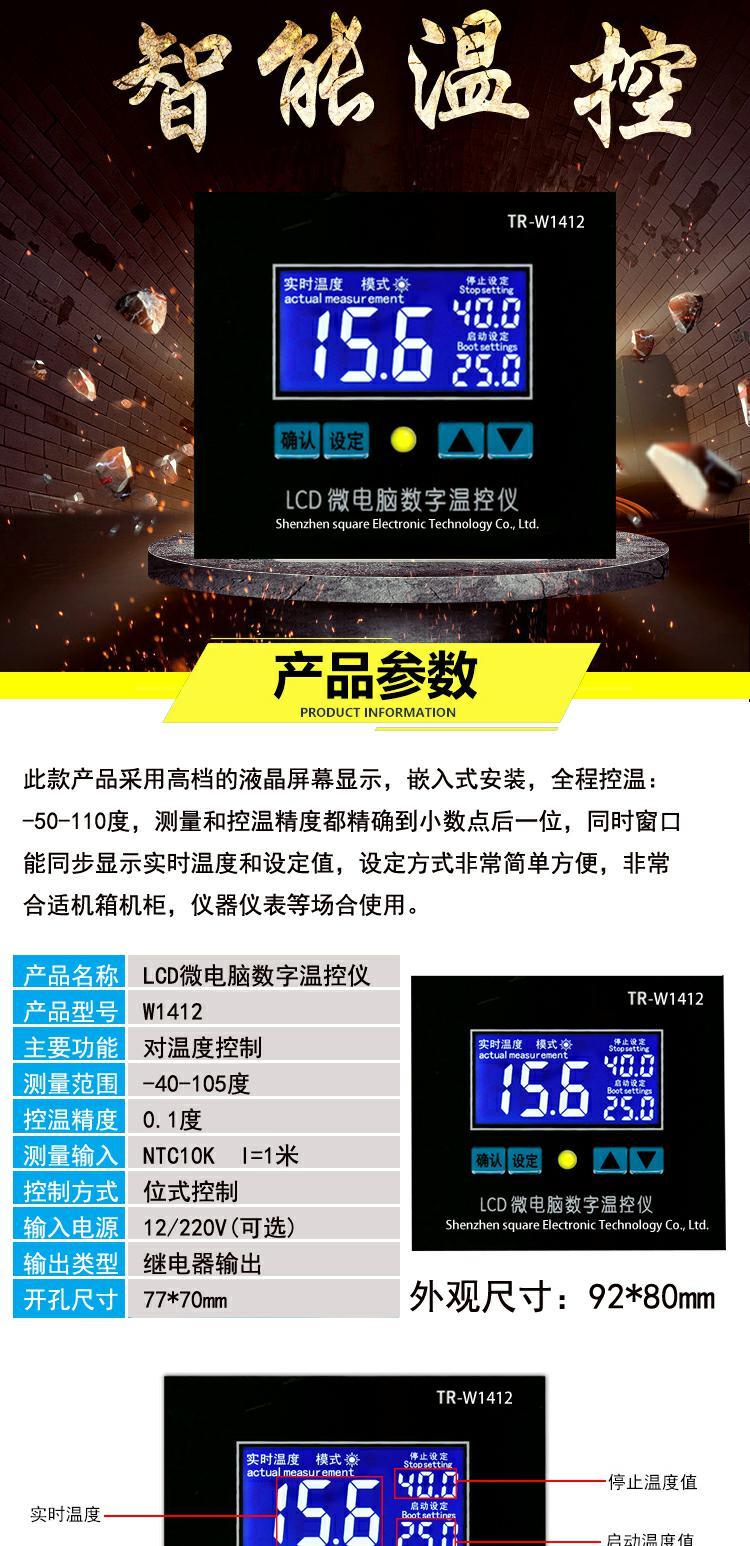 XH-W1412 LCD intelligent incubation temperature control thermostat switch instrument digital display adjustable high-precision temperature control 220V