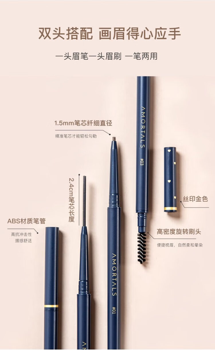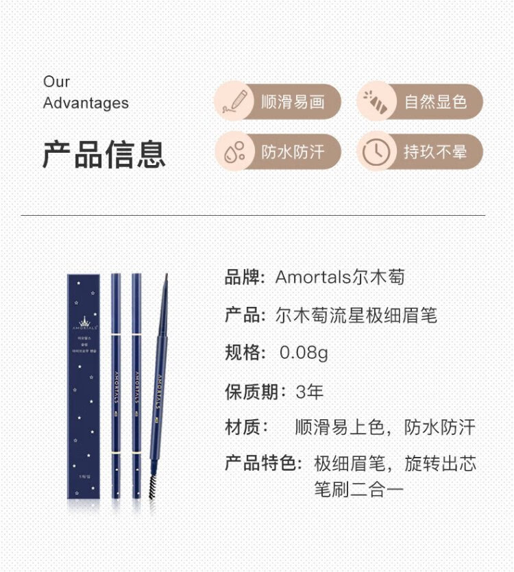 AMORTALS eyebrow pencil Meteor is long-lasting and not easy to fade. Female beginners, students and ladies are sweat-resistant and not easy to smudge. Eyebrow pencil 04# smoky gray