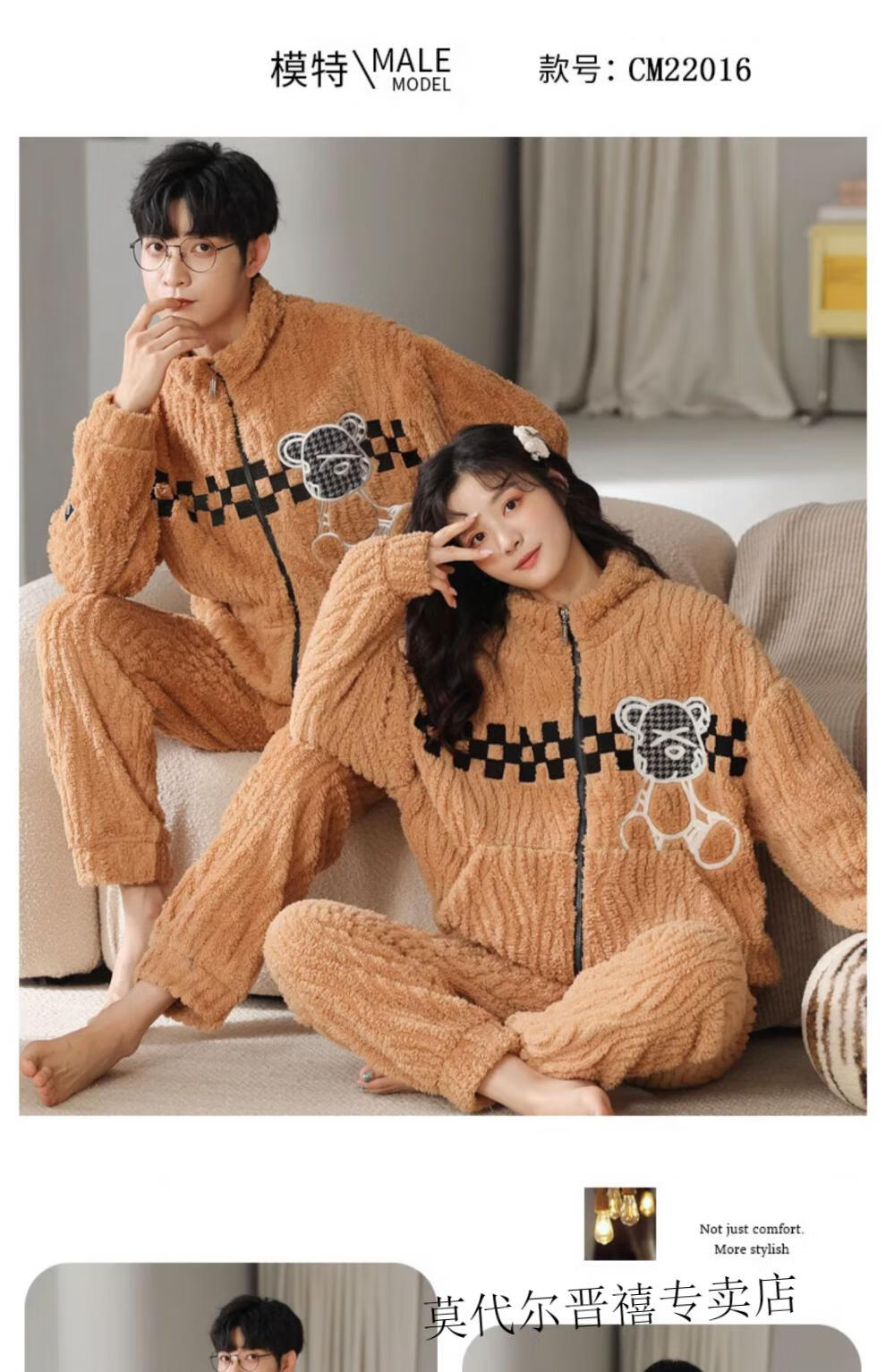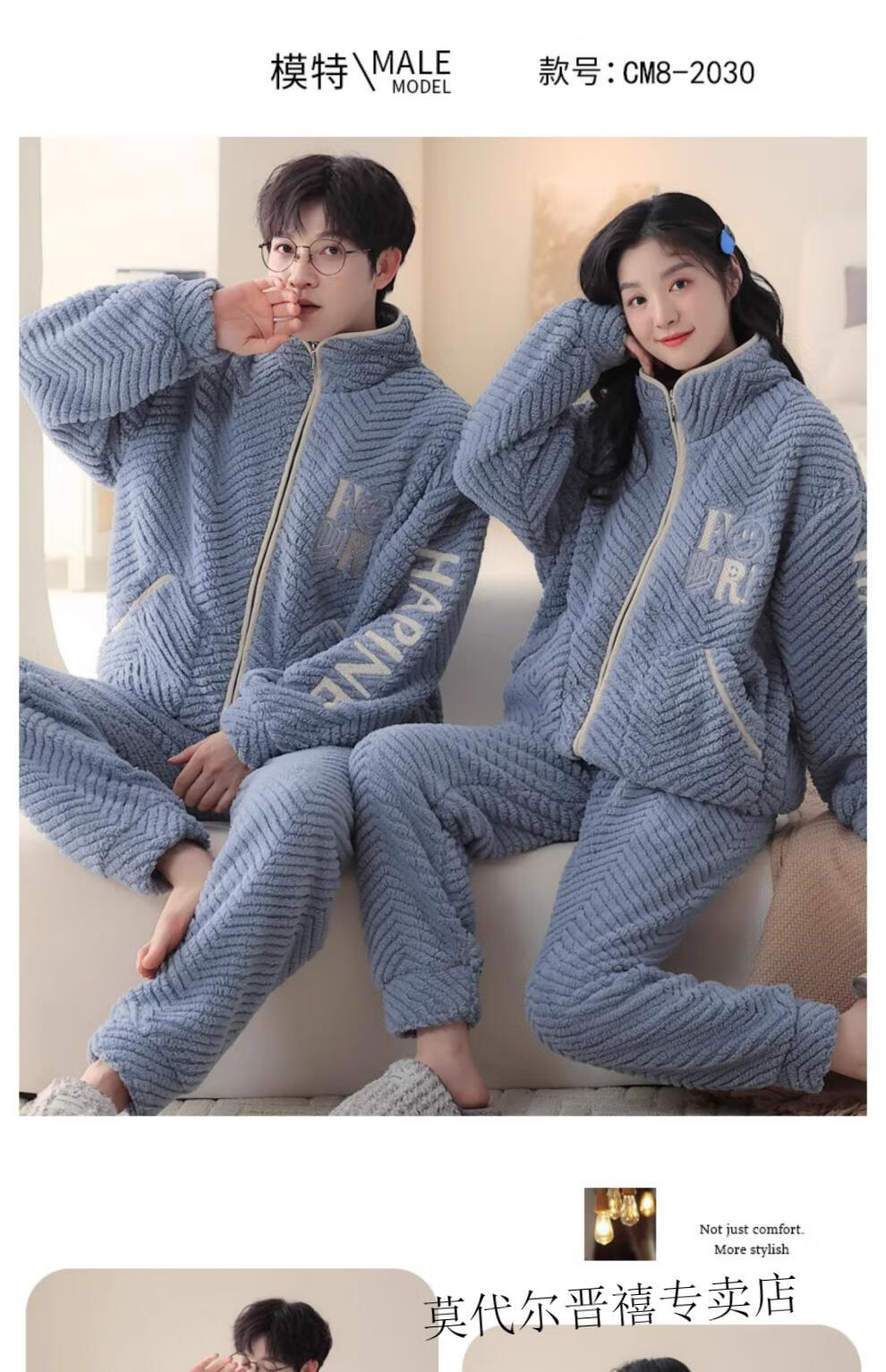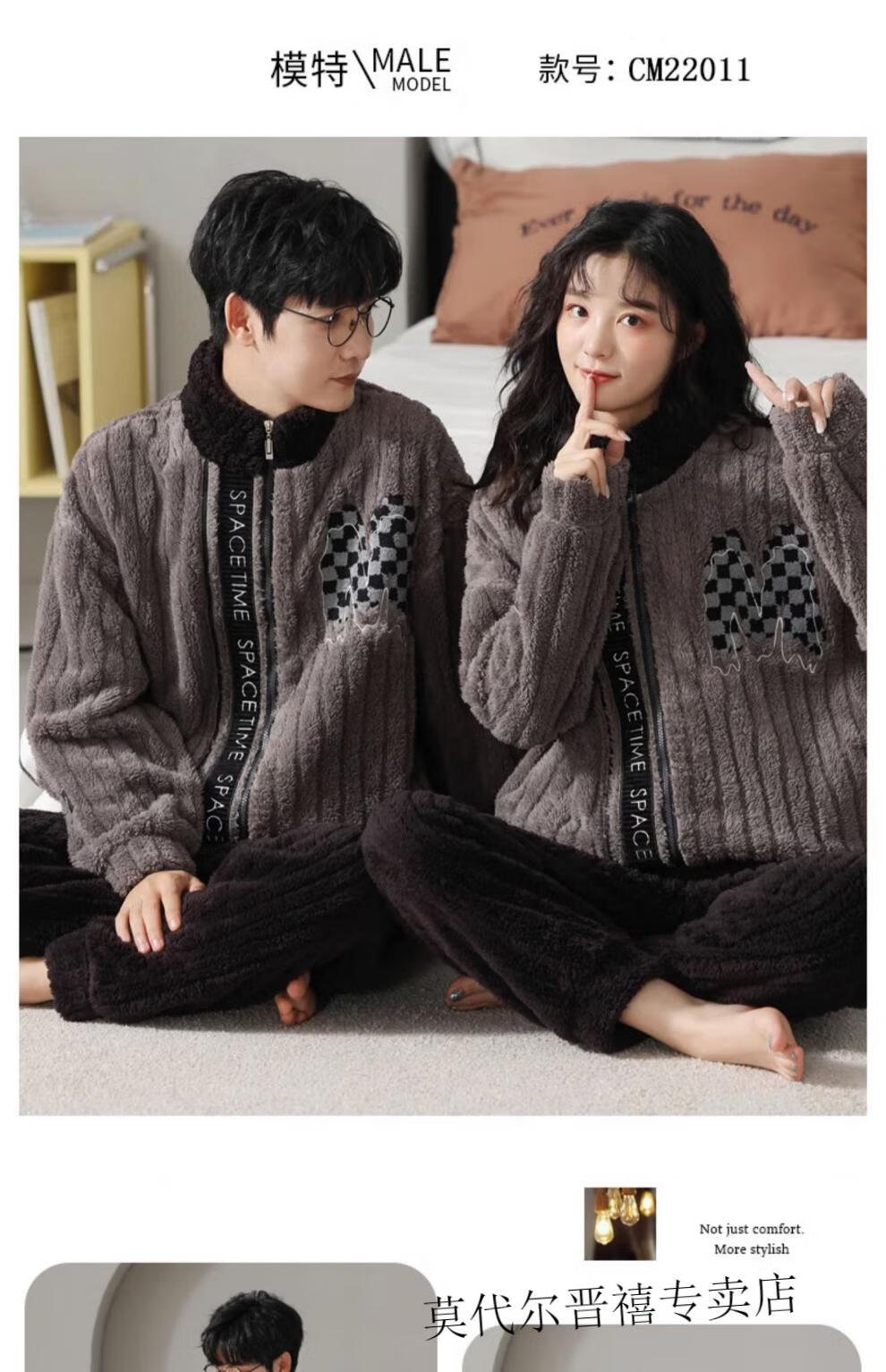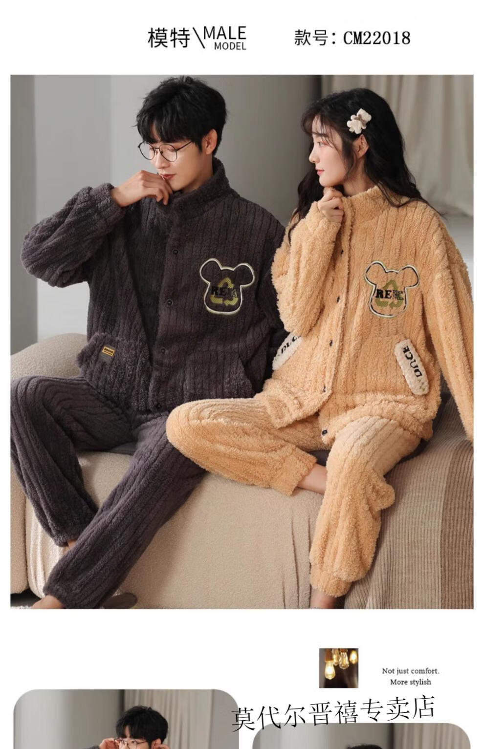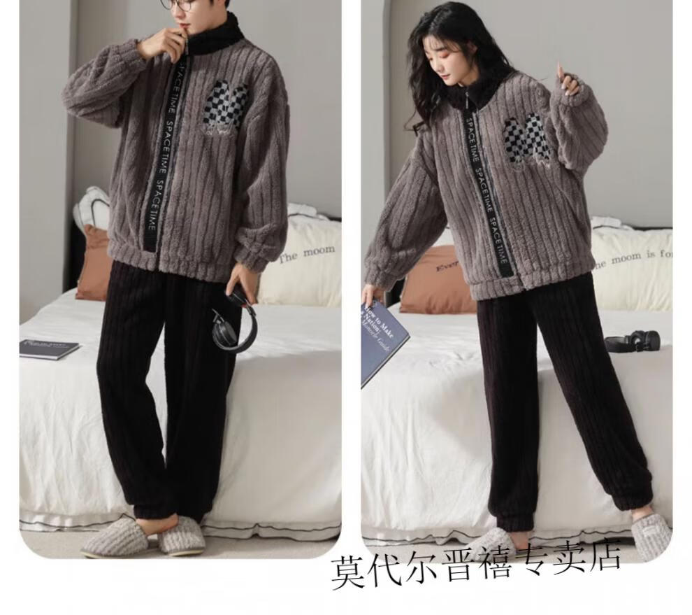 Modal Coral Fleece Couple Pajamas Women's Winter Plus Velvet Thickening Warmth Autumn and Winter 2025 New Men's Home Clothing Set CM2033 Velvet One Male One Female M Female + Male XL