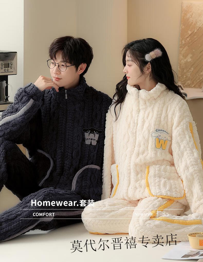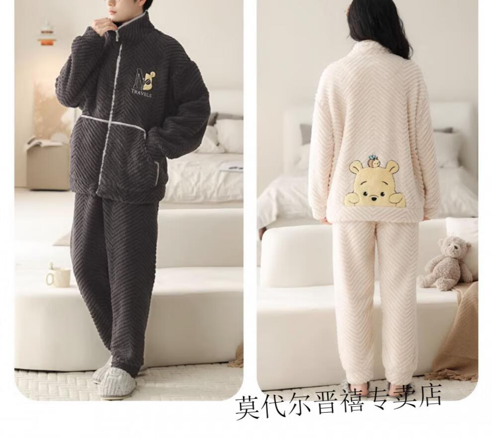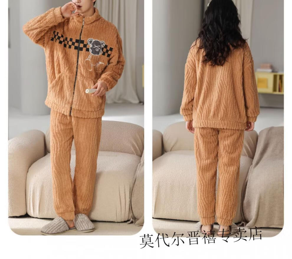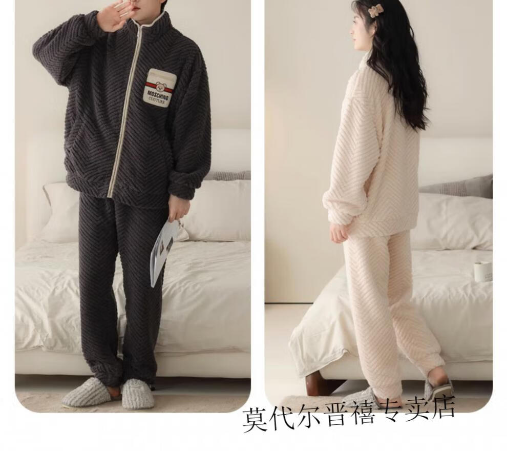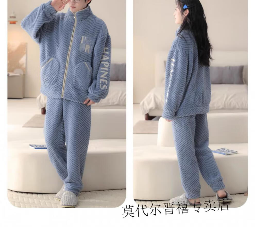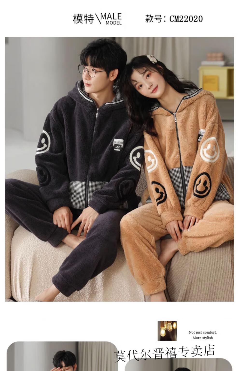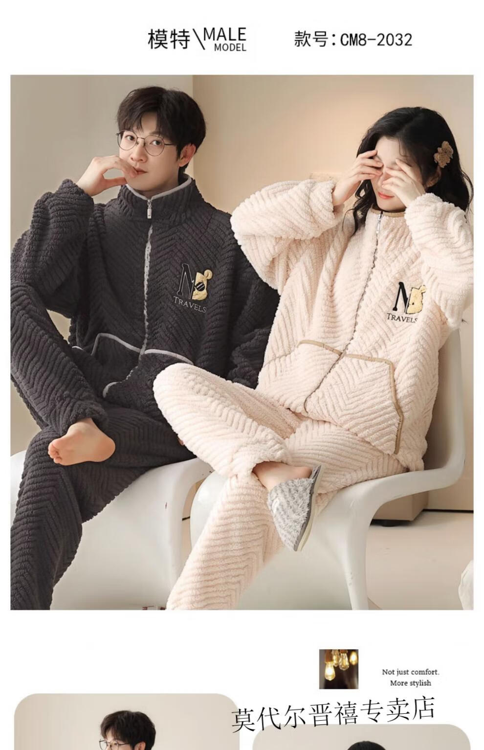 Modal Coral Fleece Couple Pajamas Women's Winter Plus Velvet Thickening Warmth Autumn and Winter 2025 New Men's Home Clothing Set CM2033 Velvet One Male One Female M Female + Male XL