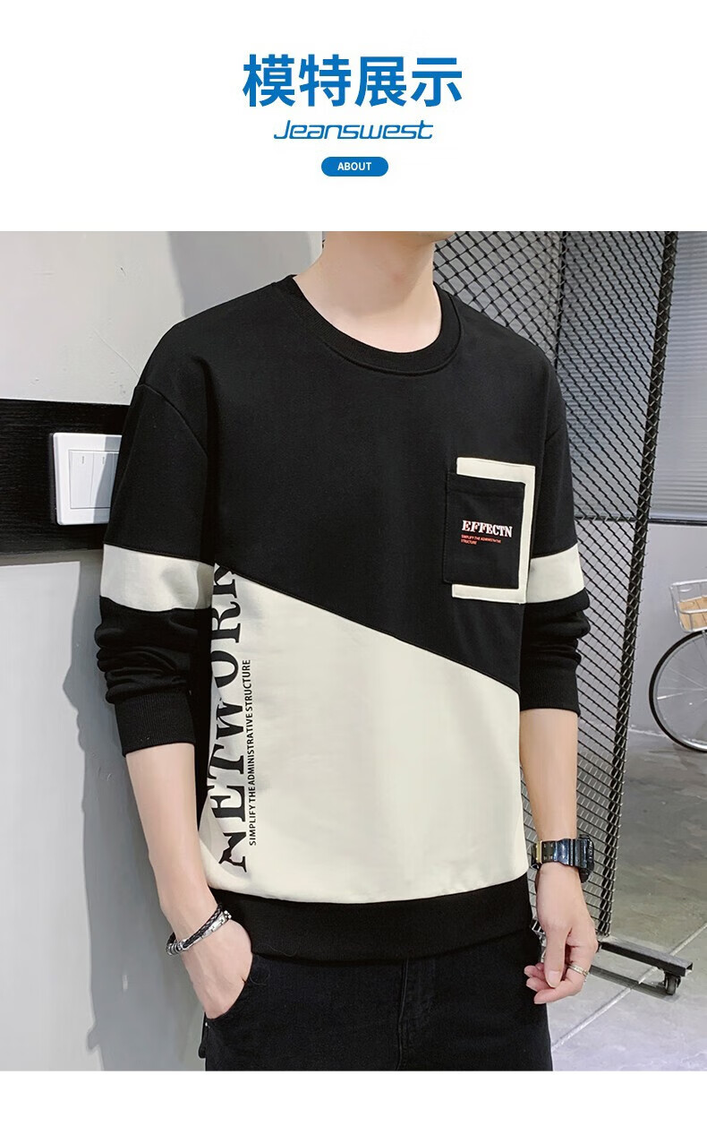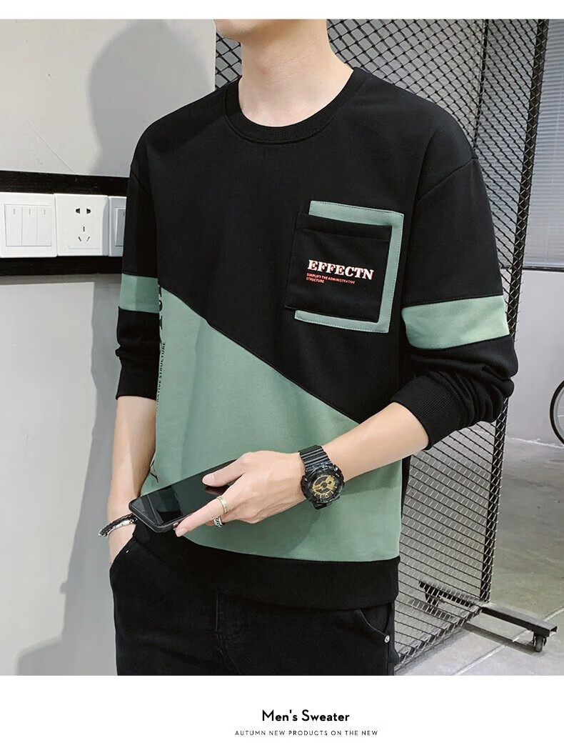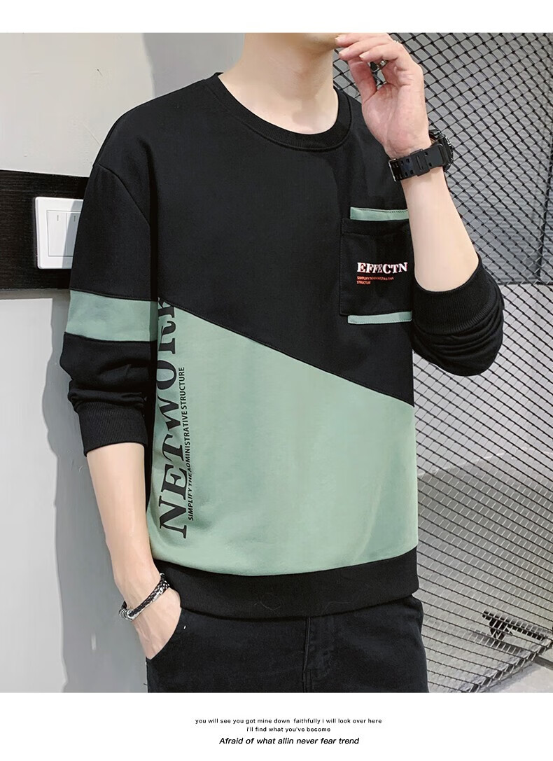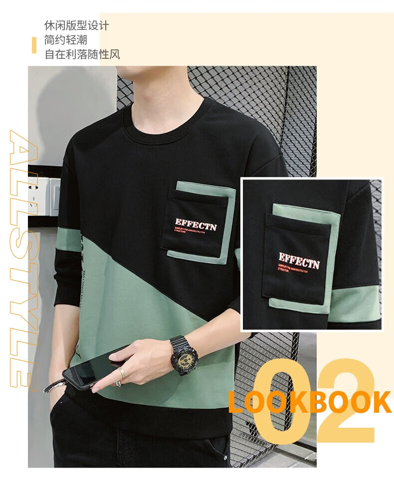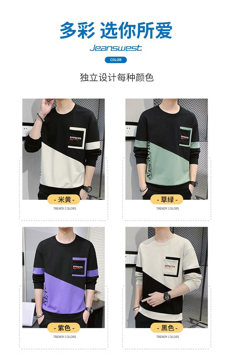 Jeanswest sweatshirt men's spring and autumn round neck loose pullover hoodless 2026 new spliced ​​bottoming shirt long-sleeved t-shirt for men 21116 grass green 2XL