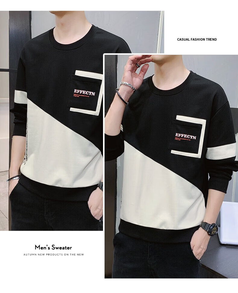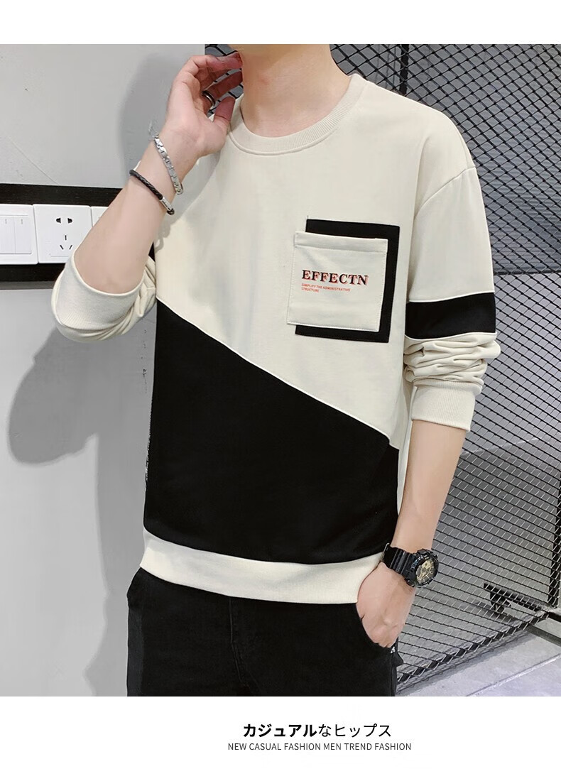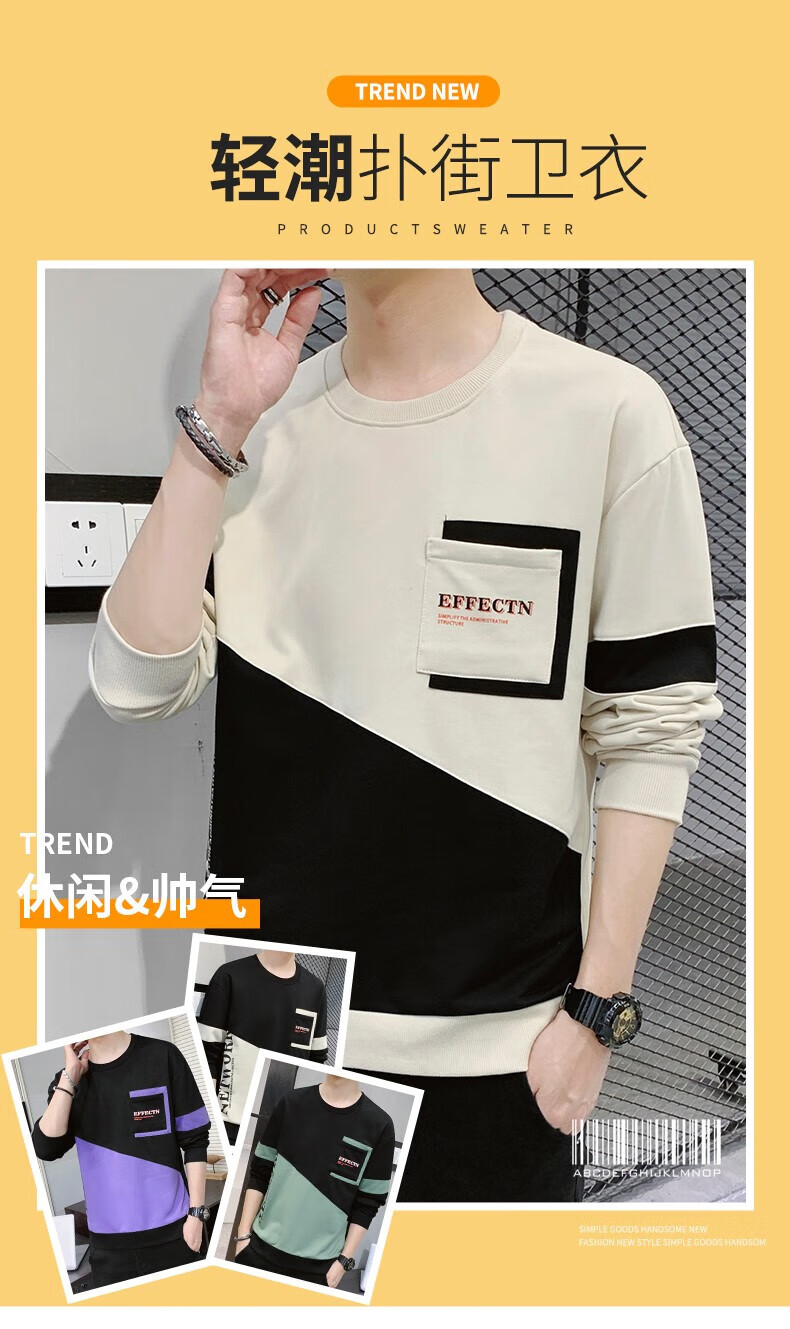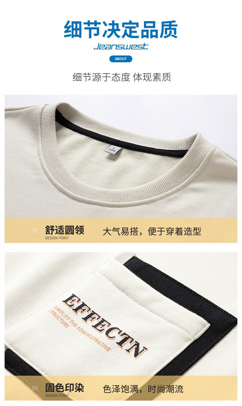 Jeanswest sweatshirt men's spring and autumn round neck loose pullover hoodless 2026 new spliced ​​bottoming shirt long-sleeved t-shirt for men 21116 grass green 2XL
