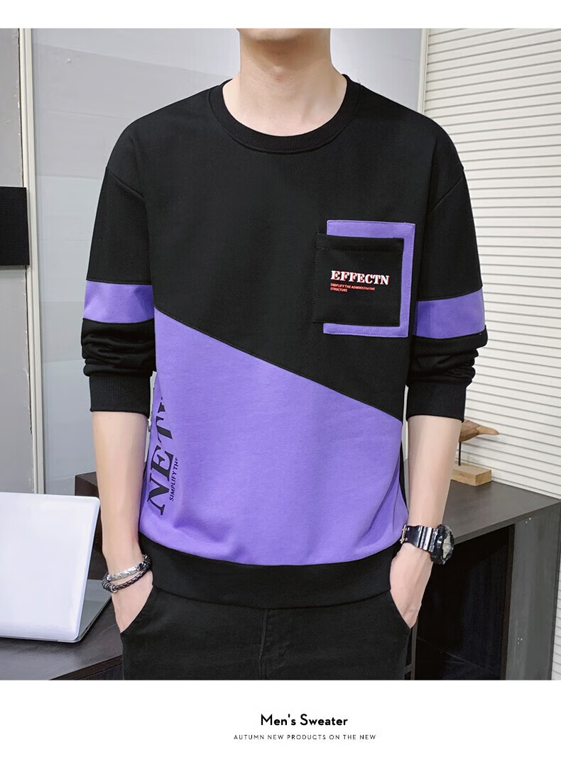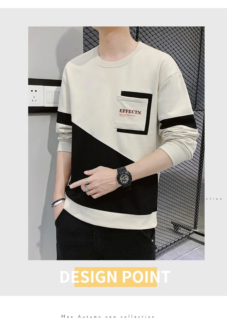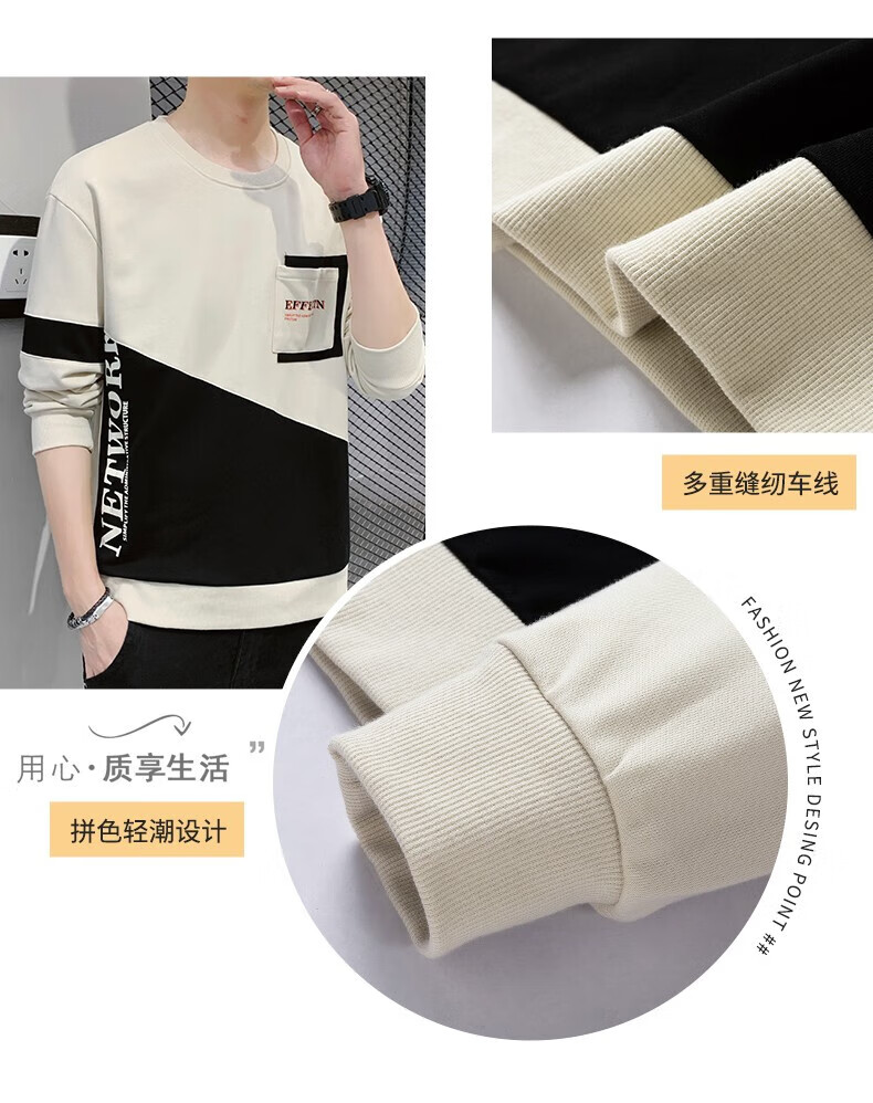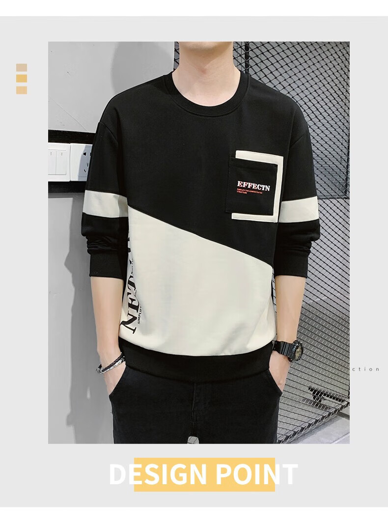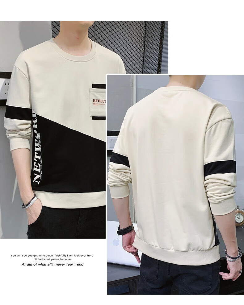Jeanswest sweatshirt men's spring and autumn round neck loose pullover hoodless 2026 new spliced ​​bottoming shirt long-sleeved t-shirt for men 21116 grass green 2XL