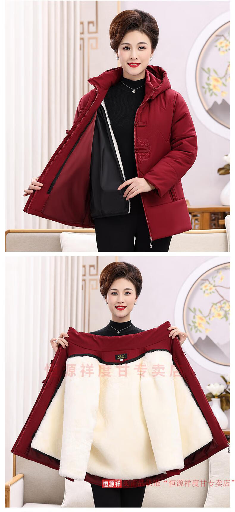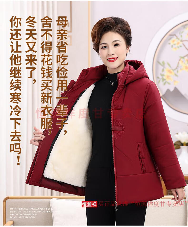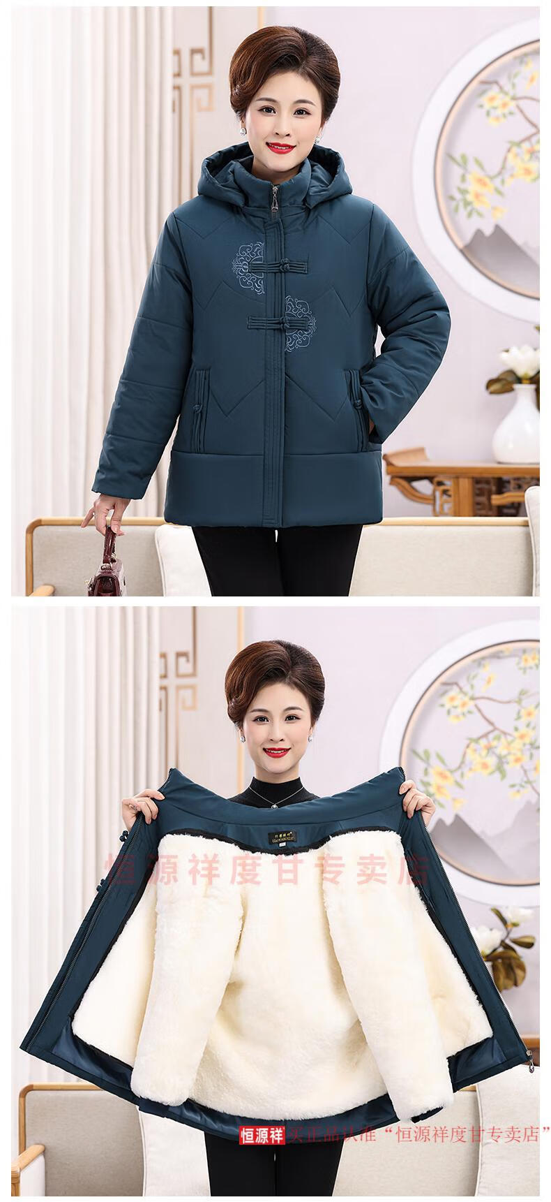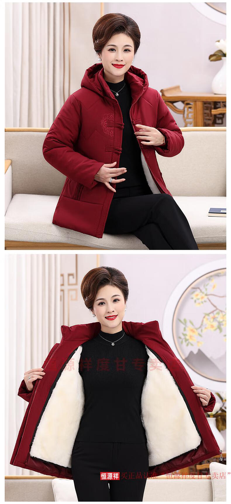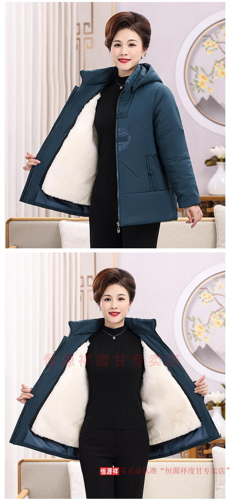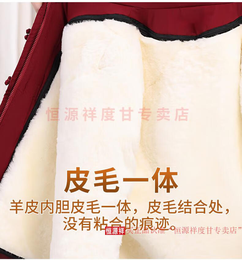 Hengyuanxiang middle-aged and elderly women's wool cotton-padded jacket, fur integrated thickened cotton coat, winter warm cotton coat, real sheepskin jacket, mother's wear, green sheep shearing (whole body wool) 5XL (suitable for 145-165Jin Jin equals 0.5kg)