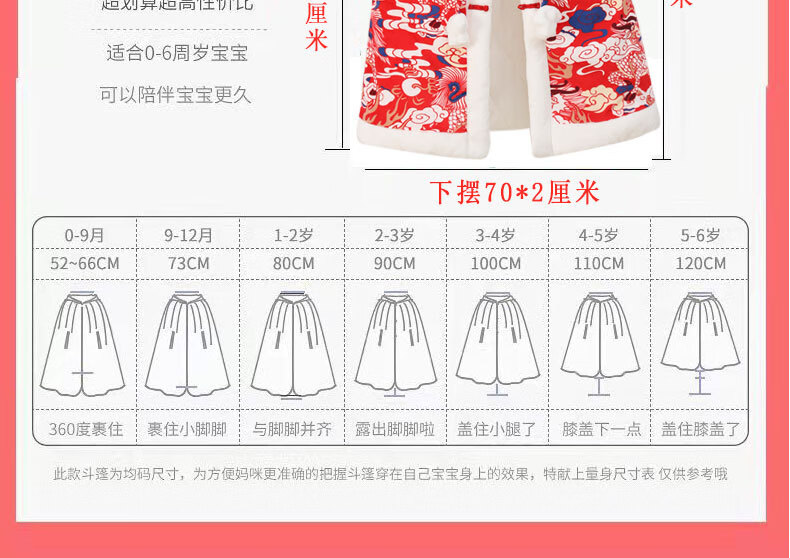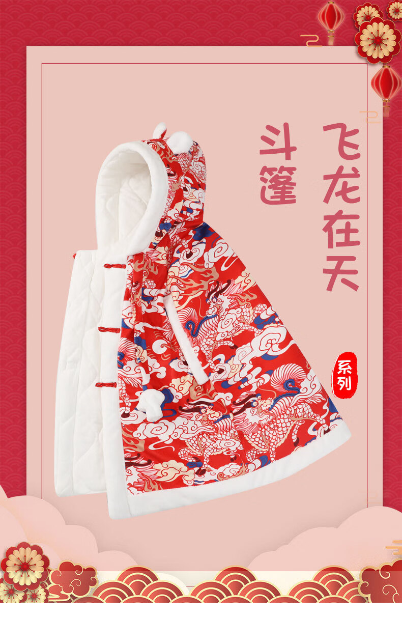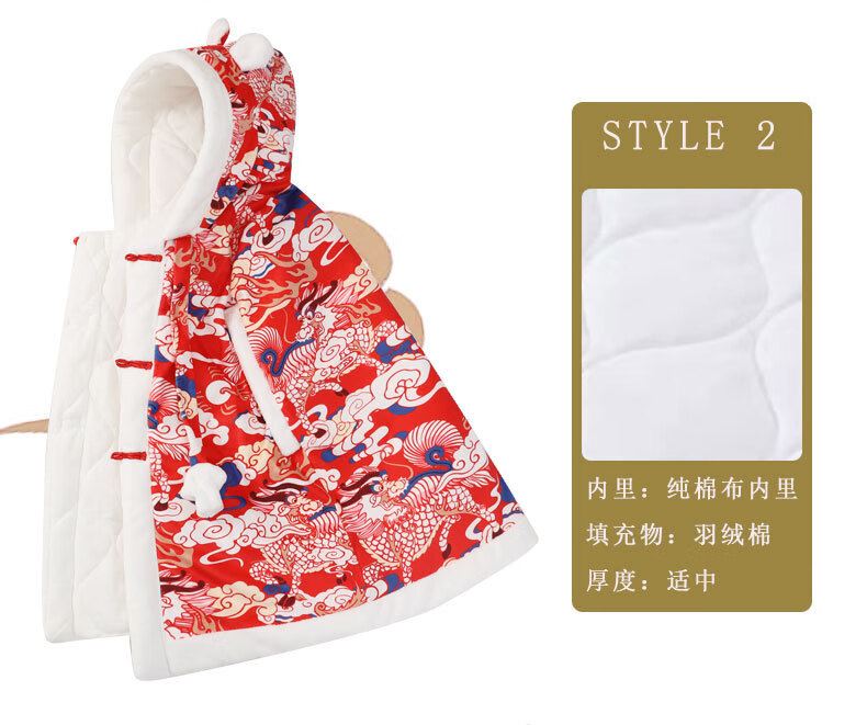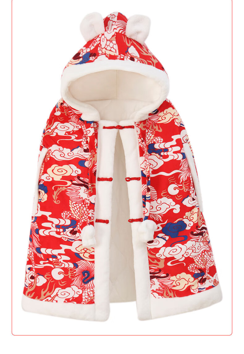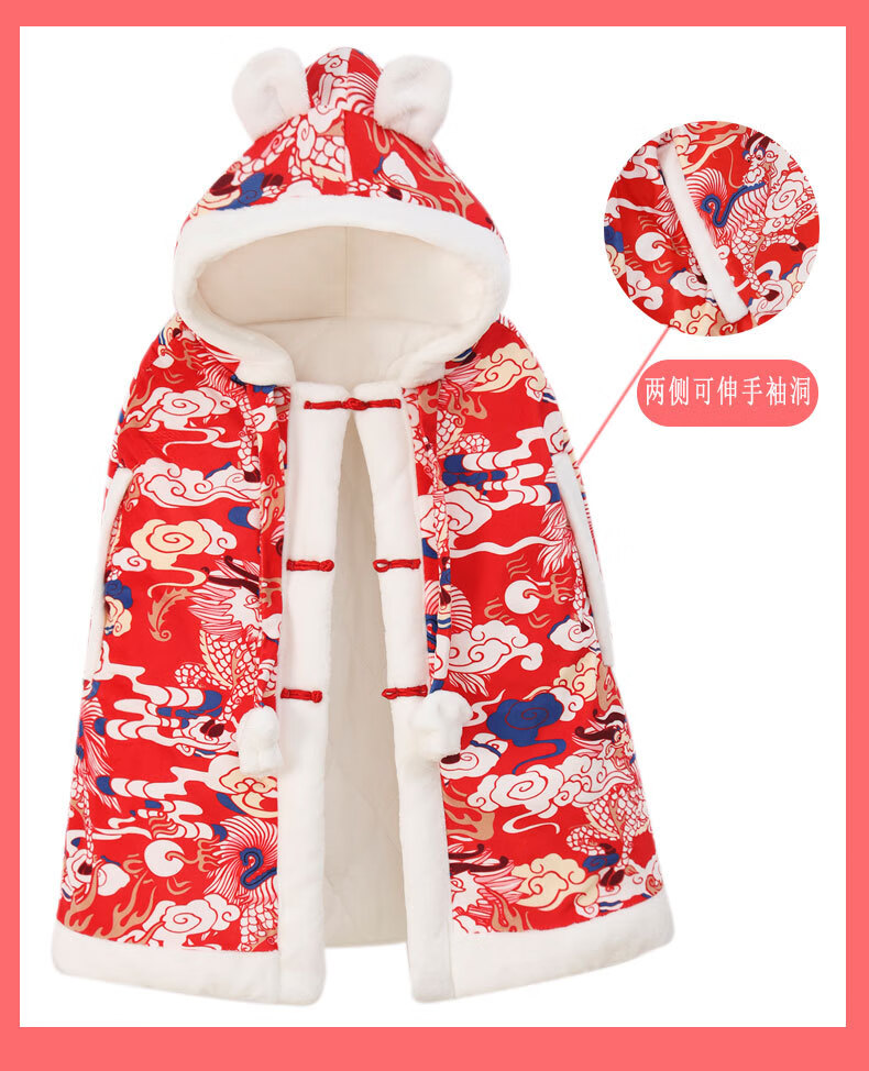 Acacia Tong baby cloak baby windproof autumn and winter outdoor cloak thickened warm red quilt children's national style winter coat Xianglong Emperor gift box universal 0-4 years old