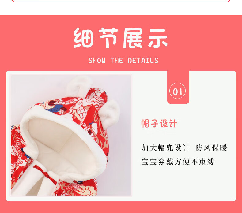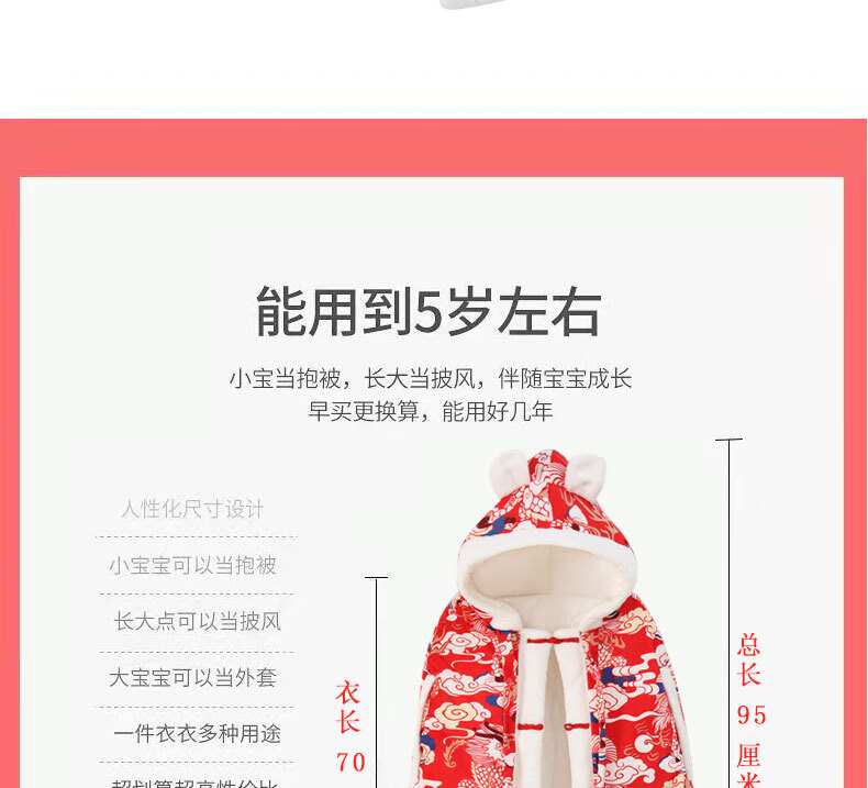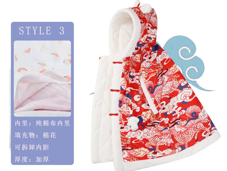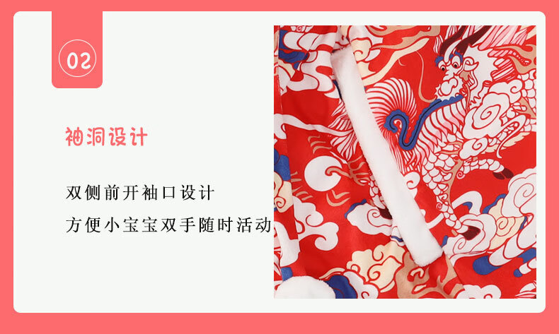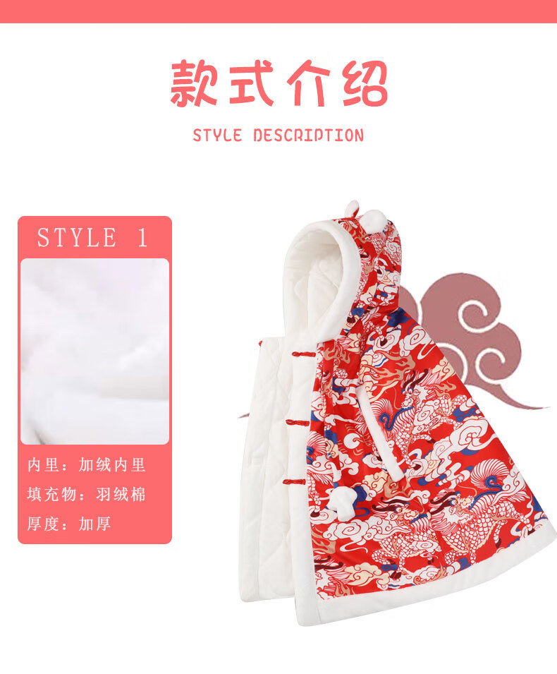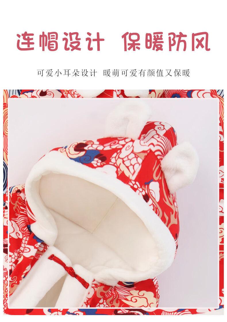 Acacia Tong baby cloak baby windproof autumn and winter outdoor cloak thickened warm red quilt children's national style winter coat Xianglong Emperor gift box universal 0-4 years old