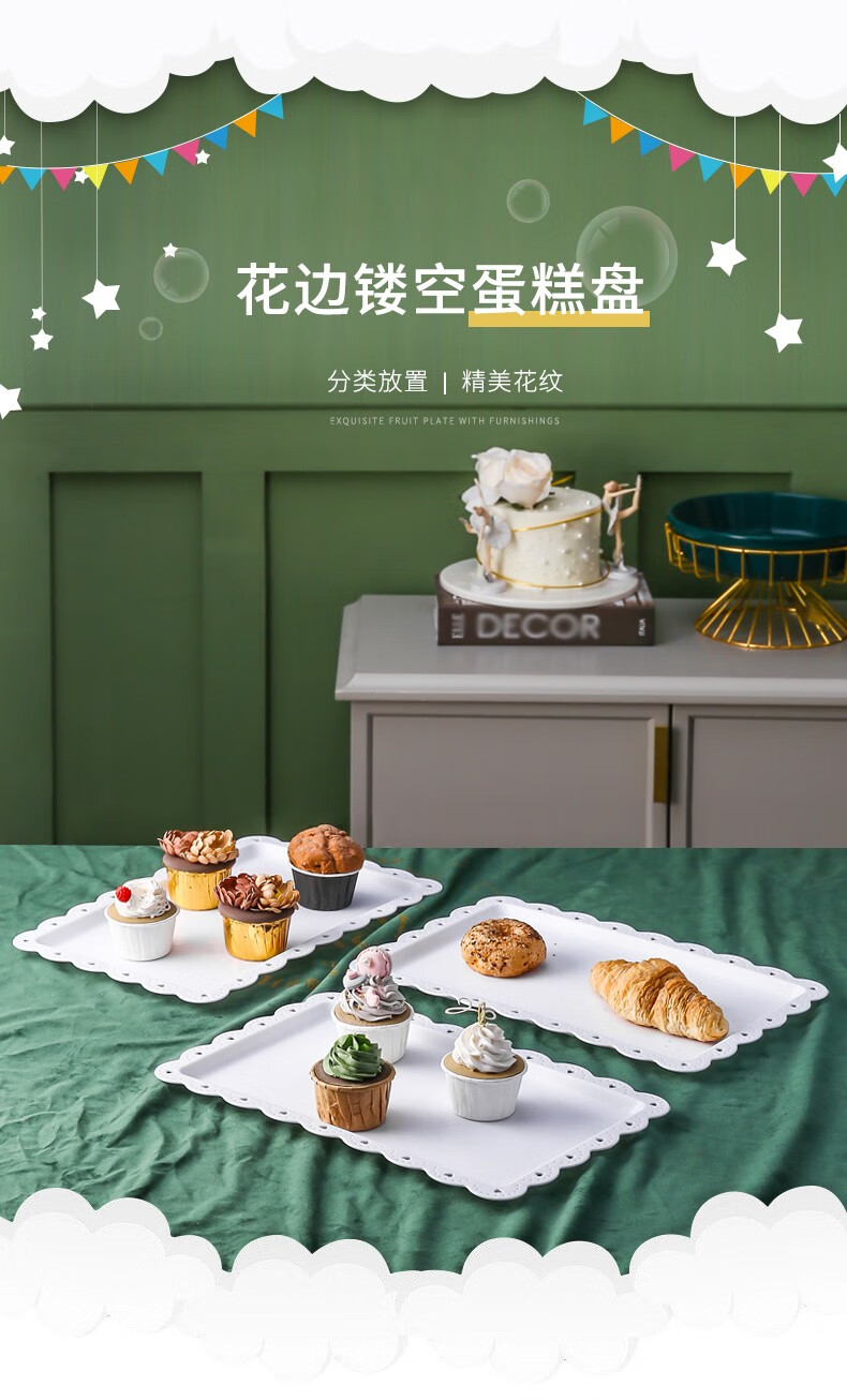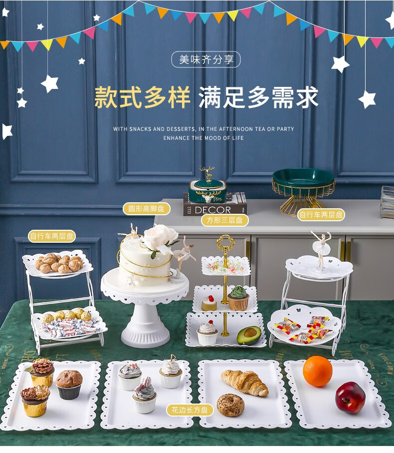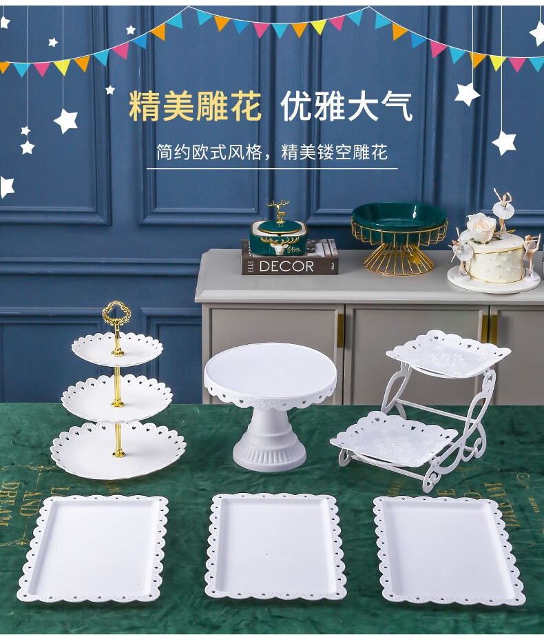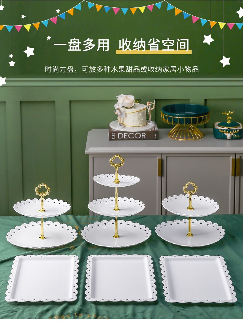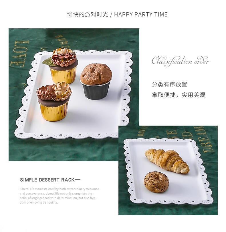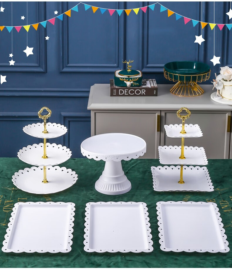 Haofanjie dessert table display stand tea break table cake multi-layer shelf candy snack pastry tray afternoon tea cold meal tray 2 pack white square dessert display tray