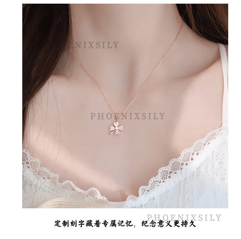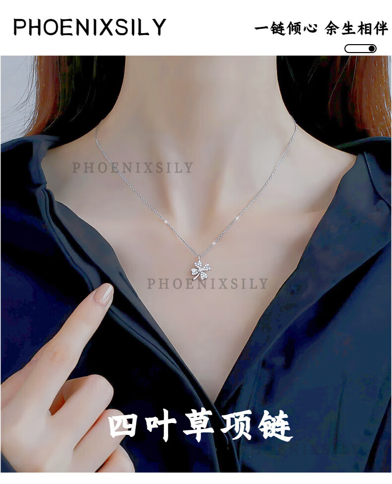 PHOENIXSILY four-leaf clover simple necklace women's silver fashion jewelry jewelry for girls and girlfriends birthday gifts practical high-end elegant silver ghostwriting greeting cards to take this link