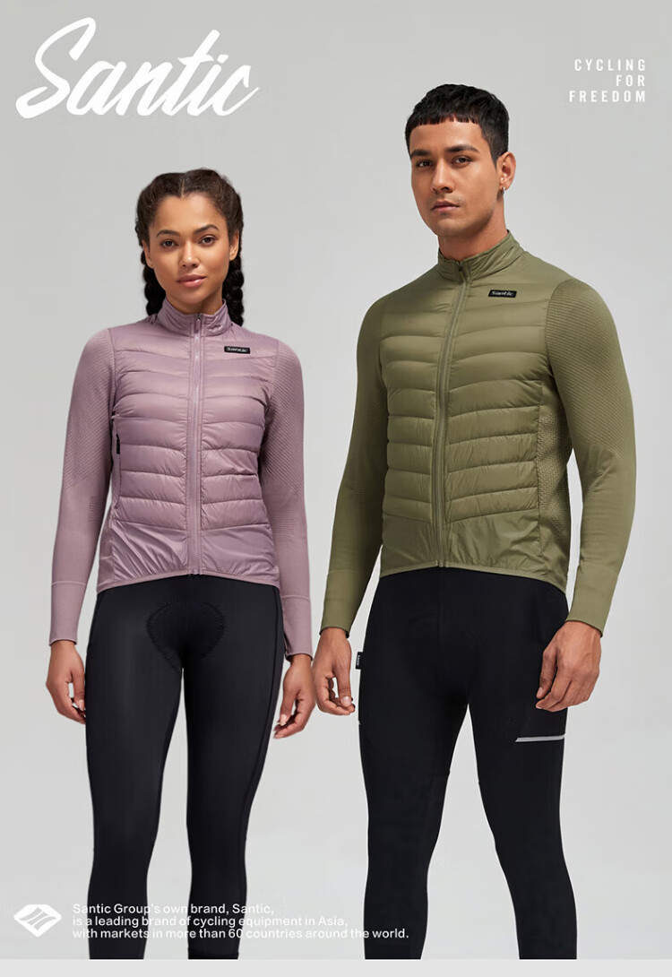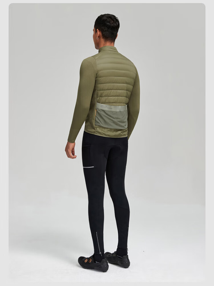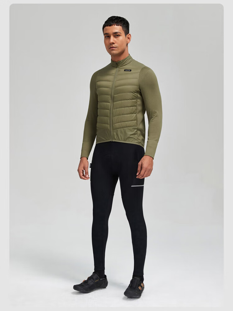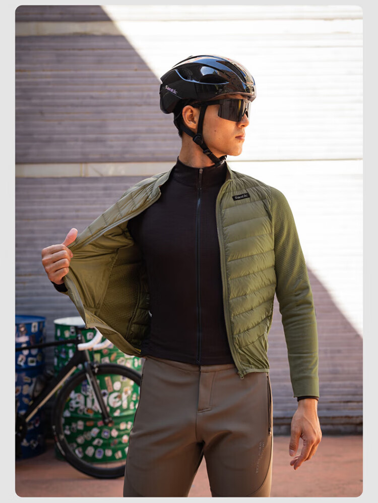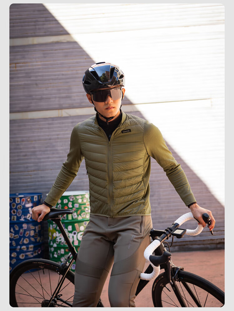 Santic autumn and winter lightweight down long-sleeved cycling jersey, bicycle warm cycling top, cycling jacket for men and women, Bocha Green, Men's L