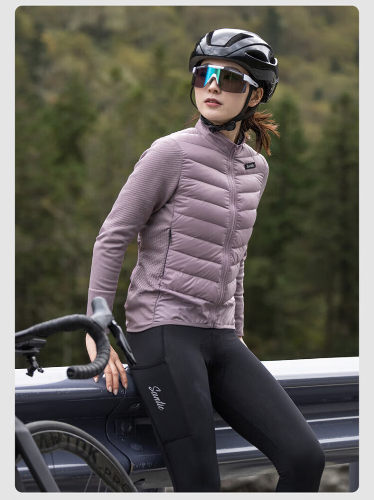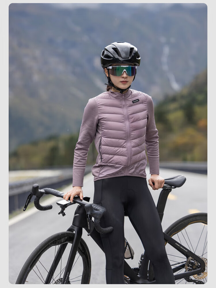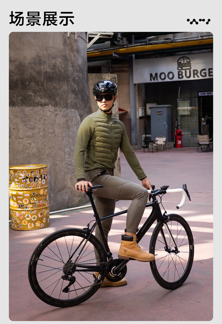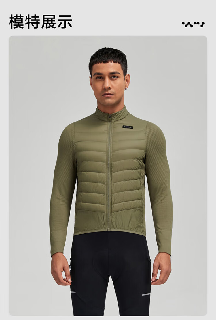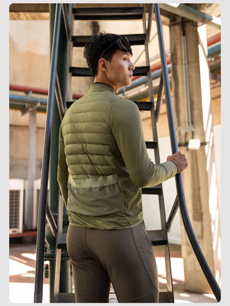 Santic autumn and winter lightweight down long-sleeved cycling jersey, bicycle warm cycling top, cycling jacket for men and women, Bocha Green, Men's L