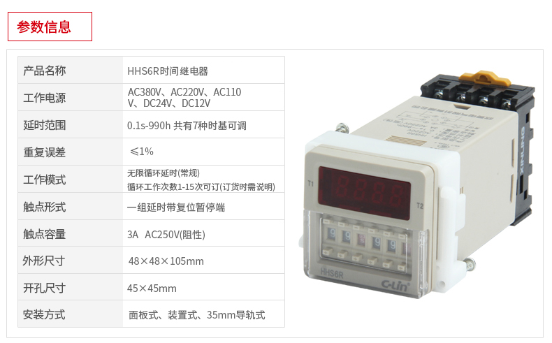 Time relay HHS6R/-1-2Z/AS6D timer DH48S-S delay reset 220VA HHS6_Improved DC12V