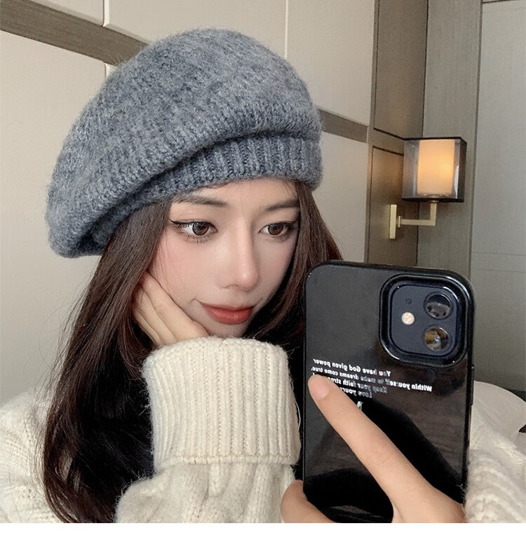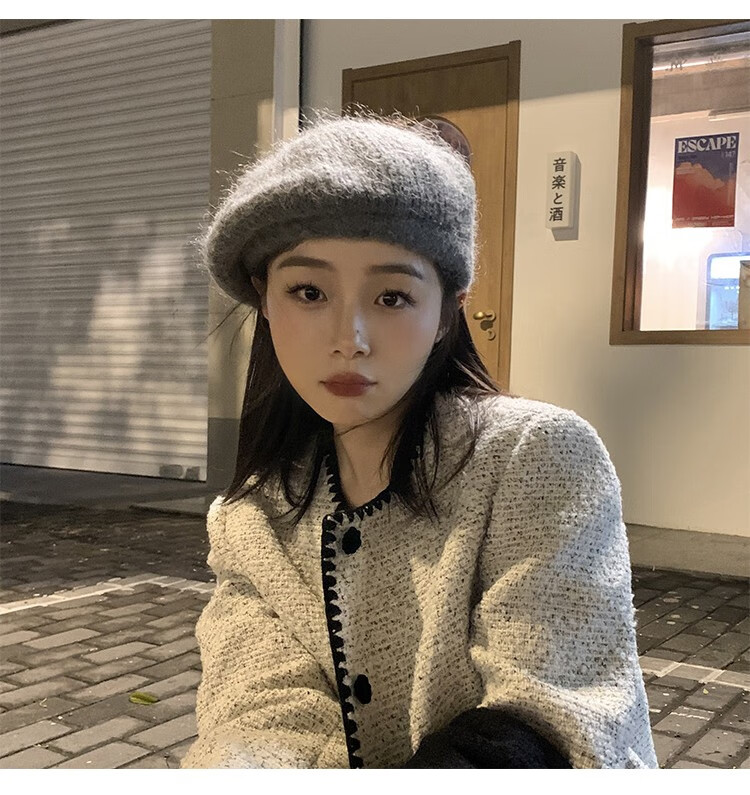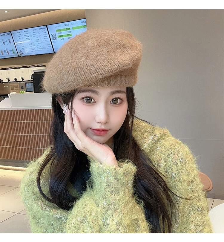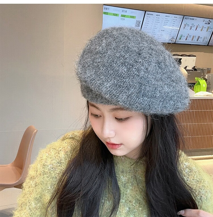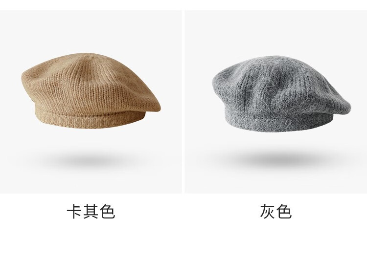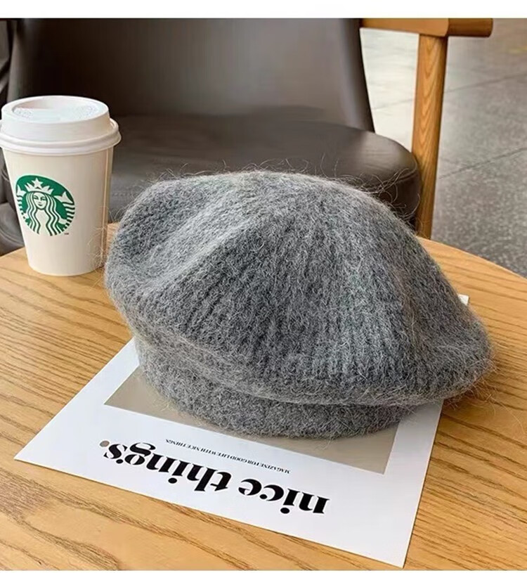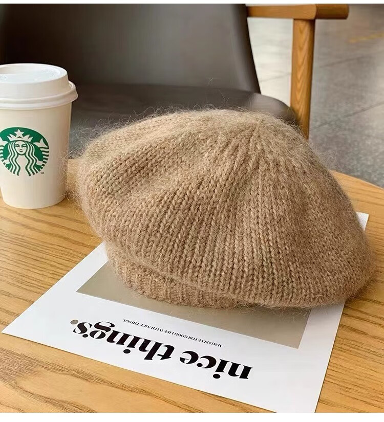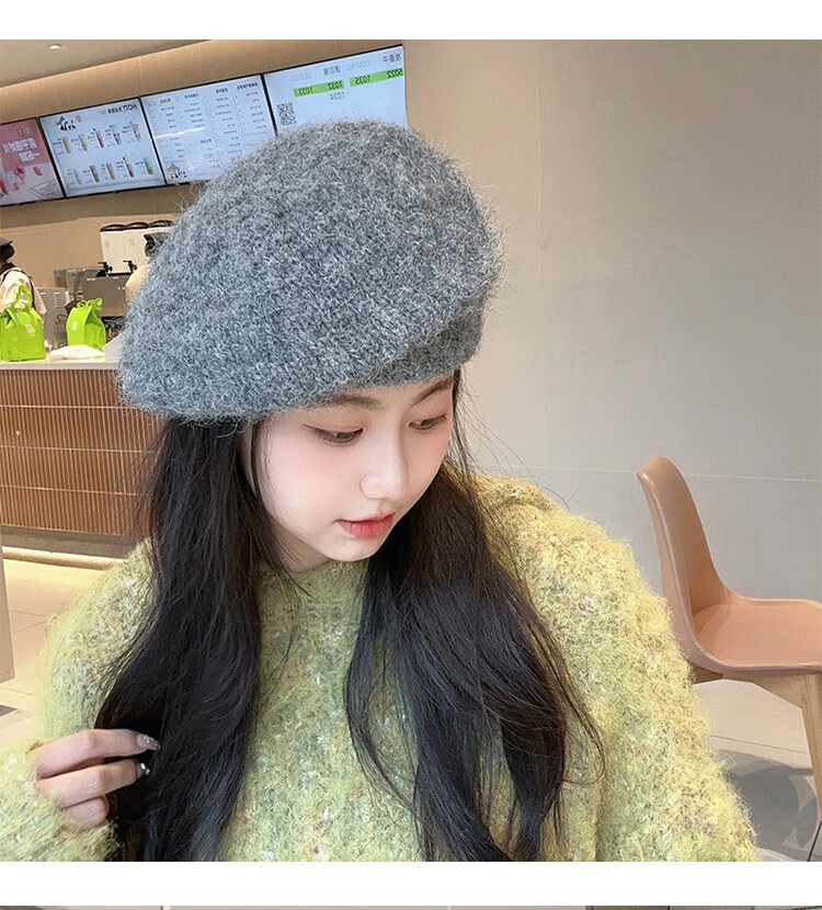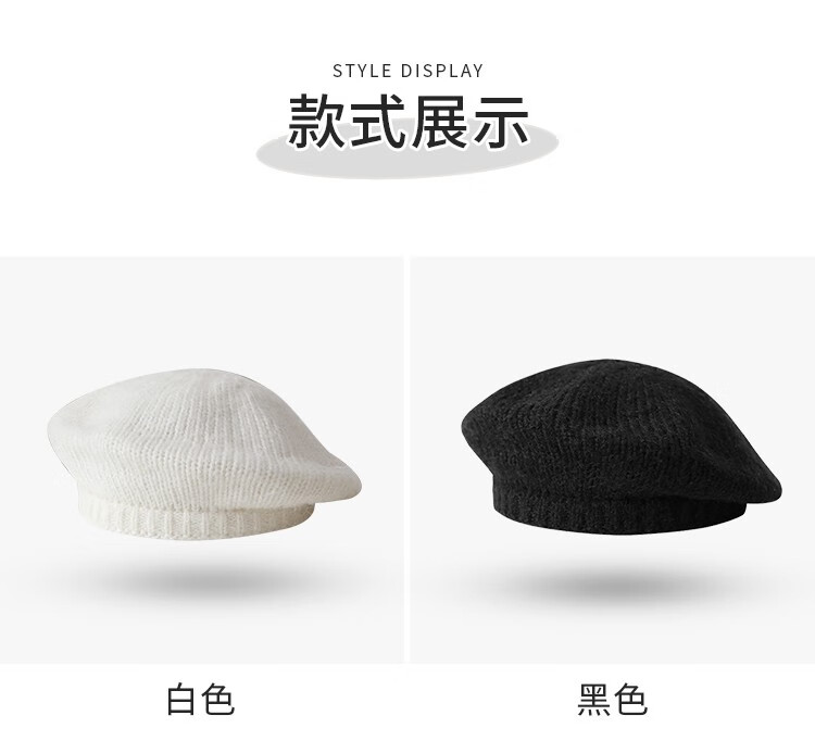 啕二啕 white beret women's plush hat winter women's fashion new warm mohair knitted woolen hat painter hat black