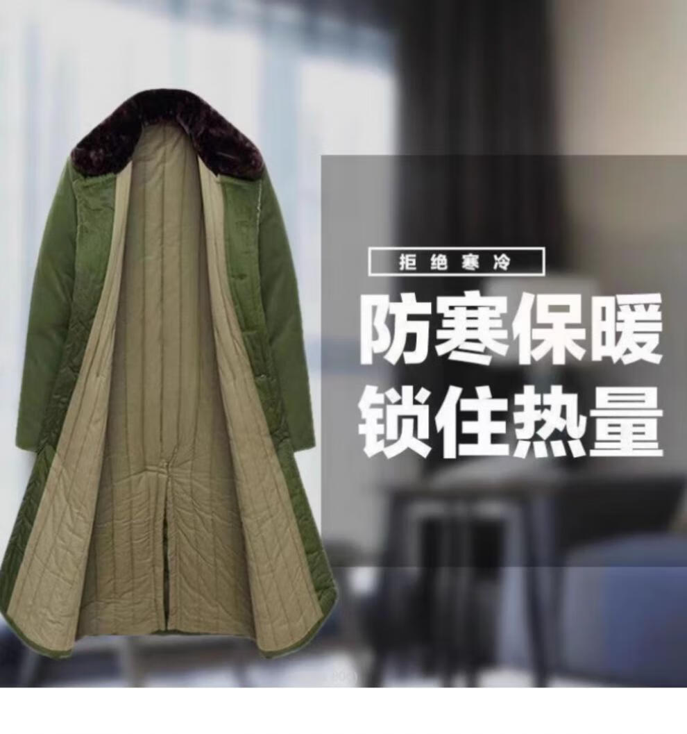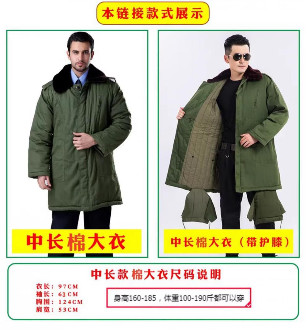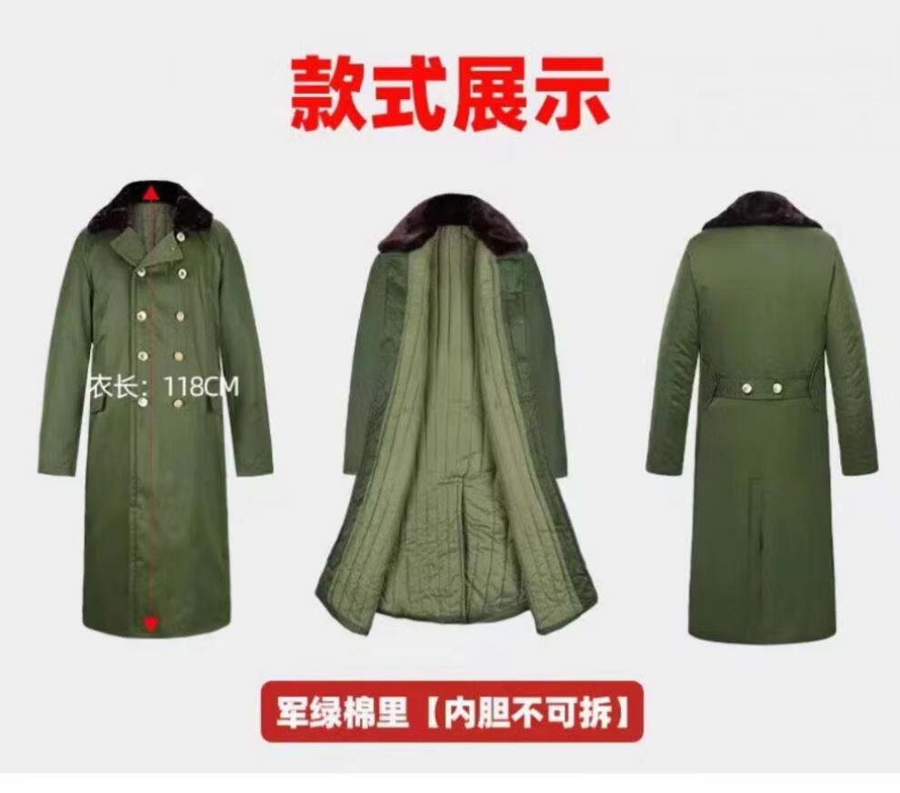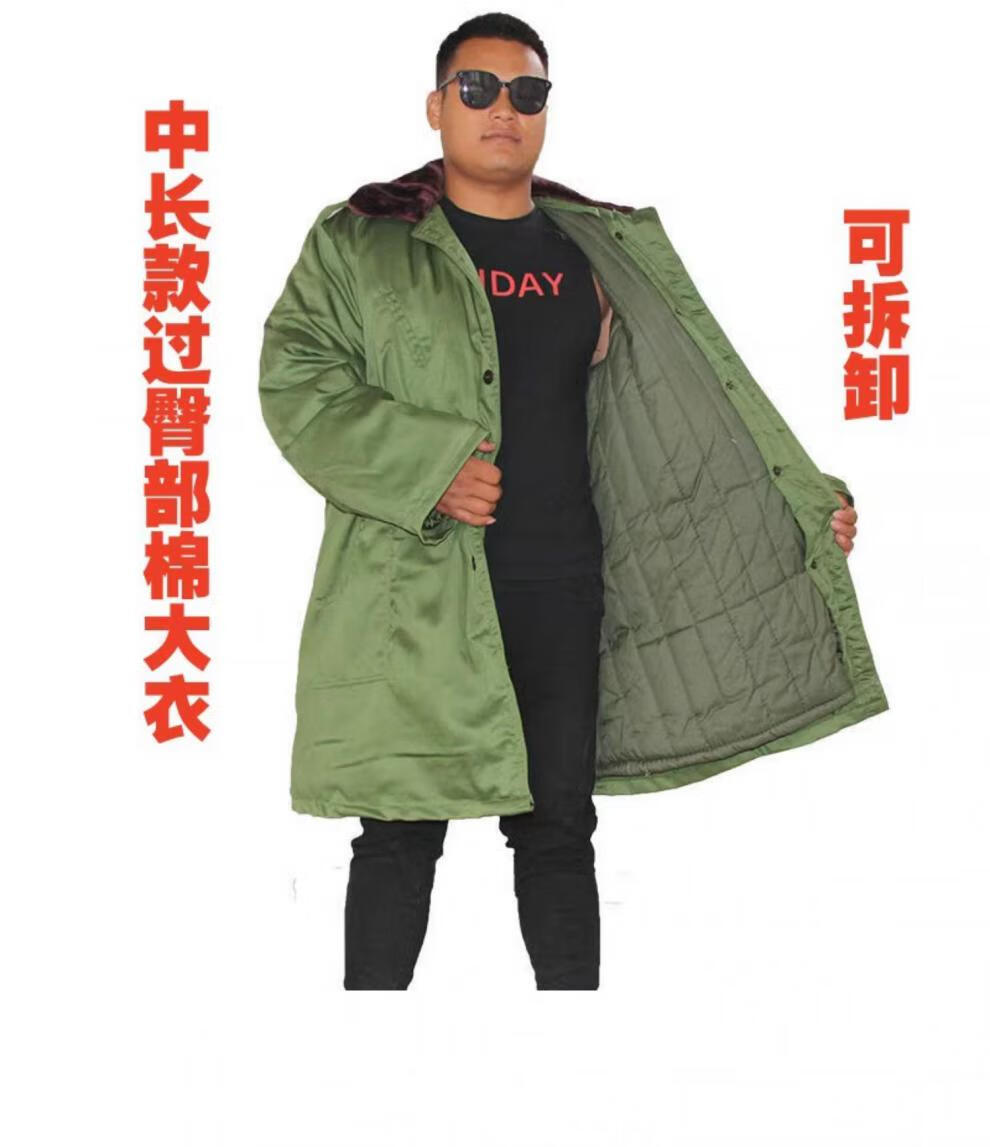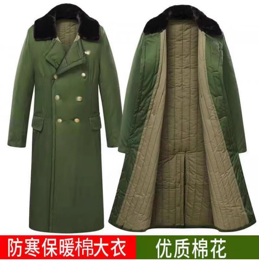 Hengyuanxiang's new military large coat, men's military winter coat, women's old-fashioned military cotton green coat, Northeast cold-proof coat - 40 degrees Celsius, thickened military green polyester card fabric, combed long-staple cotton (medium one size)