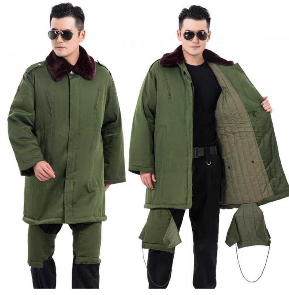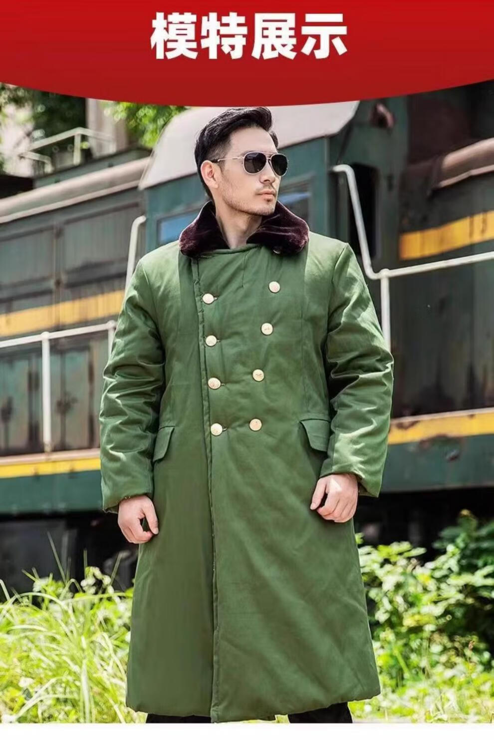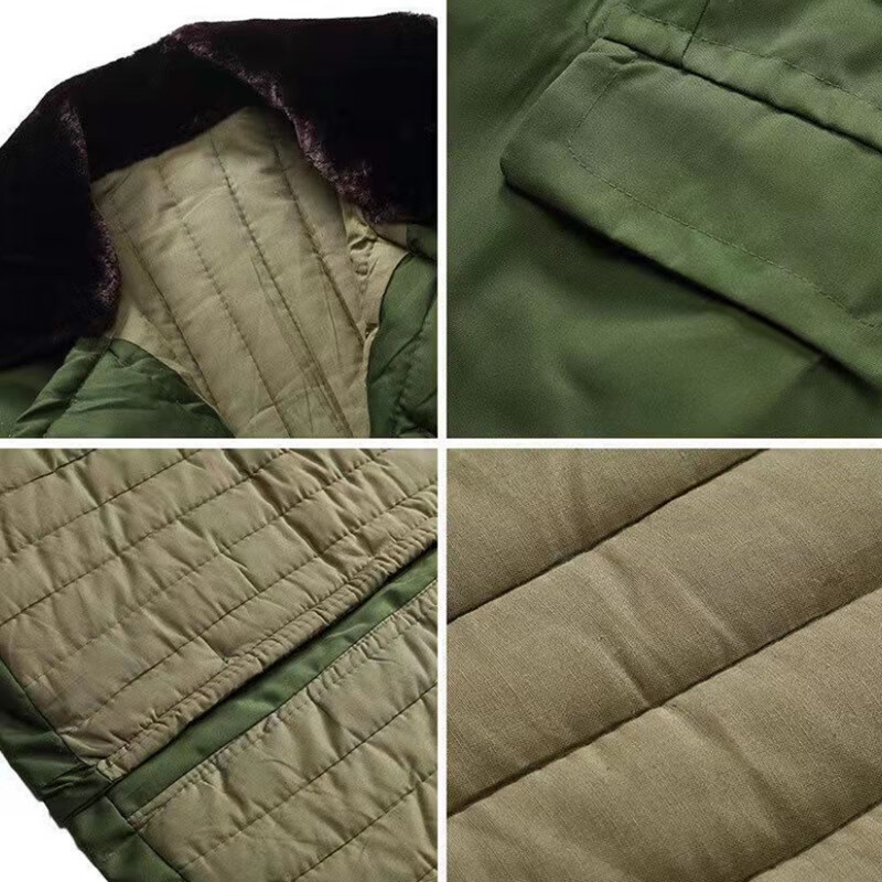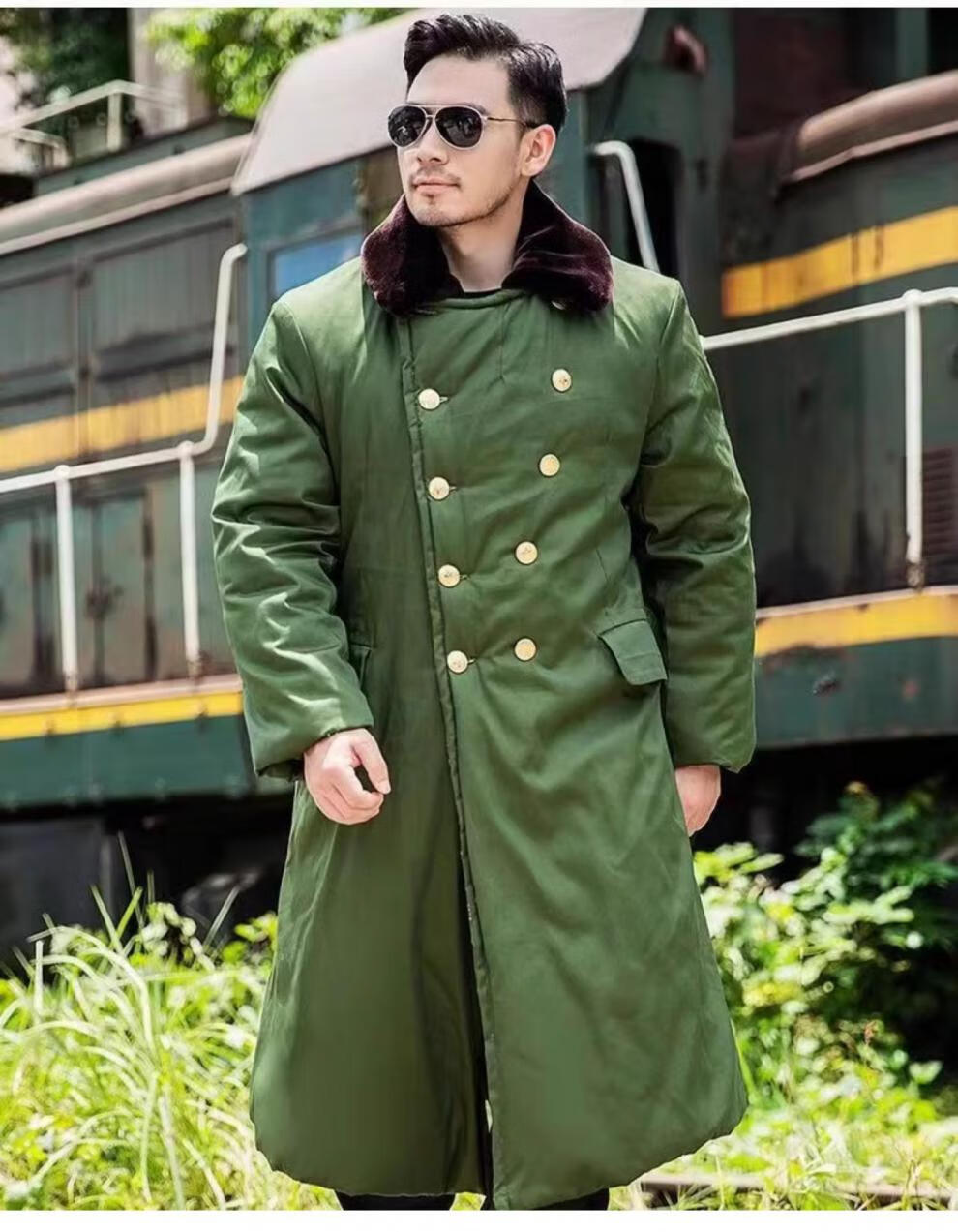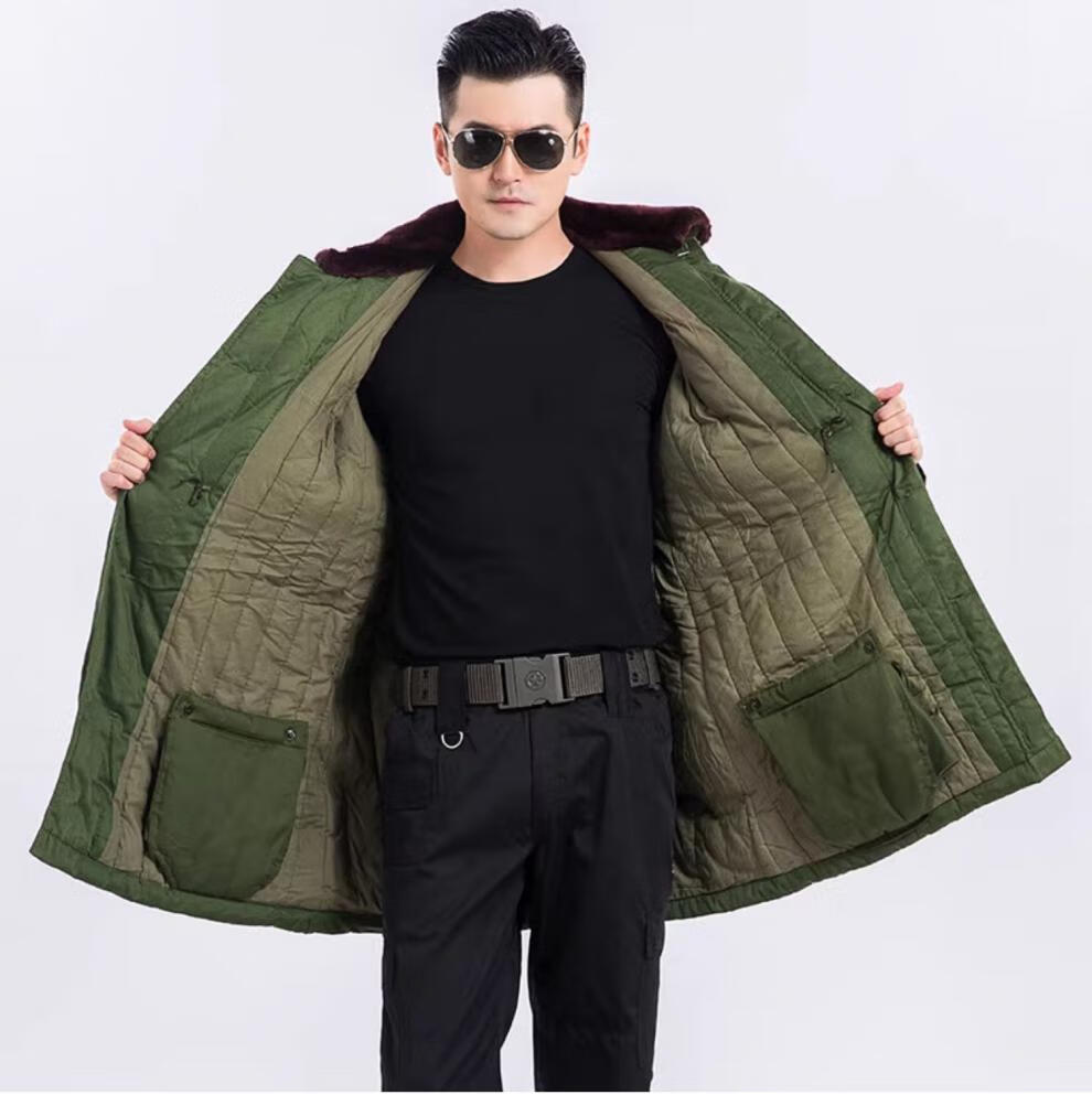 Hengyuanxiang's new military large coat, men's military winter coat, women's old-fashioned military cotton green coat, Northeast cold-proof coat - 40 degrees Celsius, thickened military green polyester card fabric, combed long-staple cotton (medium one size)