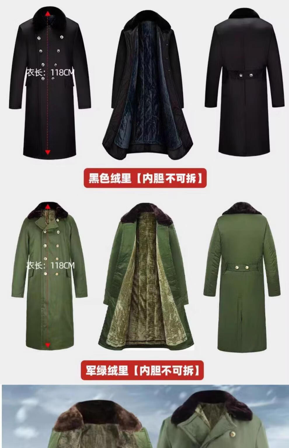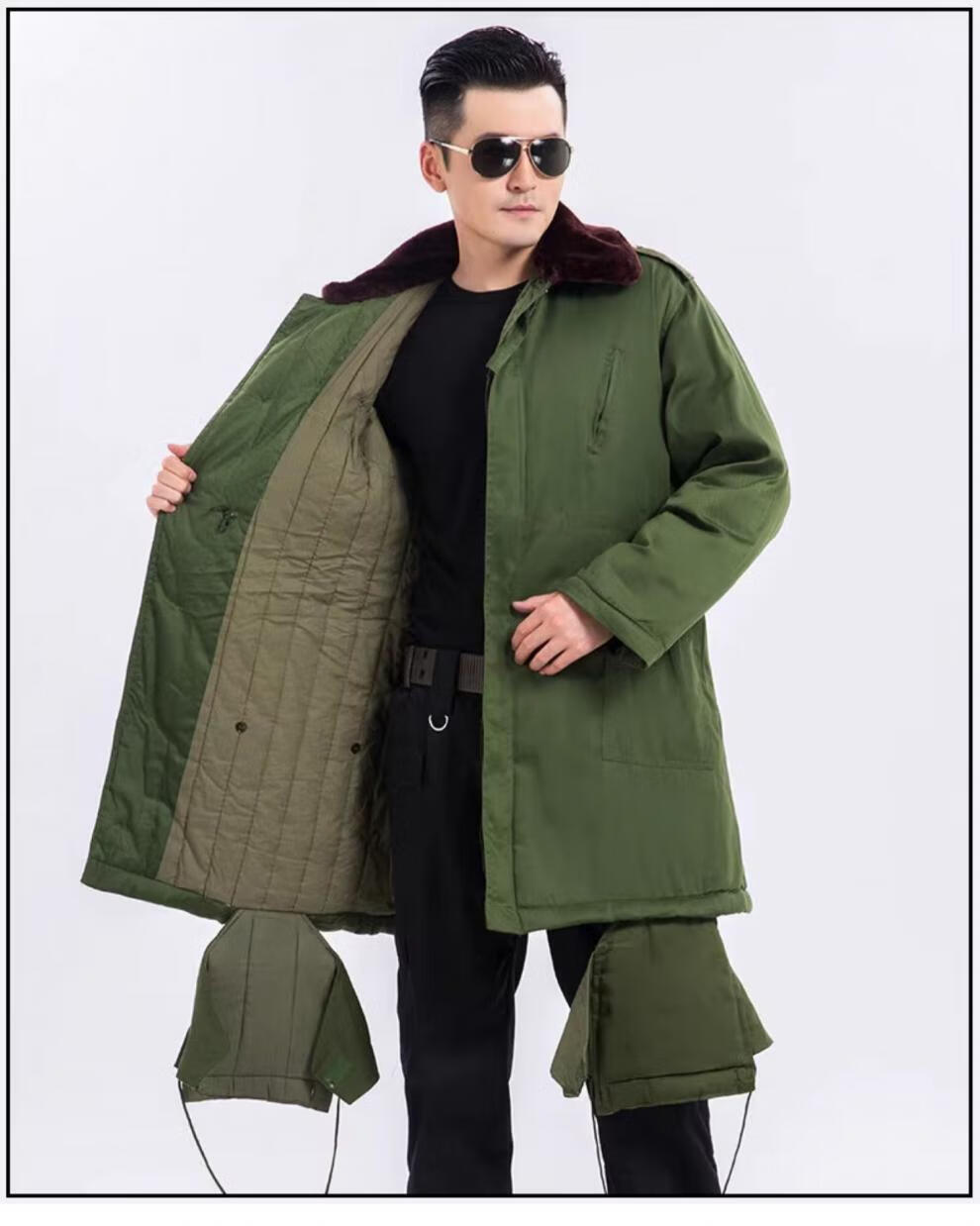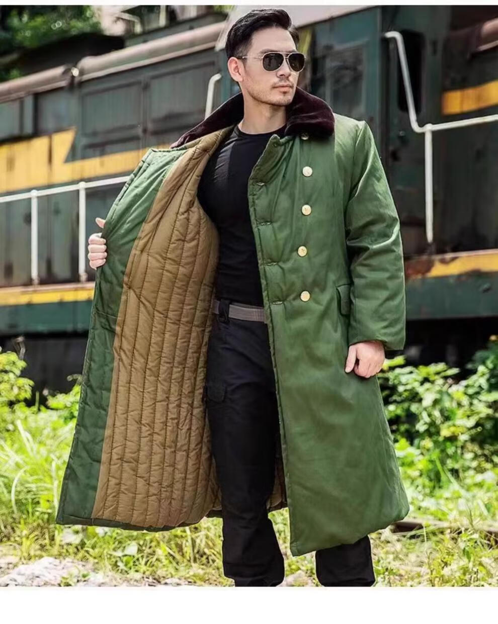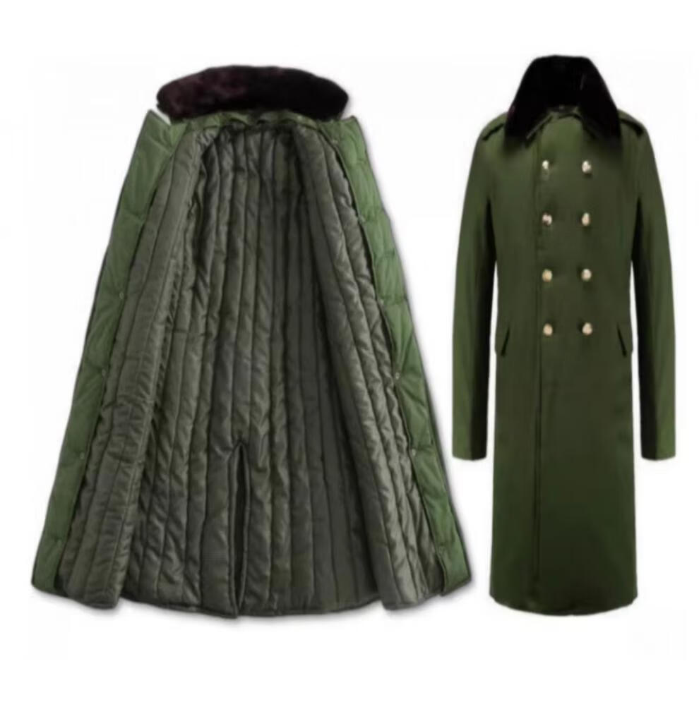 Hengyuanxiang's new military large coat, men's military winter coat, women's old-fashioned military cotton green coat, Northeast cold-proof coat - 40 degrees Celsius, thickened military green polyester card fabric, combed long-staple cotton (medium one size)