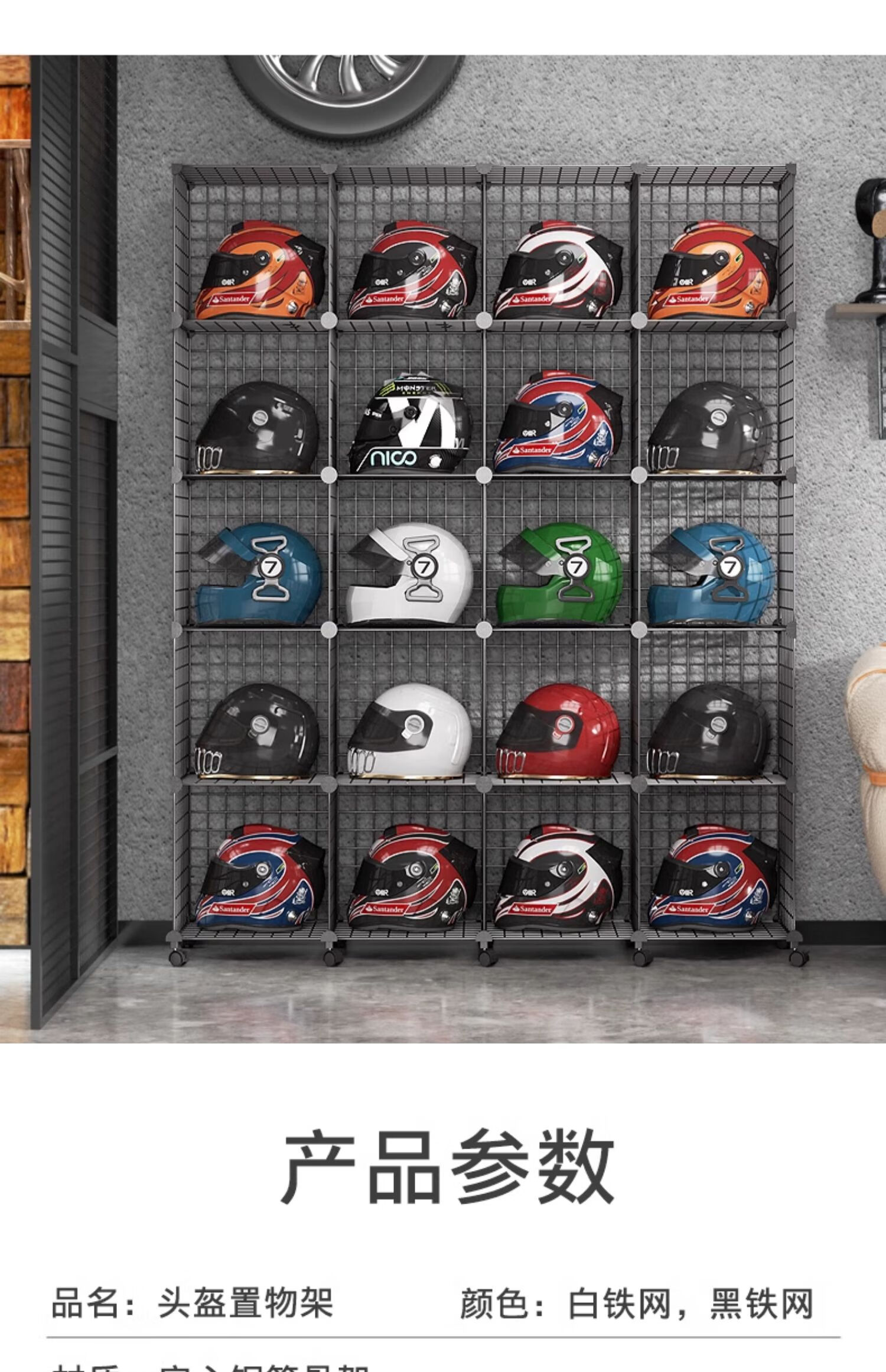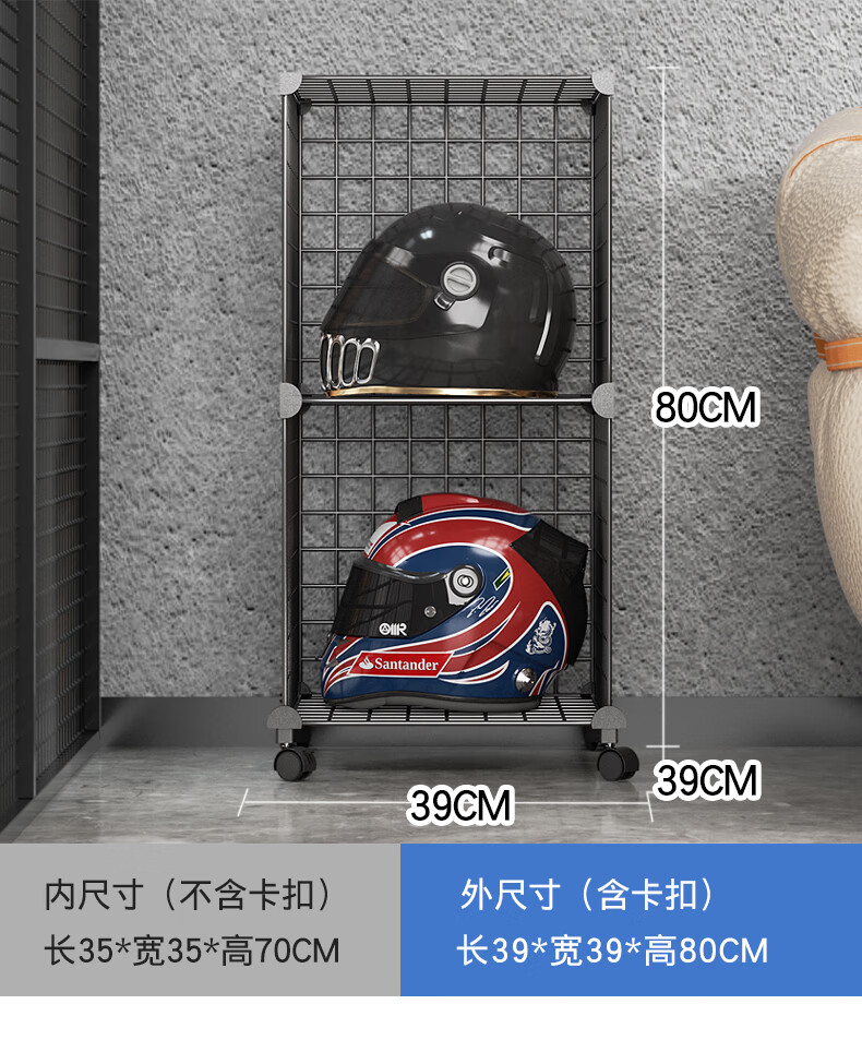 Thornton Helmet Rack Removable Display Rack Cycling Equipment Storage Rack Iron Helmet Storage Rack Black 2 Columns 3 Layers/With Pulleys 30*30*30
