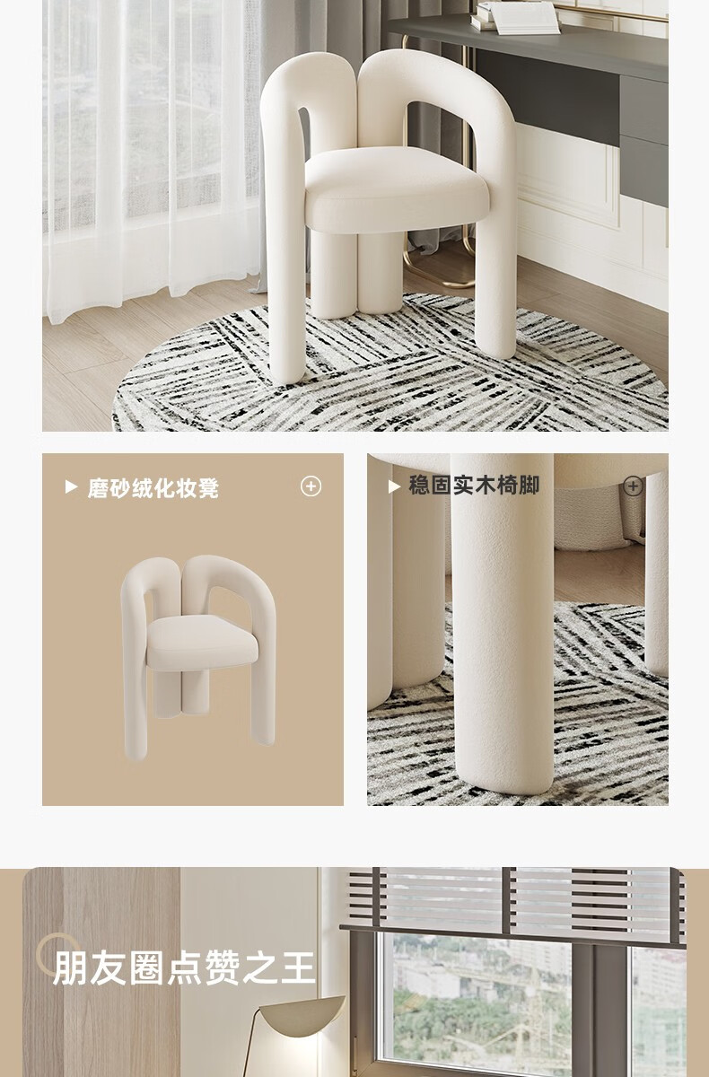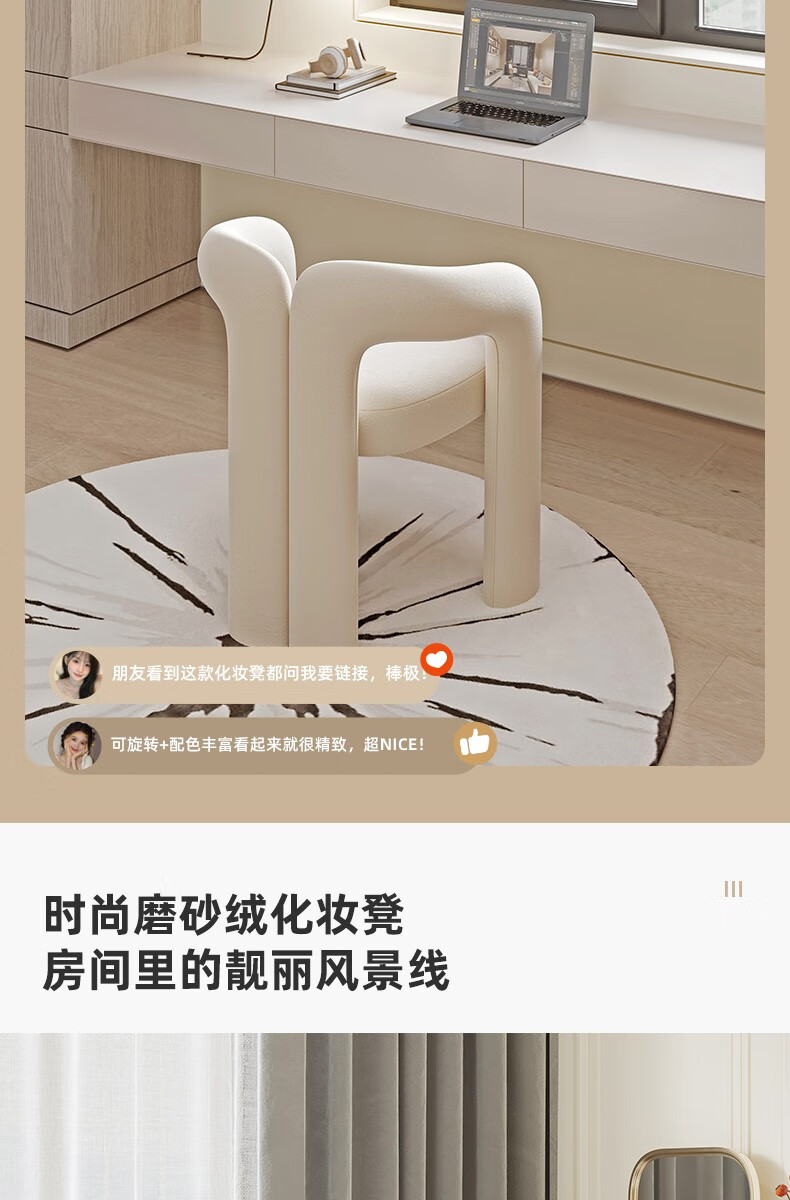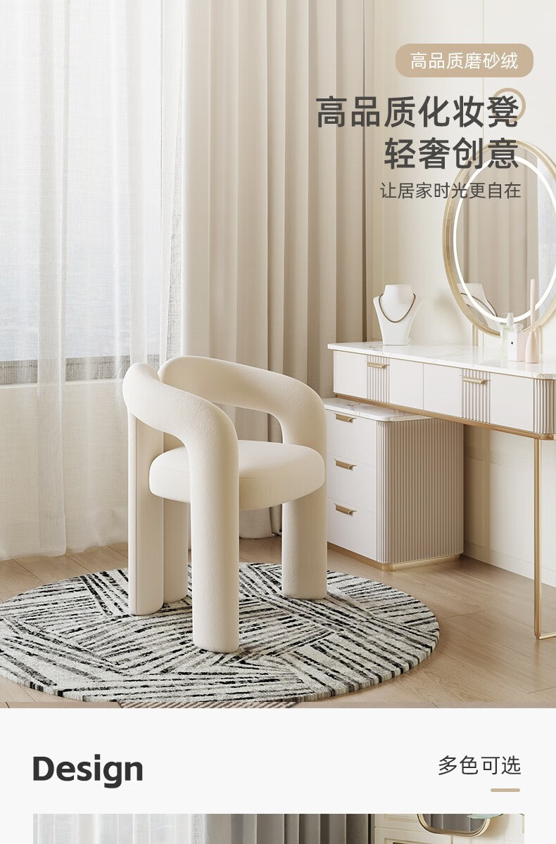 Mo Su Modern Simple Living Room Bedroom Makeup Stool Home Nordic Creative Design Backrest Dressing Stool Dressing Table Chair Soft Stool Off-White Futian Frosted Velvet No. 1 Complete Decoration