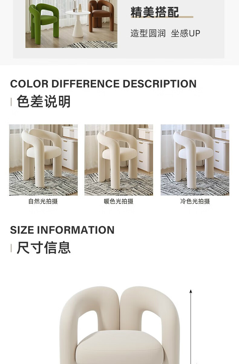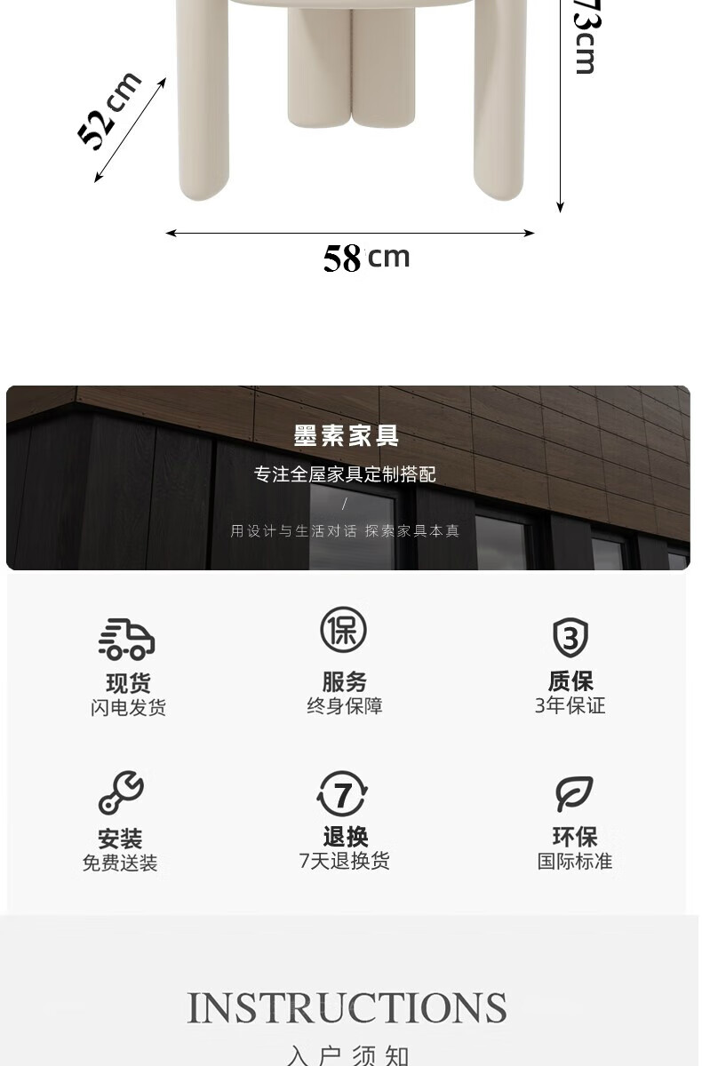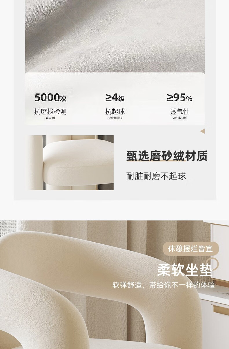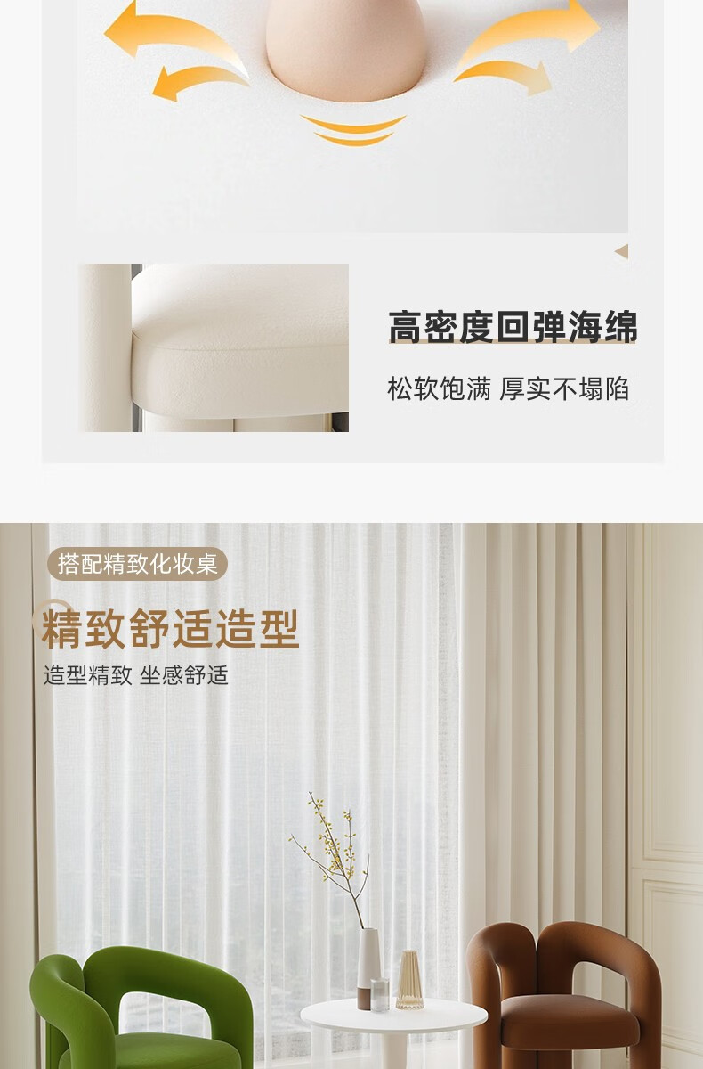Mo Su Modern Simple Living Room Bedroom Makeup Stool Home Nordic Creative Design Backrest Dressing Stool Dressing Table Chair Soft Stool Off-White Futian Frosted Velvet No. 1 Complete Decoration