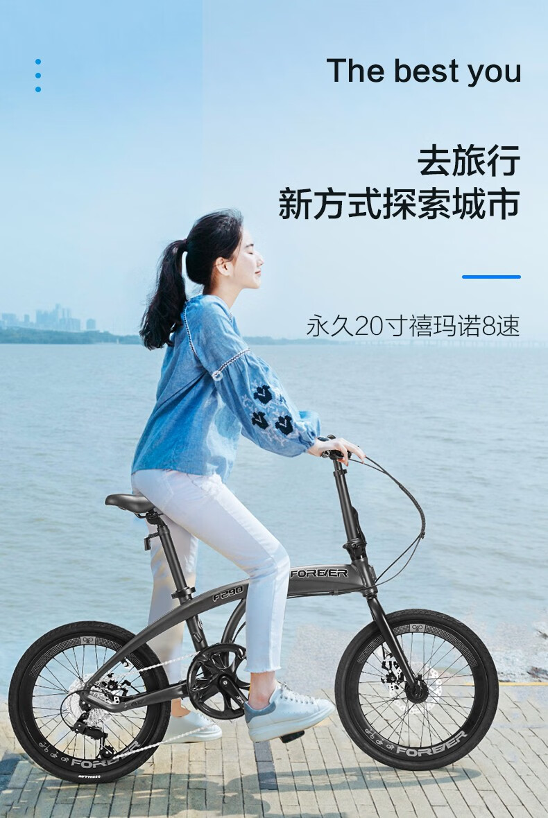 Permanent folding bicycle 20-inch aluminum alloy frame Shimano 8-speed dual-disc brake student men's and women's urban leisure vehicle Dailan