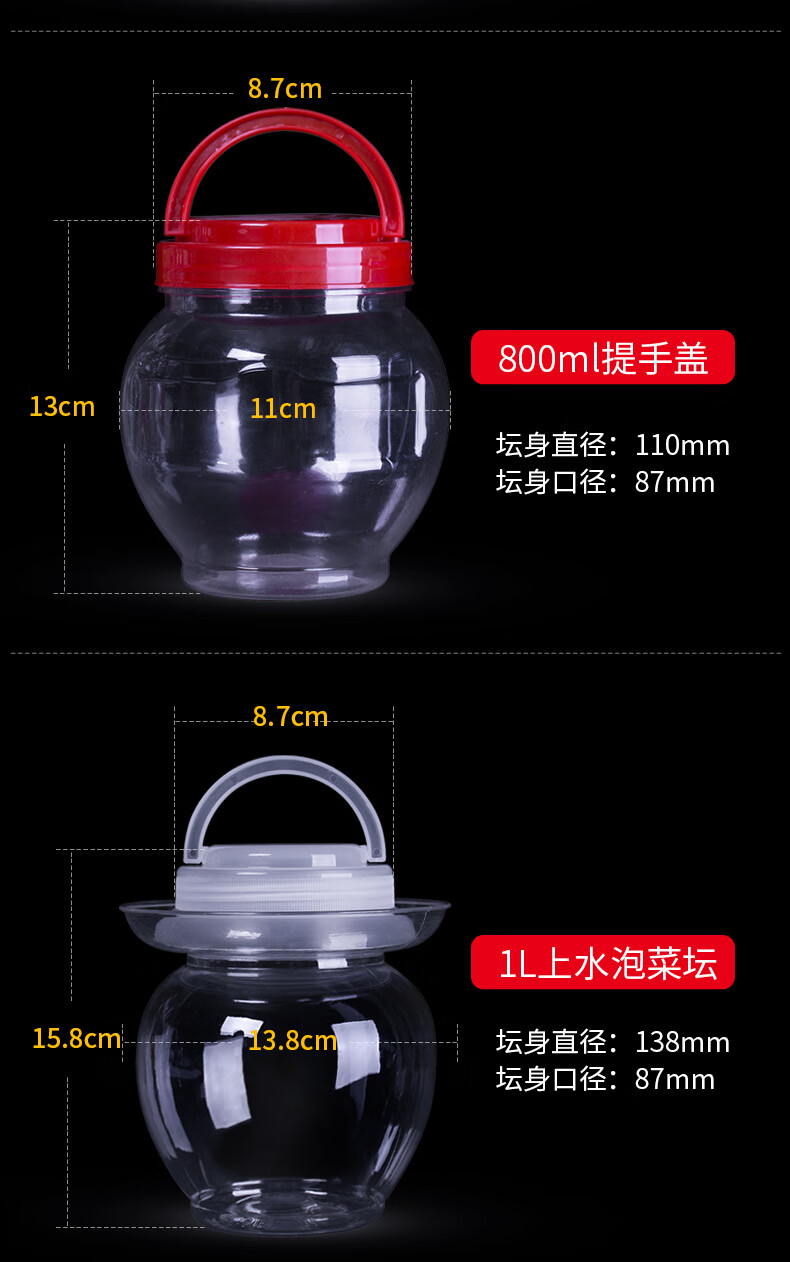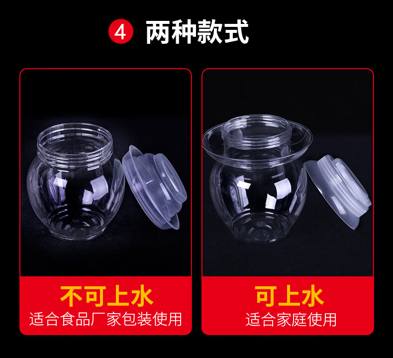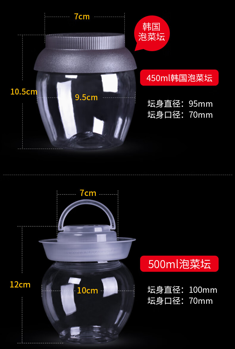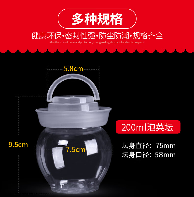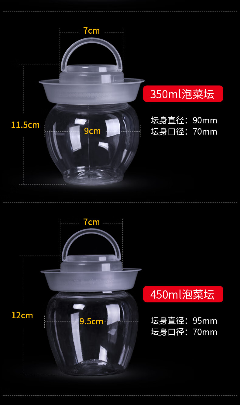 Glaze pickle jar sealed jar plastic bottle pickle container transparent lid household plastic jar food grade plastic jar 200ml transparent lid portable holding 4 taels of water without inner lid