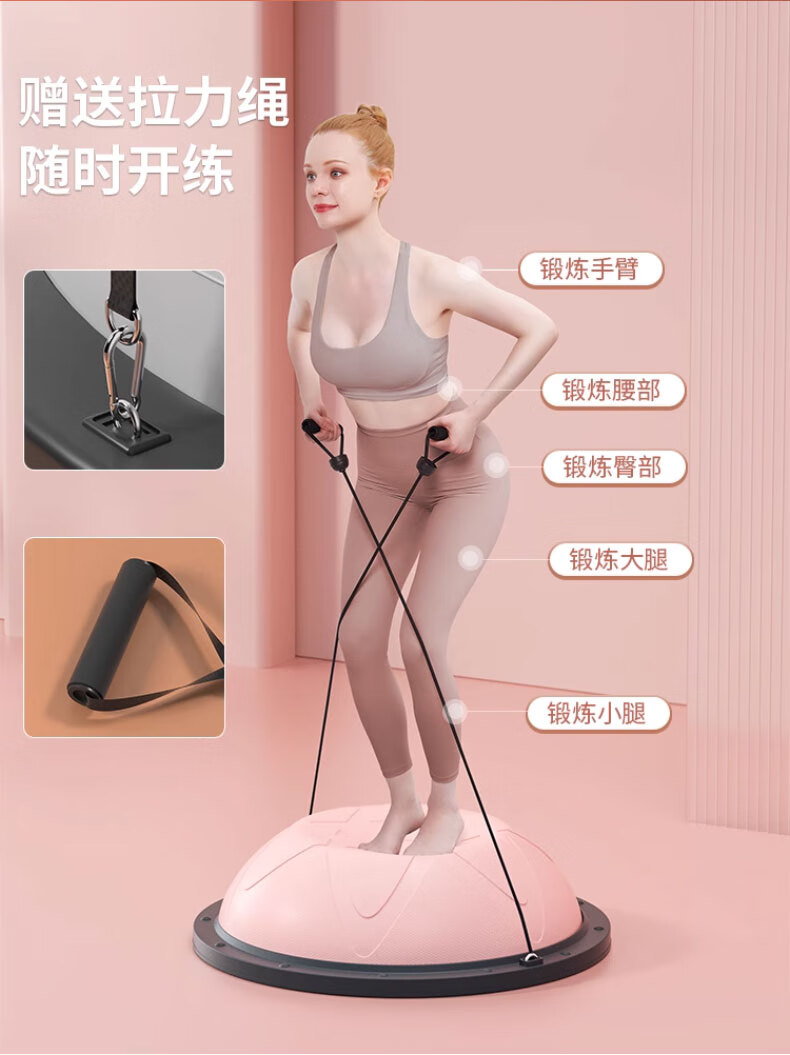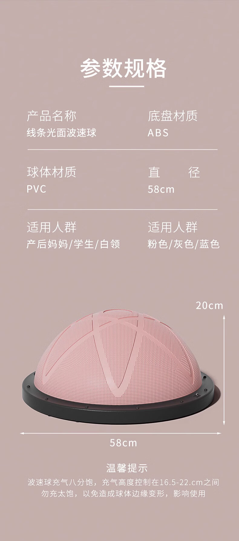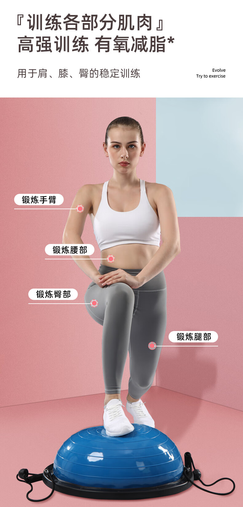 LEDOMODA wave speed ball thickened explosion-proof foot semicircular balance ball rehabilitation training sports fitness ball Pilates yoga ball 58cm massage point gray + drawstring + pump