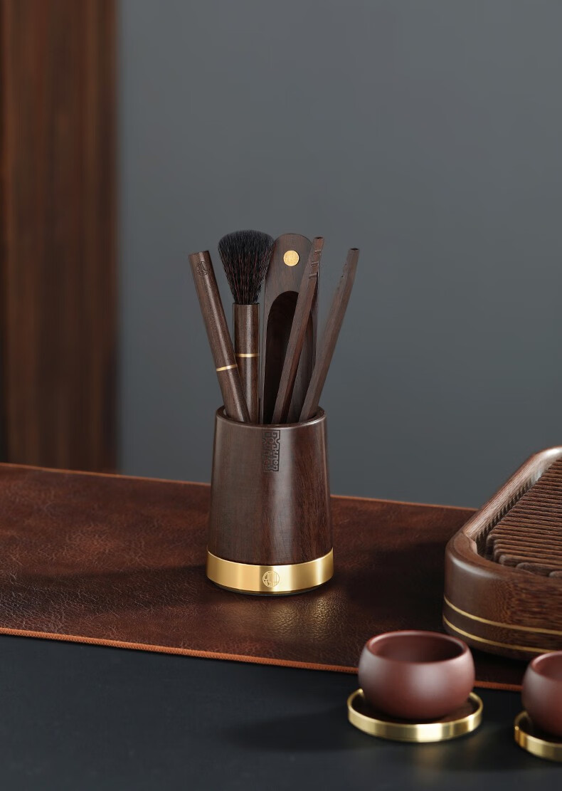 Buchuo Tea Accessories Tea Ceremony Six Gentlemen Tea Coasters Set 6 Gentlemen Tea Needles Tea Clips Tea Knives Tea Making Tools 1-Ebony to Simple Tea Ceremony Set