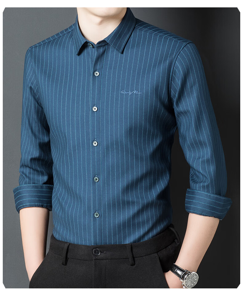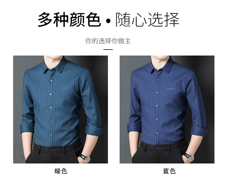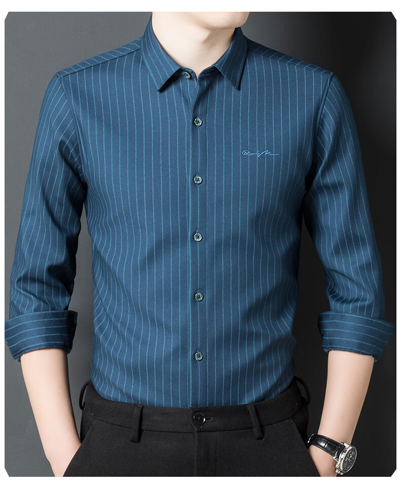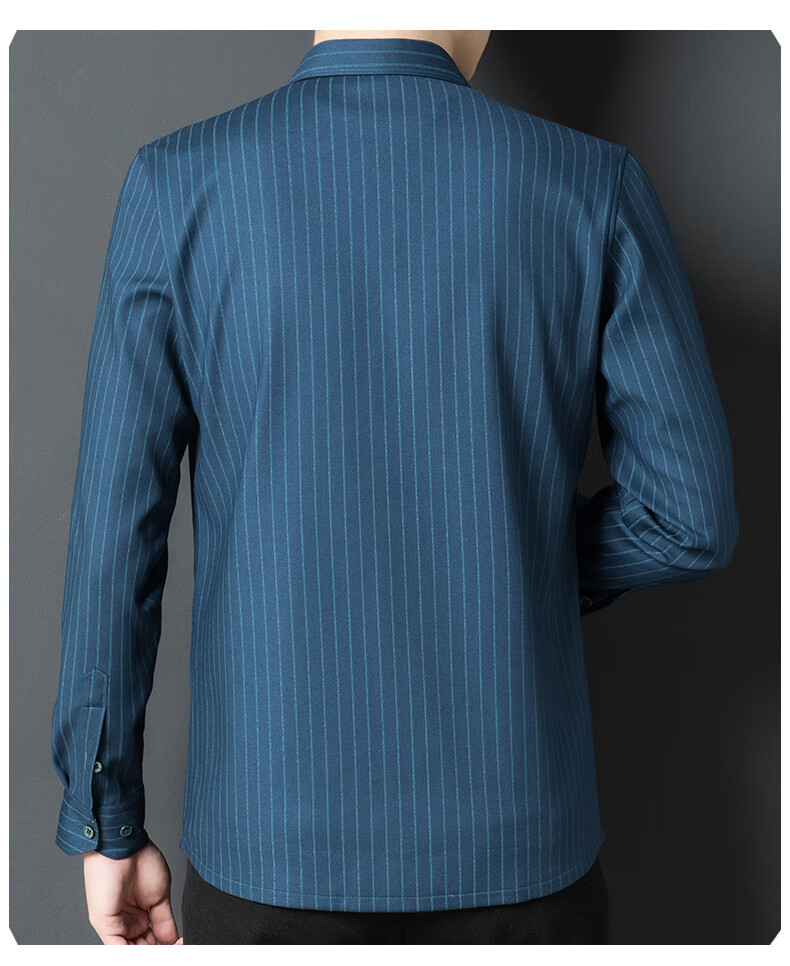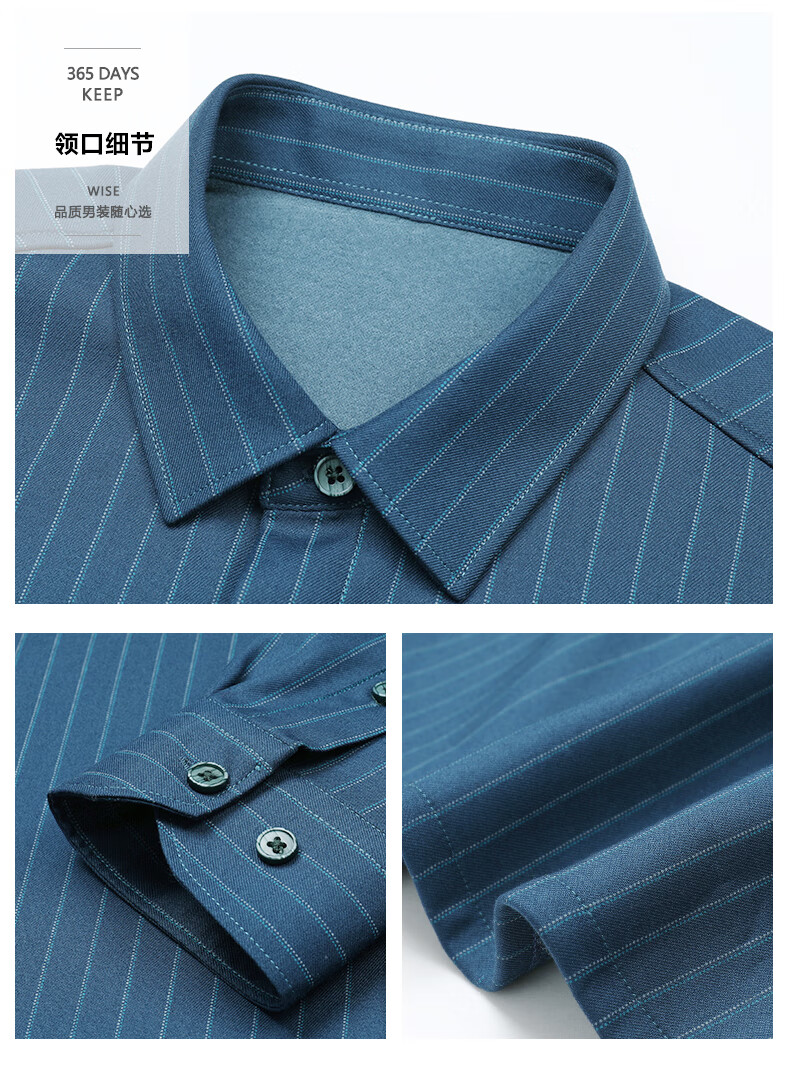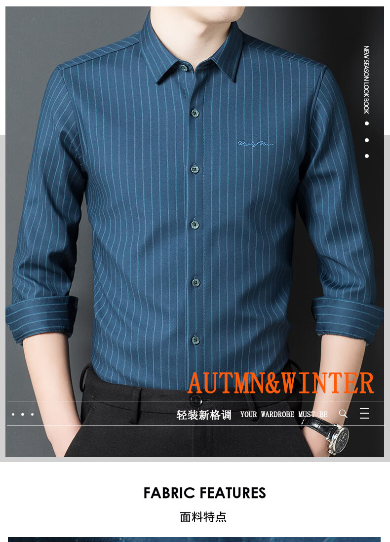 Hengyuanxiang middle-aged men's velvet thickened shirt men's warm shirt men's business winter casual non-iron striped top Green F5007 41/XL