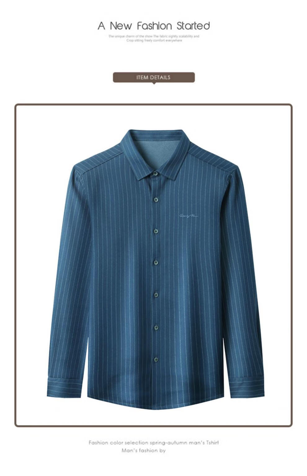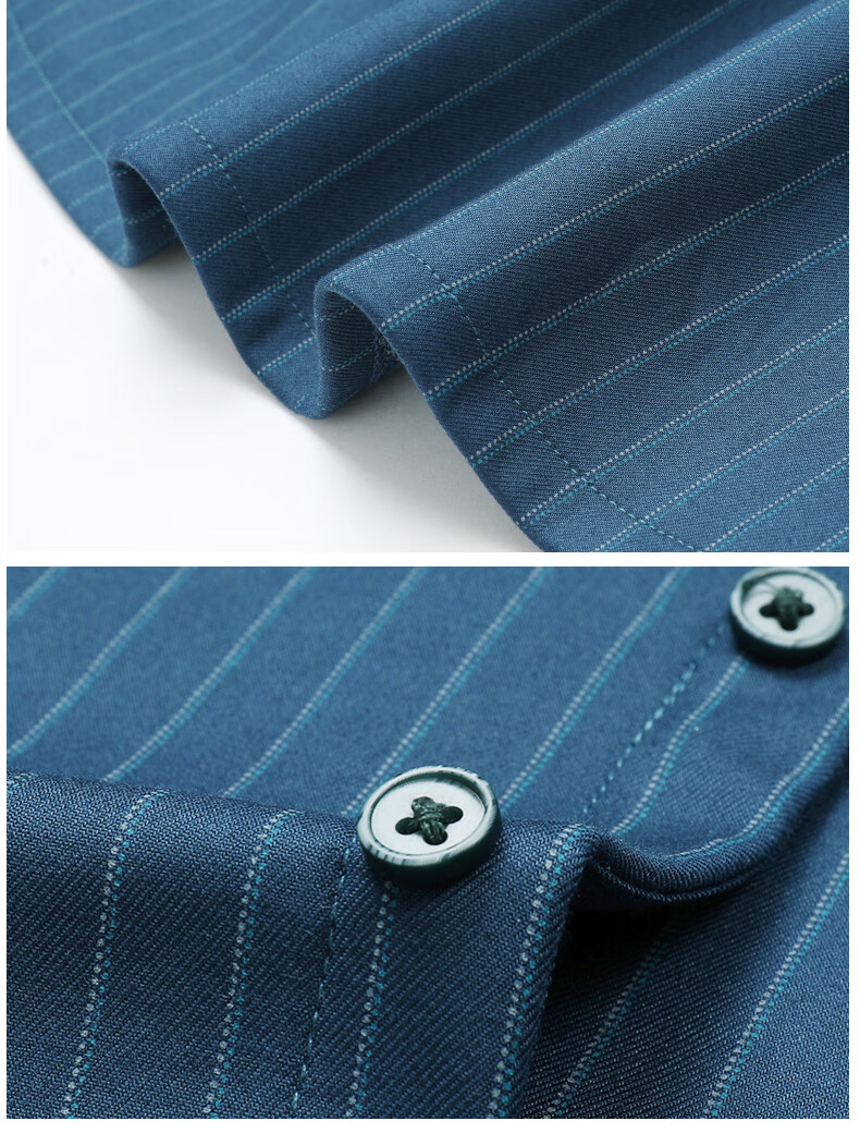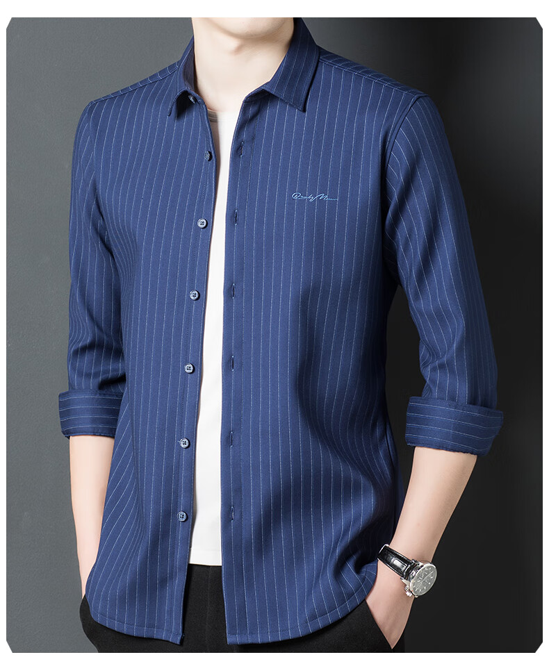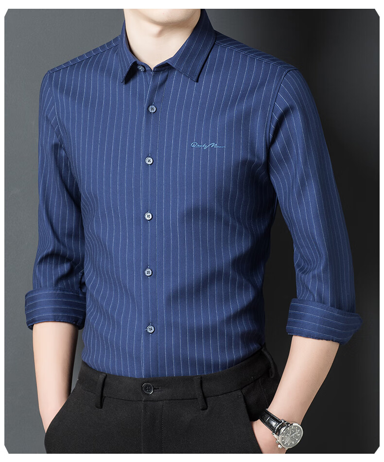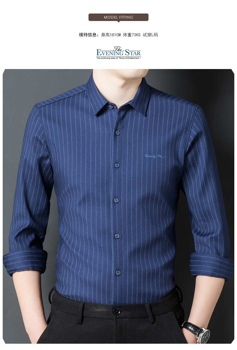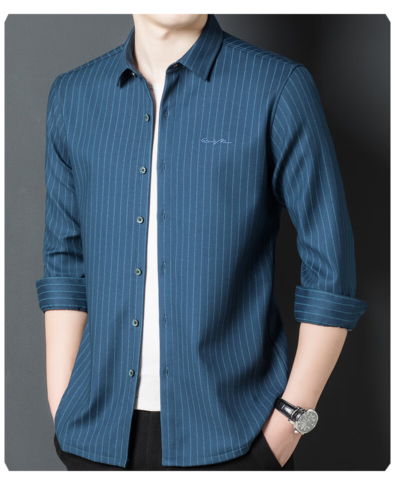 Hengyuanxiang middle-aged men's velvet thickened shirt men's warm shirt men's business winter casual non-iron striped top Green F5007 41/XL