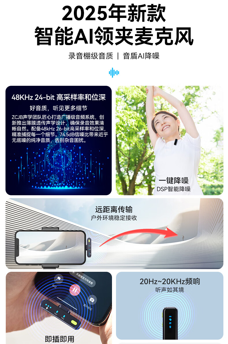 ZCJB wireless lavalier microphone anchor sound card live eating broadcast recording outdoor professional noise reduction short video little bee radio microphone karaoke wireless microphone mobile phone computer camera Huangcang one for two Apple Android computer camera universal