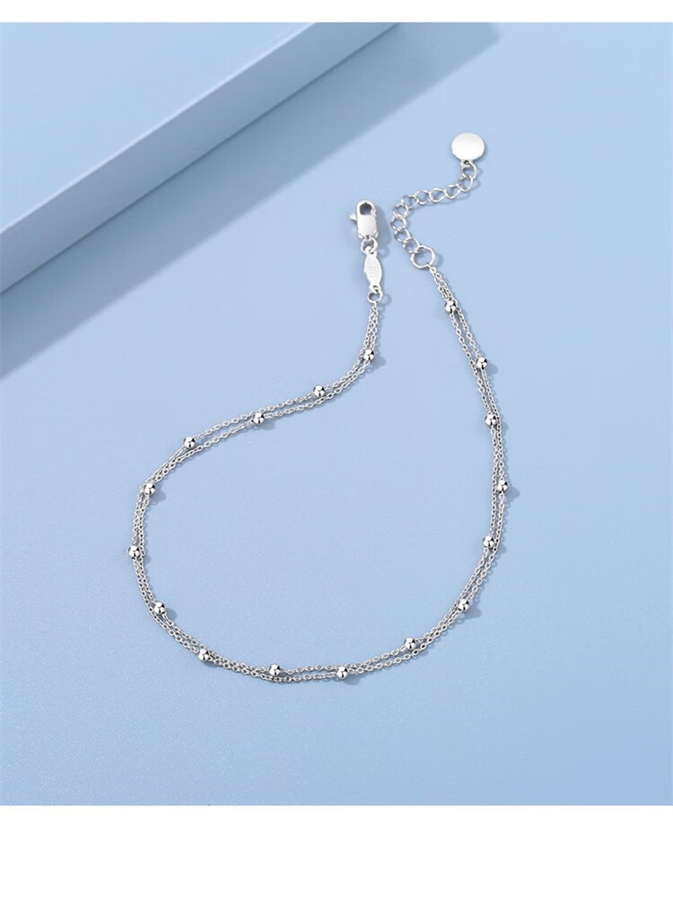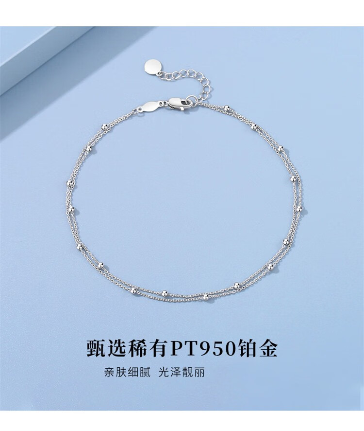 Aiyu's new PT950 platinum anklet for women, round bead O-shaped chain, double layer simple platinum foot ornament, versatile summer gift