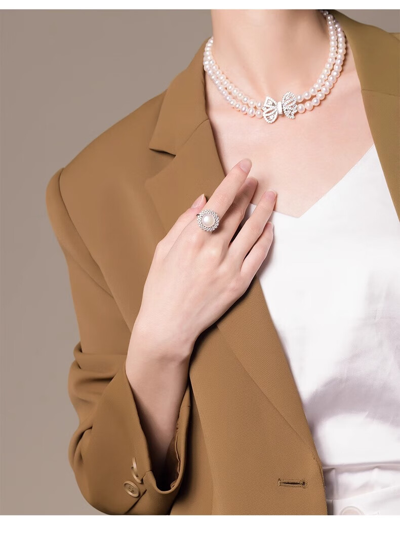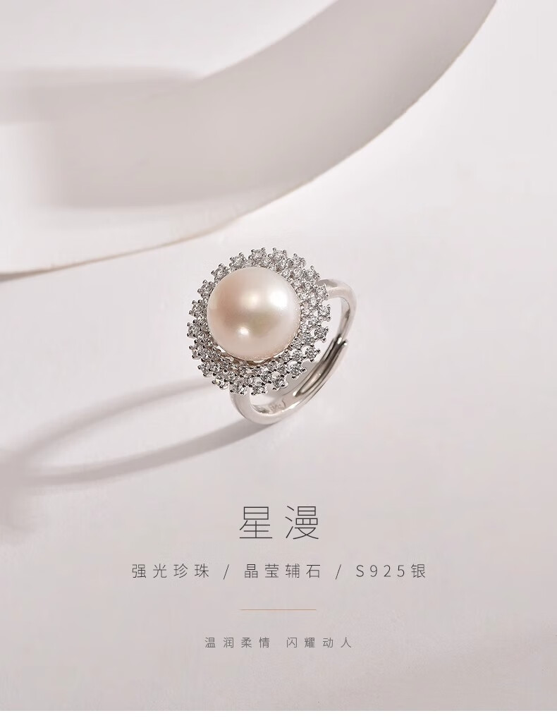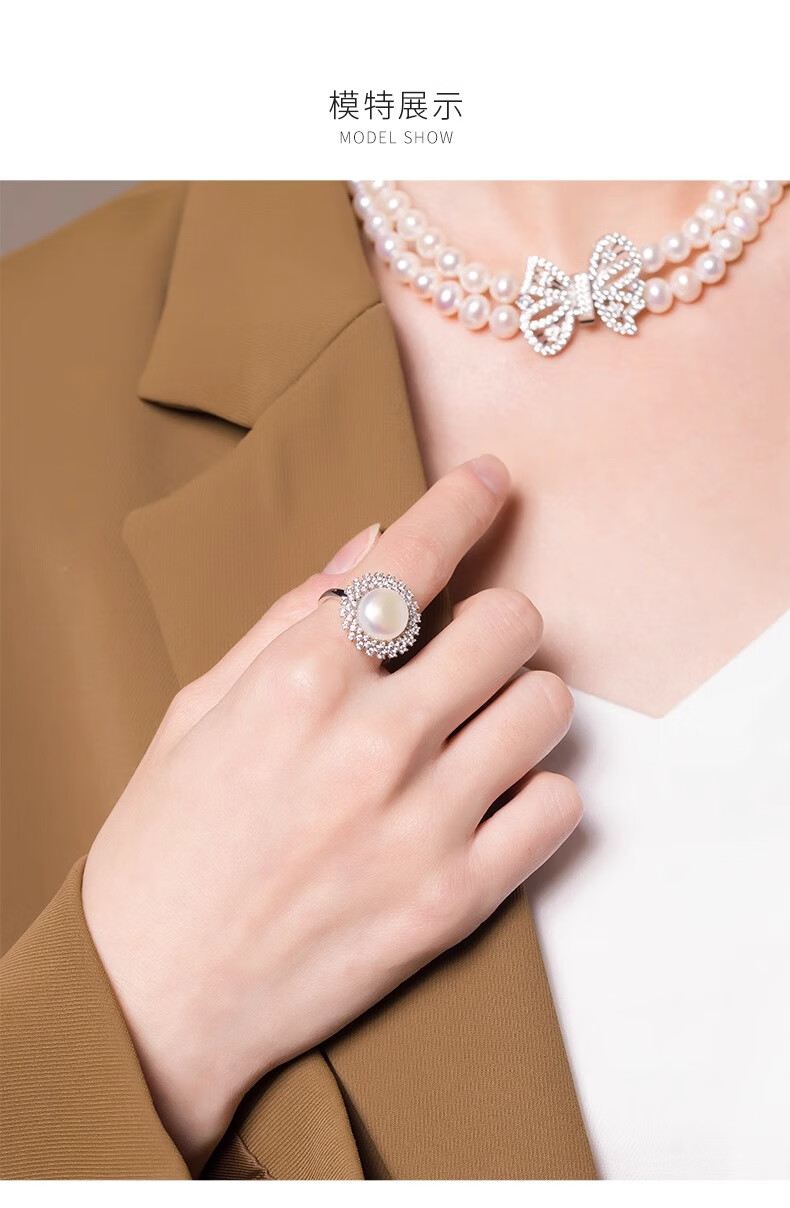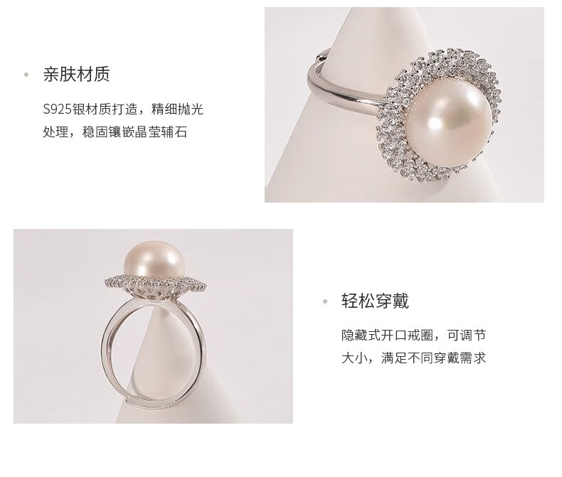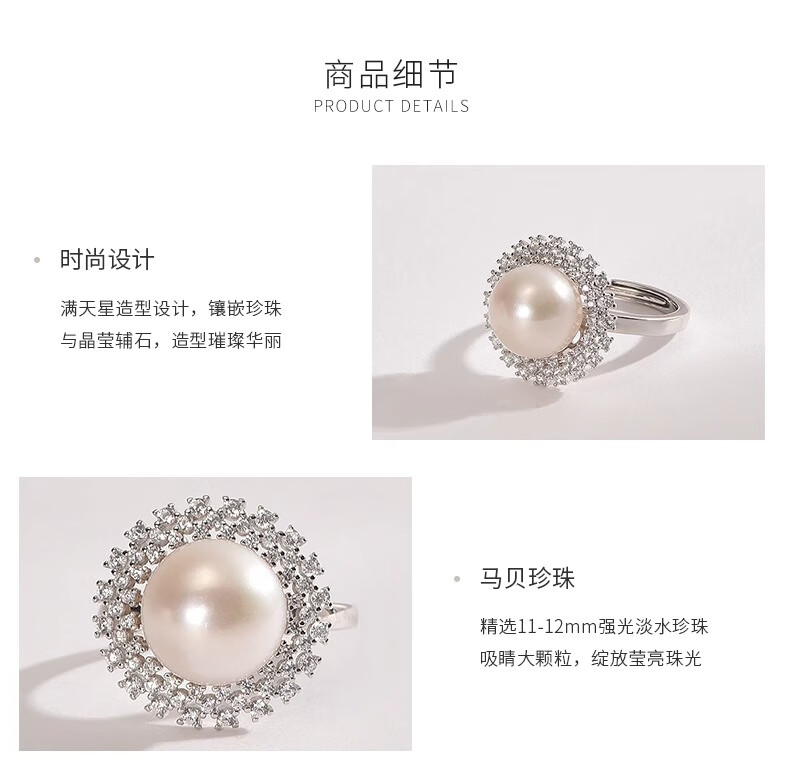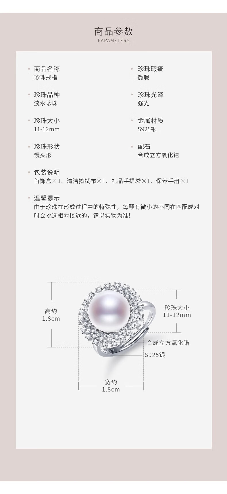 Jingrun Pearl Ring Xingman S925 Silver Freshwater Pearl Ring Daily Elegant Ring Birthday Gift White 11-12mm