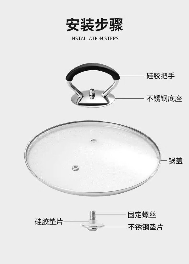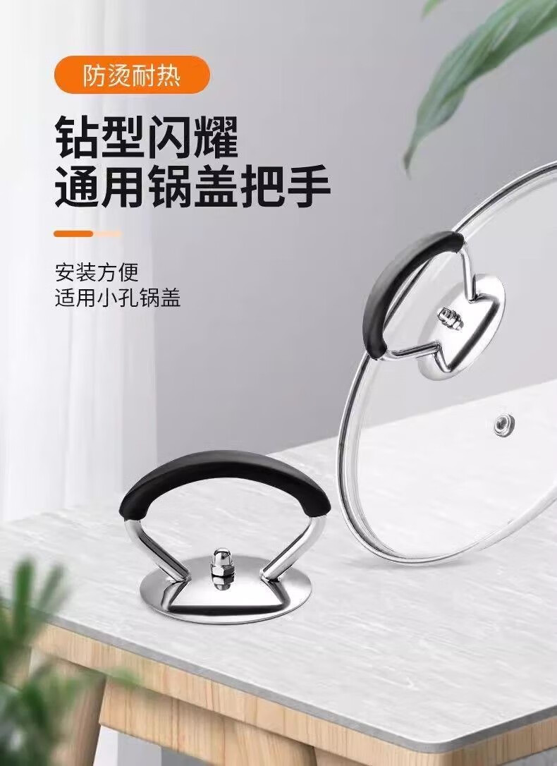 Dijer pot handle, universal pot cover handle, high temperature resistant stainless steel, upright pot lid, anti-scalding cap, steamer accessories, extra thick anti-scalding handle, high-grade black + screws