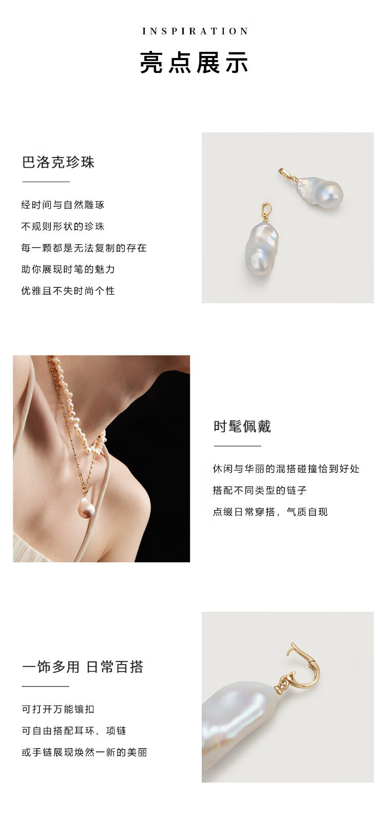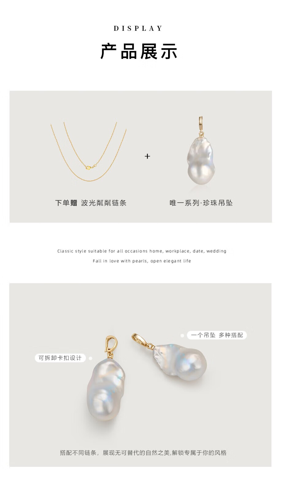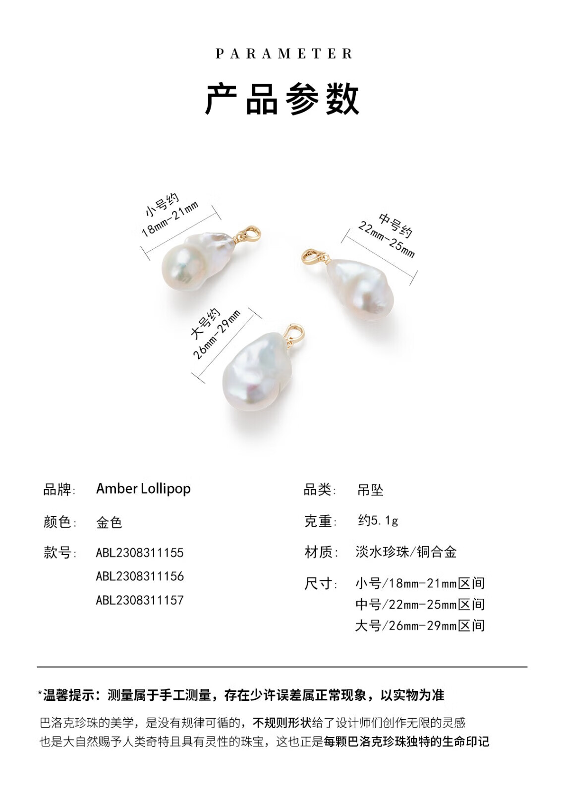 Amber Lollipop Baroque Pearl Pendant Necklace Removable DIY Accessories Anniversary Birthday Gift for Girlfriend and Wife 26mm-29mm Pendant (Baroque Pearl)