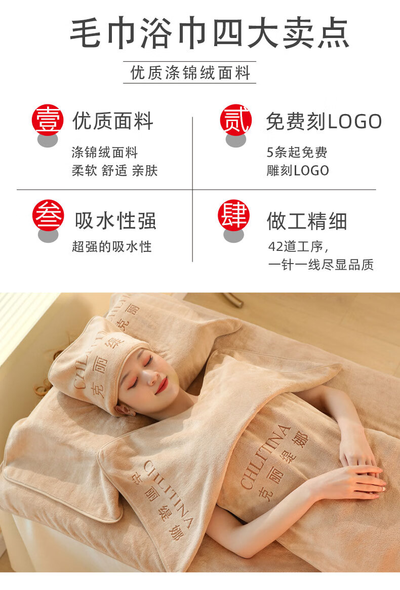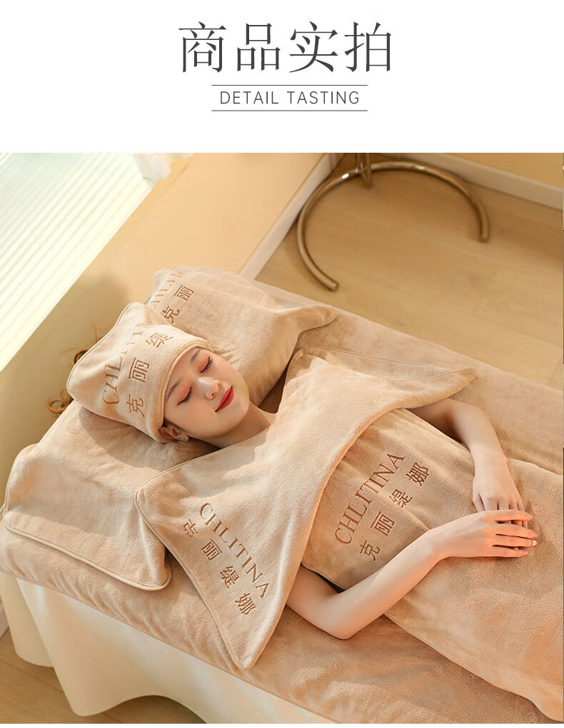 NIANJIE beauty salon special towel barber shop hair drying towel absorbent thickened skin management bed towel customized logo large bath towel 190x80 no holes - camel
