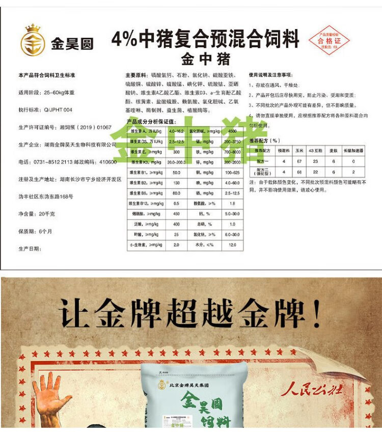 Jin Haoyuan Jin Haoyuan 4% medium pig premix compound feed 40 Jin Jin is equal to 0.5 kg