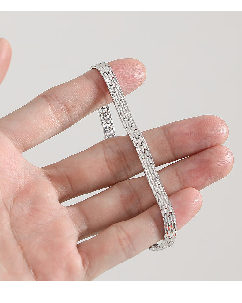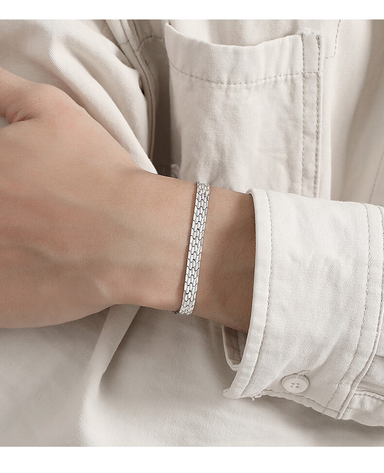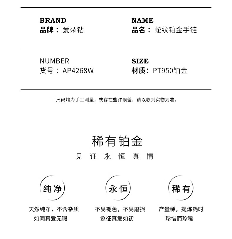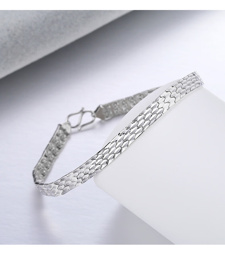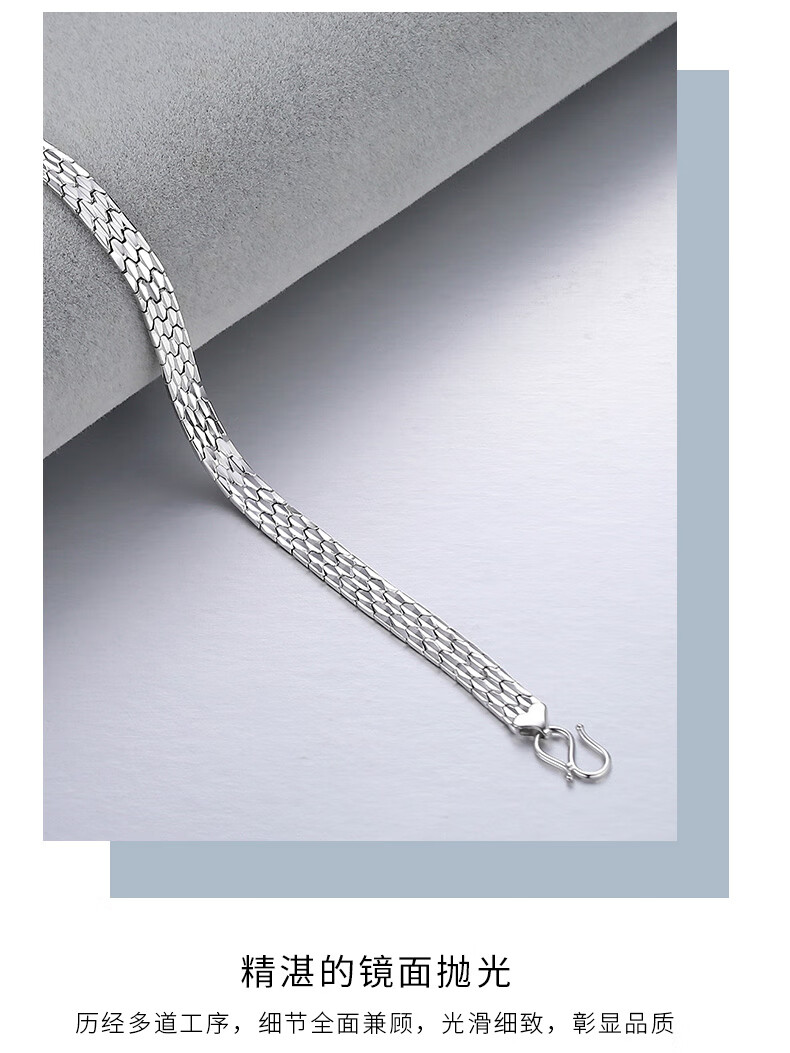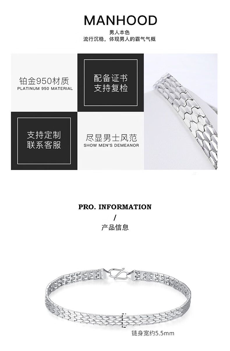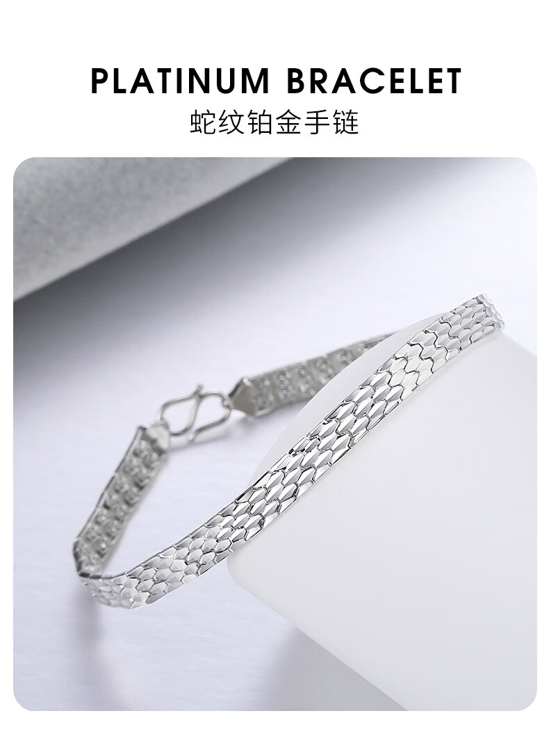 Aido Diamond Platinum Bracelet Men's PT950 Platinum Atmosphere Snakeskin Pattern Turned Keel Strap Chain Weight 15.12g Length 19cm Thick 5.4mm