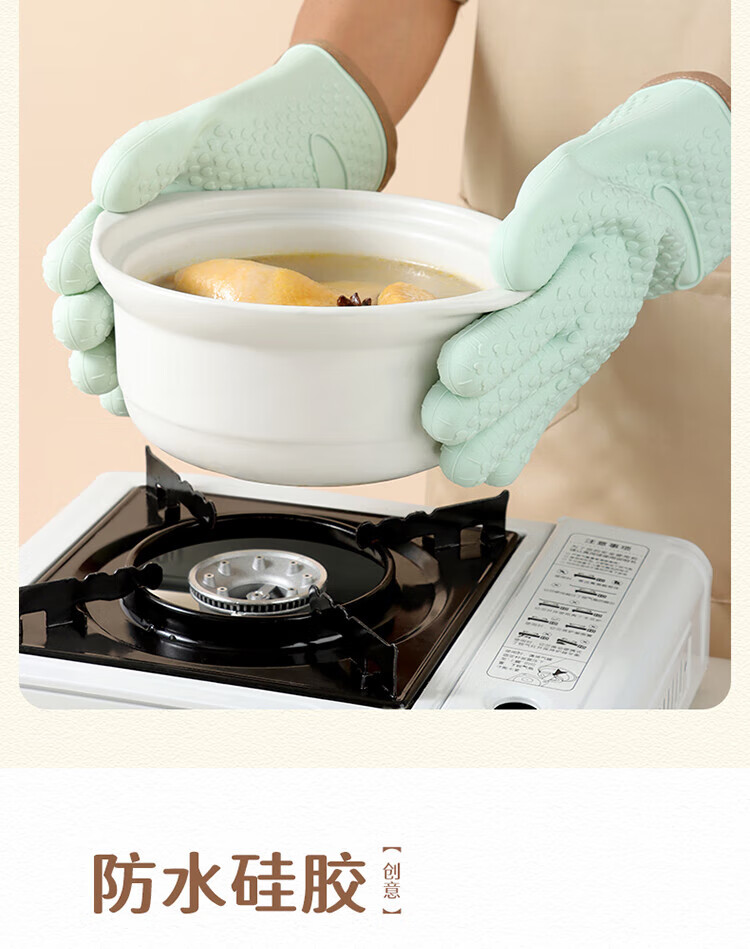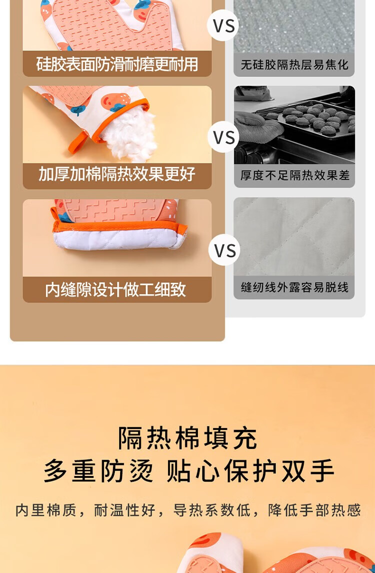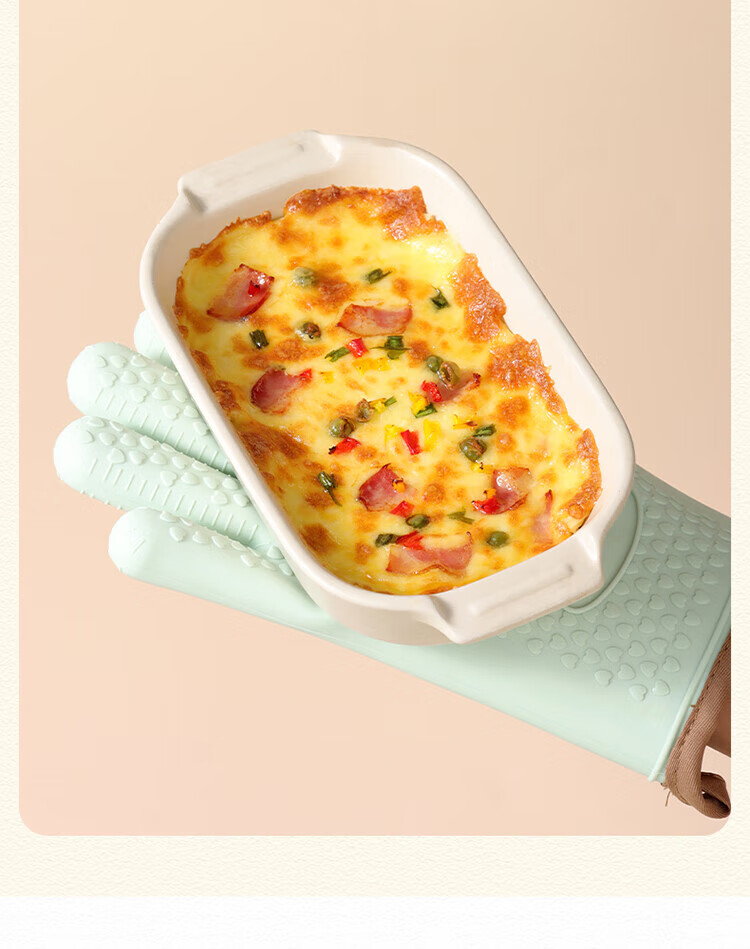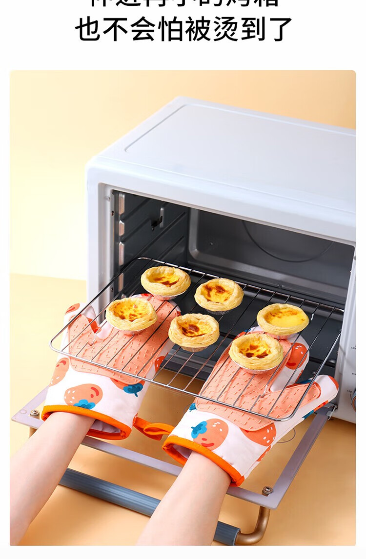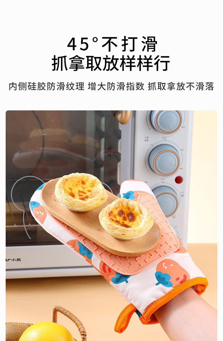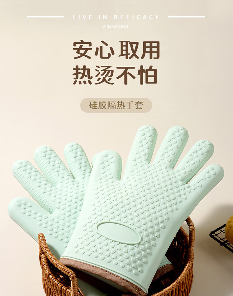 Baijie anti-scalding gloves insulated oven, microwave oven, kitchen baking, high temperature resistant thickened cotton silicone five-finger flexible silicone anti-scalding gloves, two packs, anti-scalding and heat insulation丨stable and non-slip