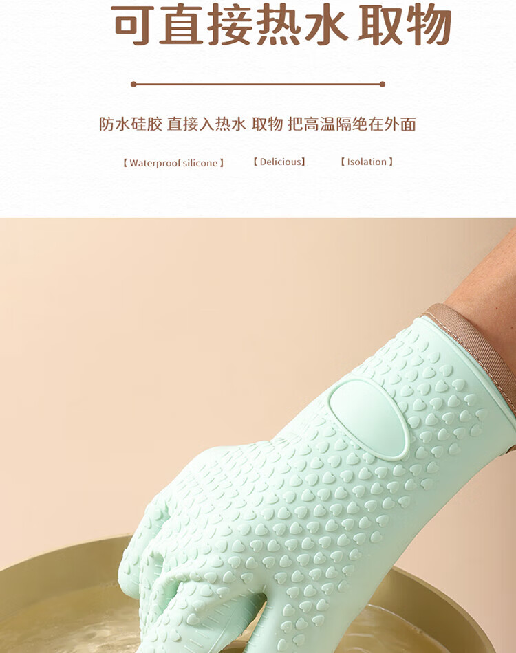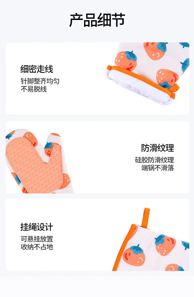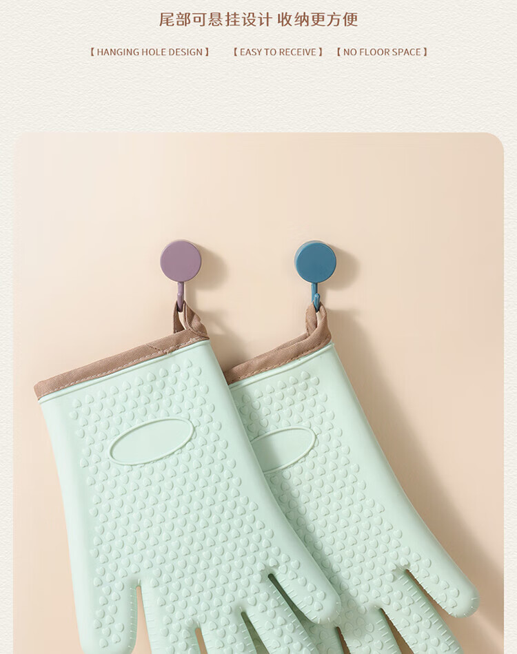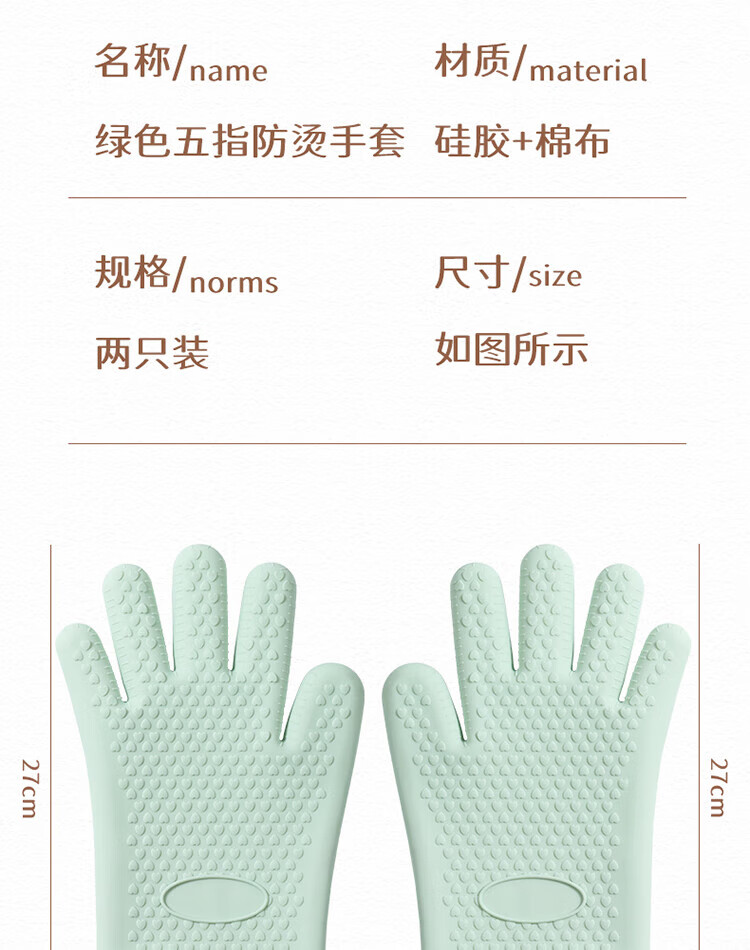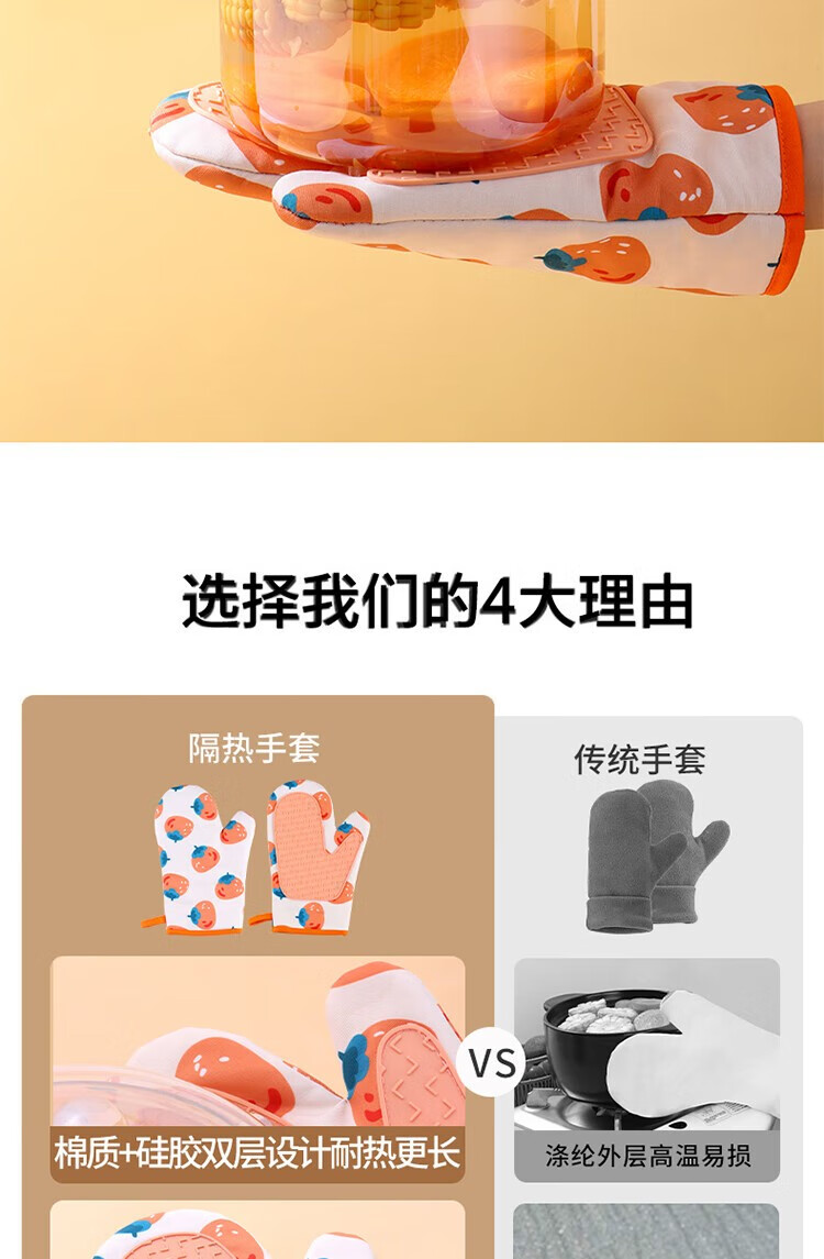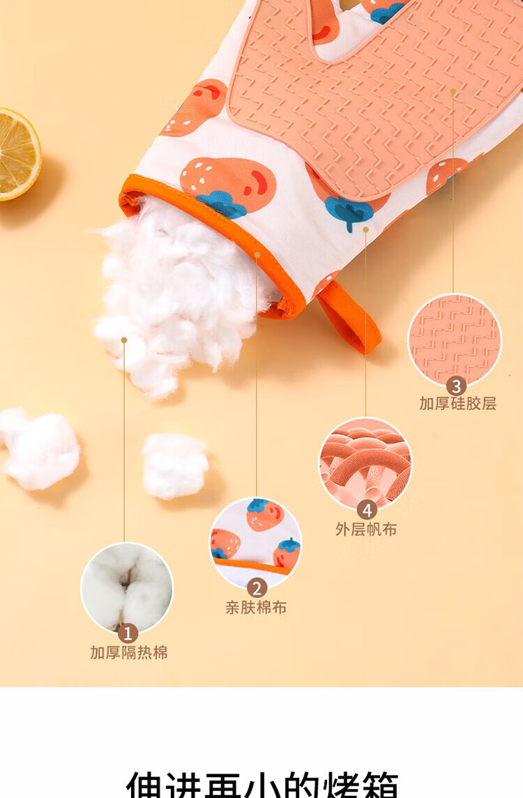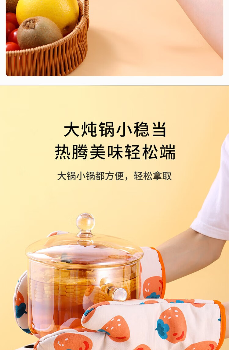 Baijie anti-scalding gloves insulated oven, microwave oven, kitchen baking, high temperature resistant thickened cotton silicone five-finger flexible silicone anti-scalding gloves, two packs, anti-scalding and heat insulation丨stable and non-slip