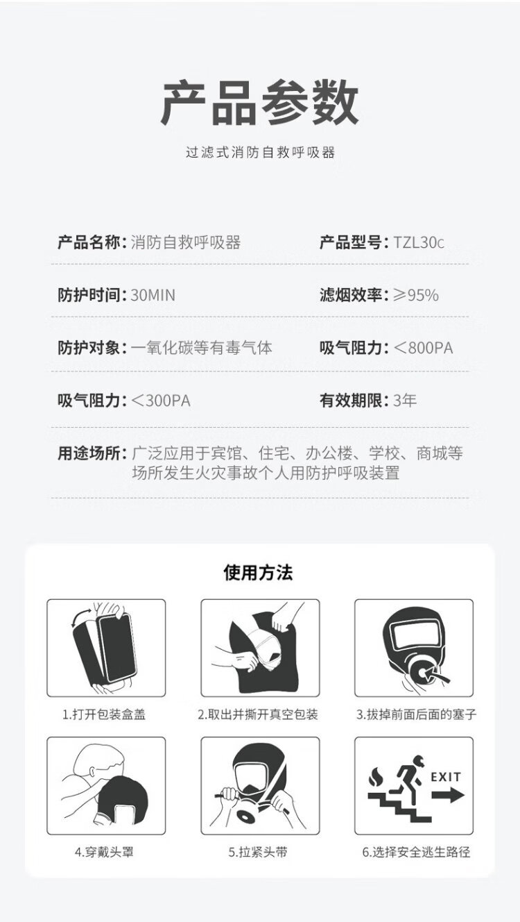Huan'an fire mask, anti-virus, anti-smoke, fire-proof mask, fire escape, hotel household filtering self-rescue respirator, 3C certificate, fire-fighting mask, anti-smoke, anti-virus, Hengzhongan brand