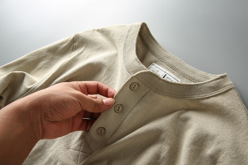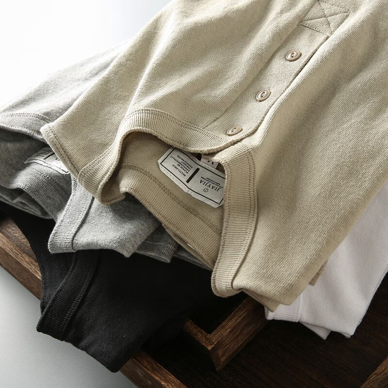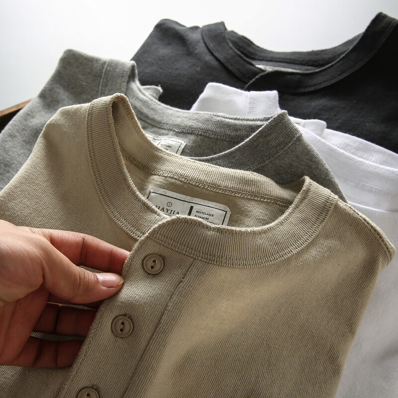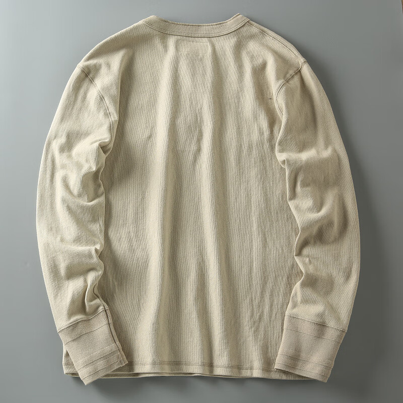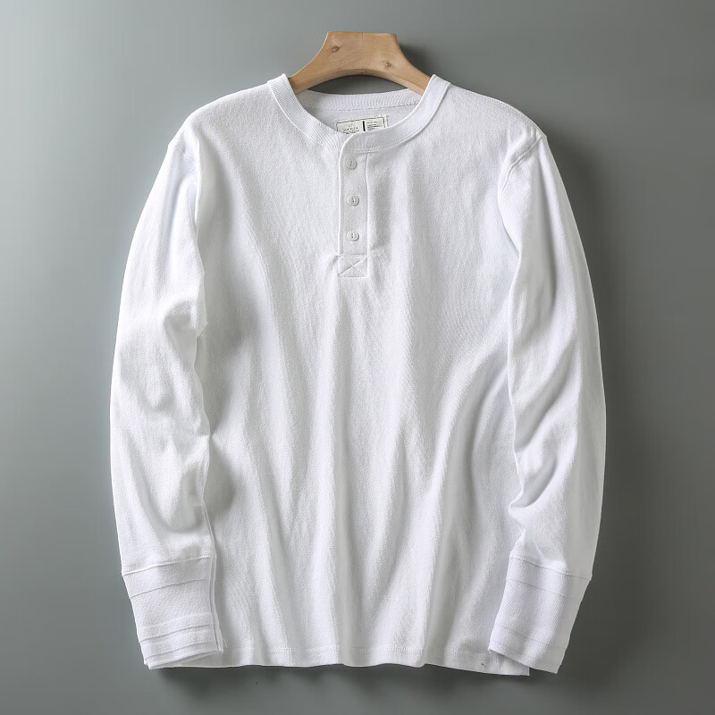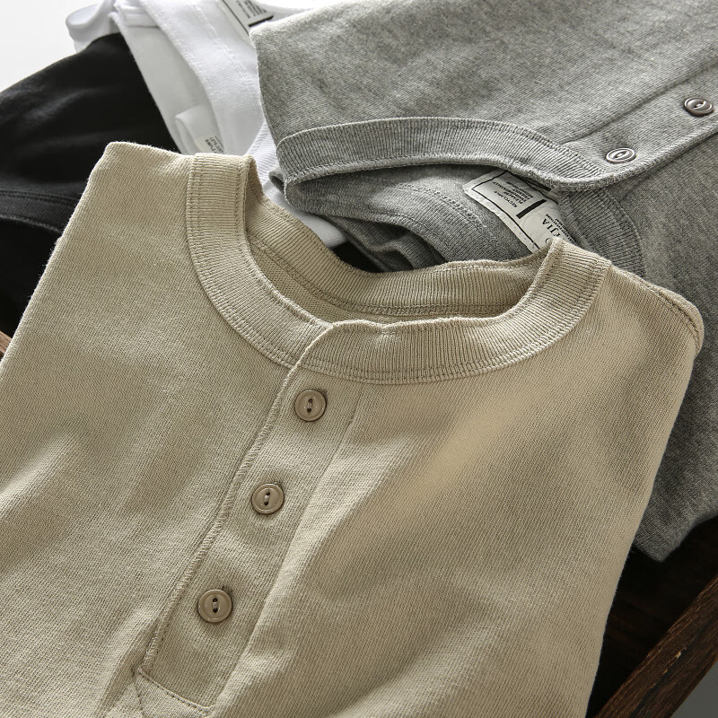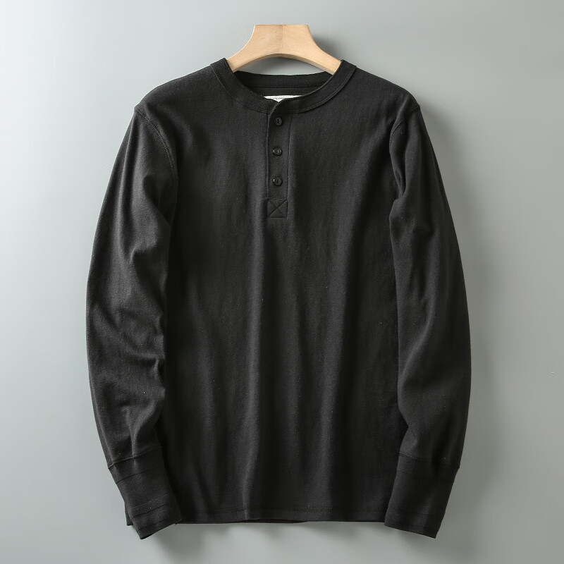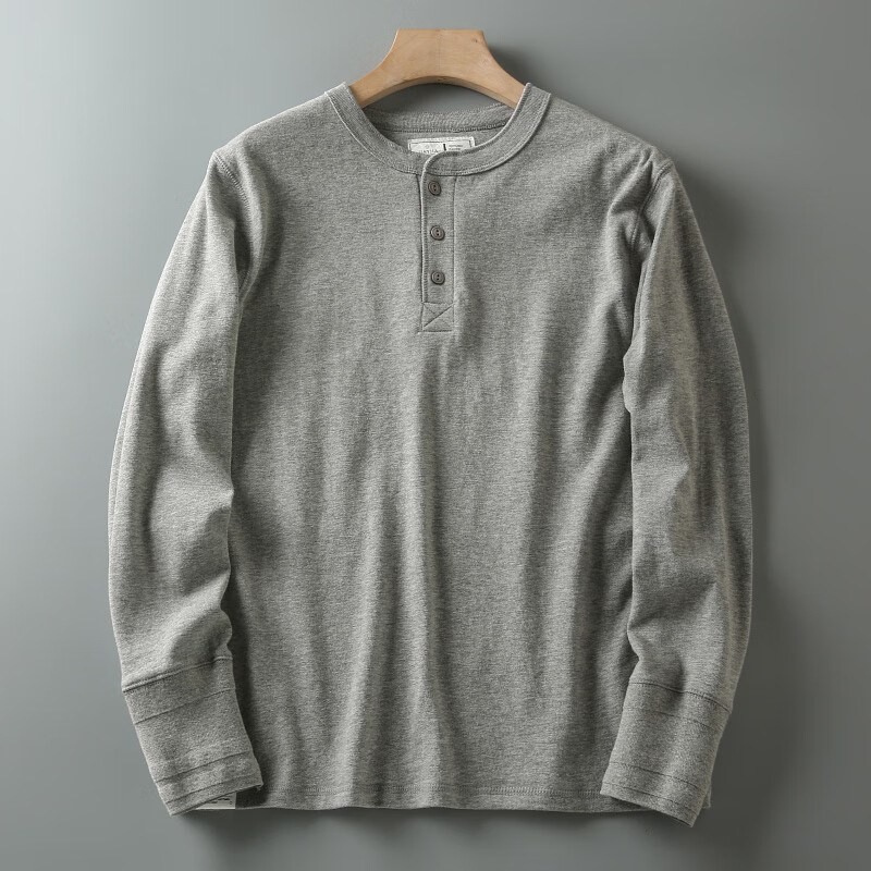 ROMON autumn and winter new American casual henley shirt men's retro simple versatile solid color daily long-sleeved T-shirt base gray L