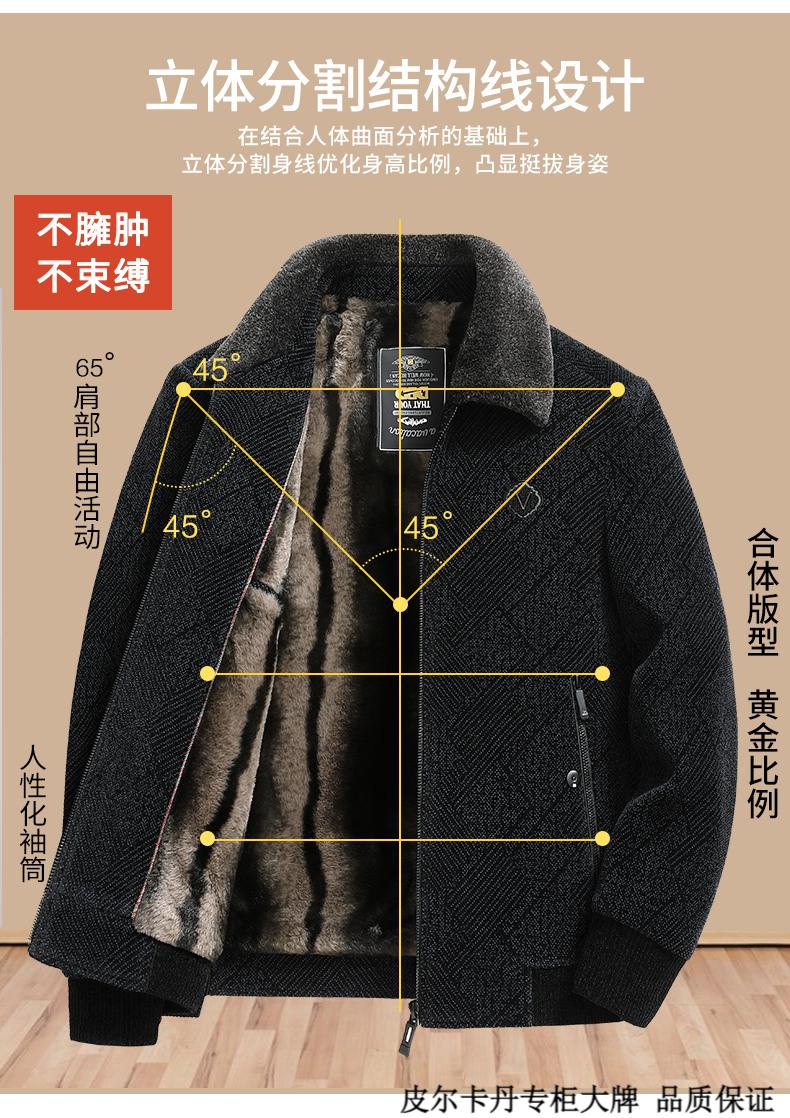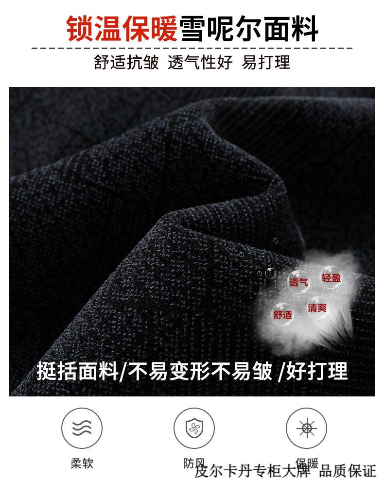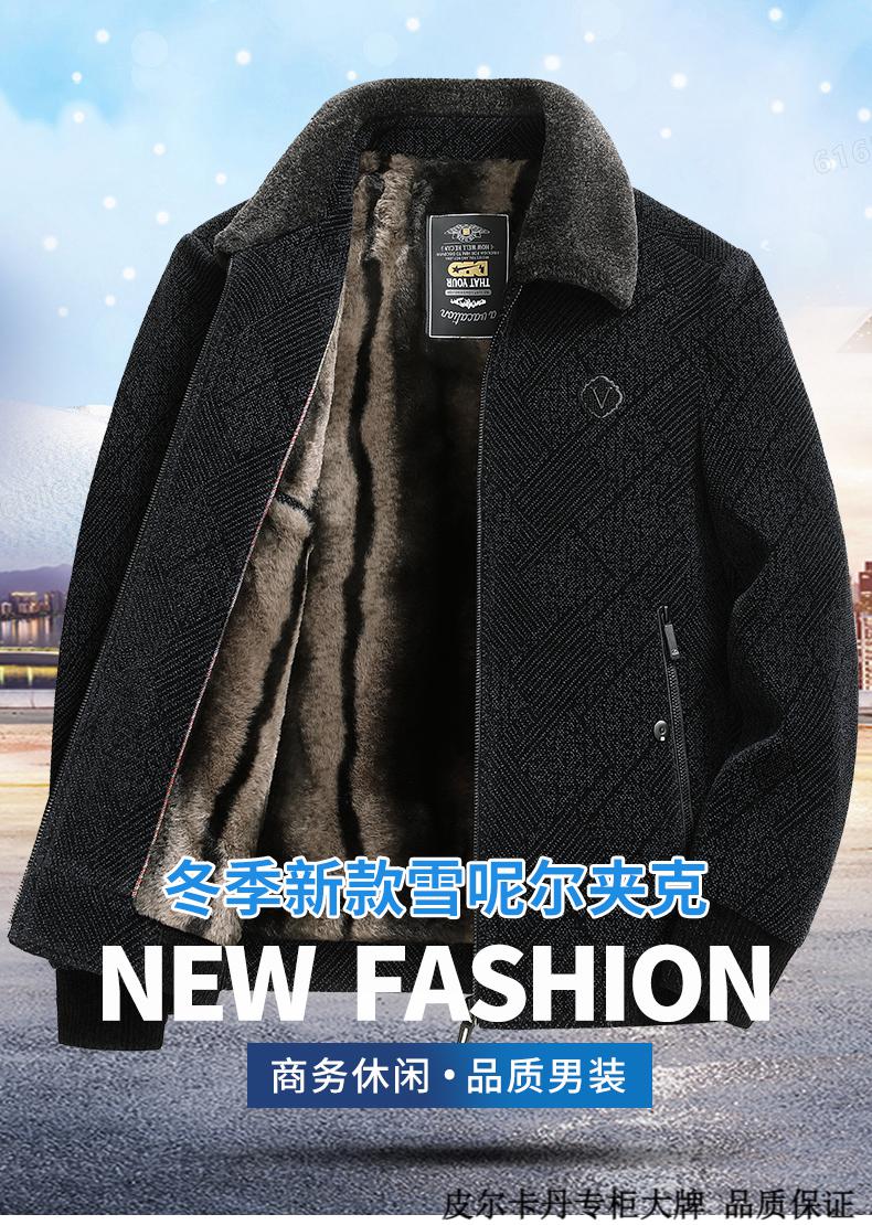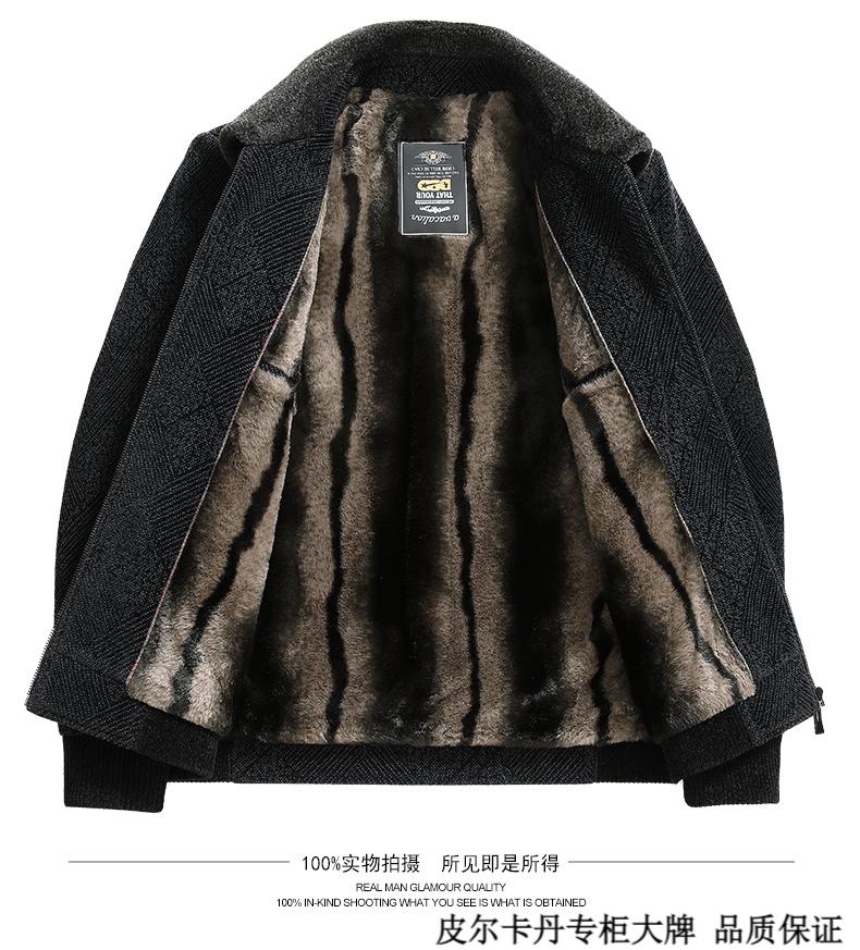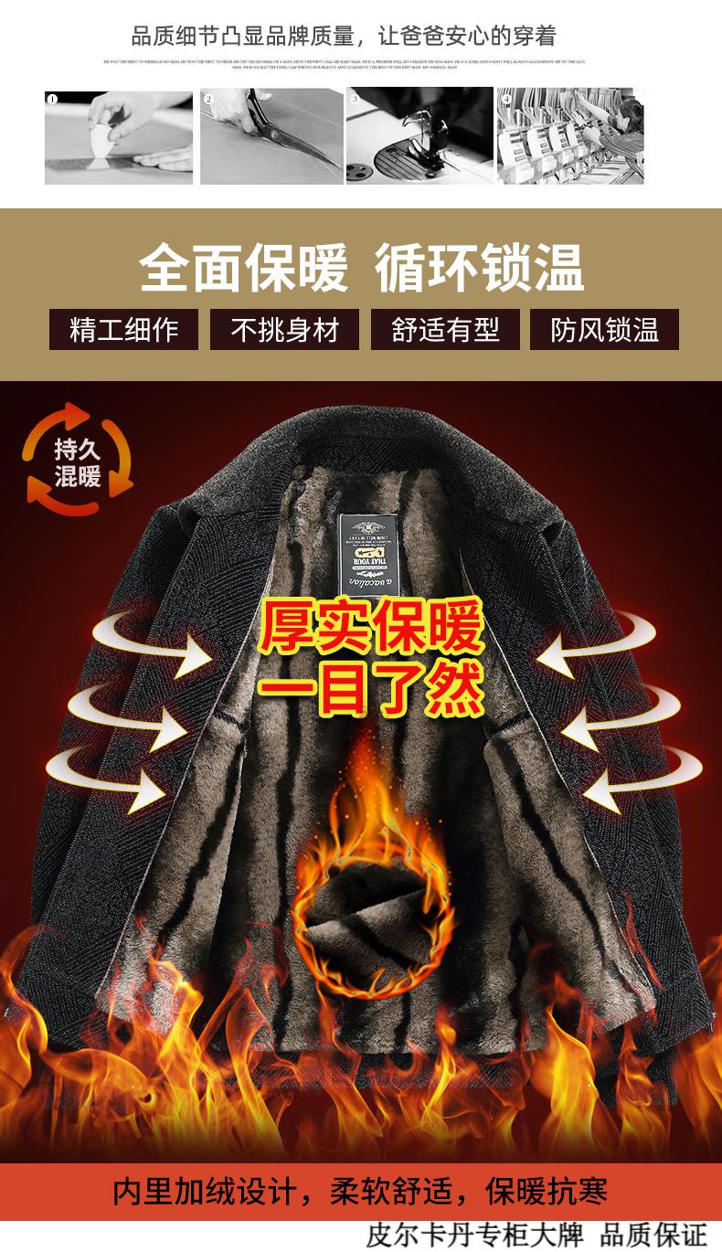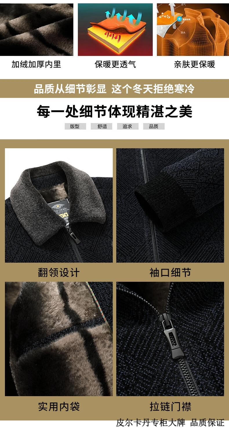 皮尔卡丹(pierre cardin)中年男士棉衣冬季中老年男装加绒加厚毛呢外套爸爸冬装棉服男 藏青色 180 适合115-130斤