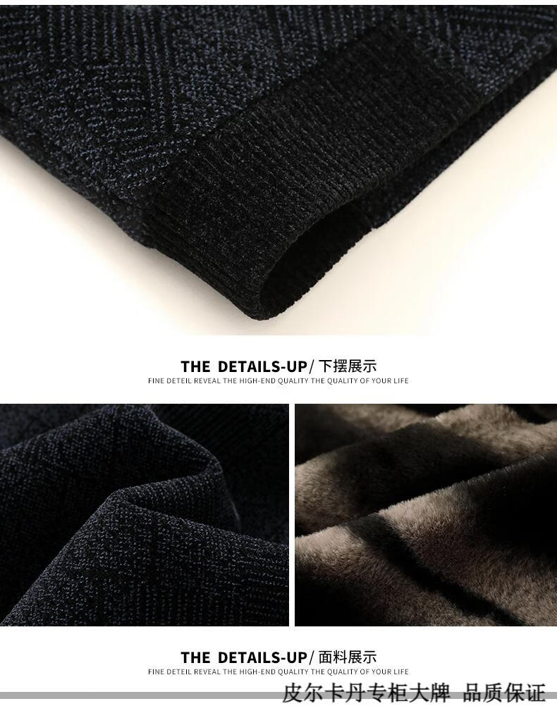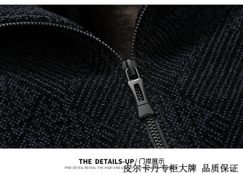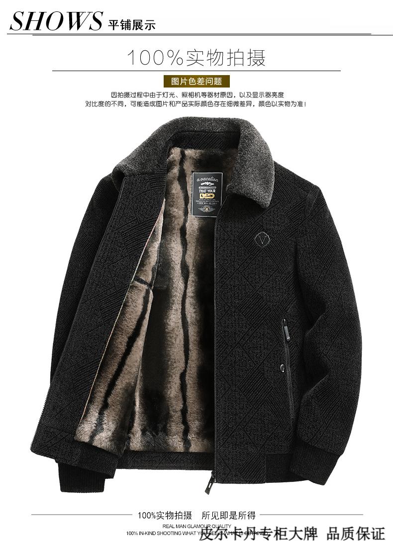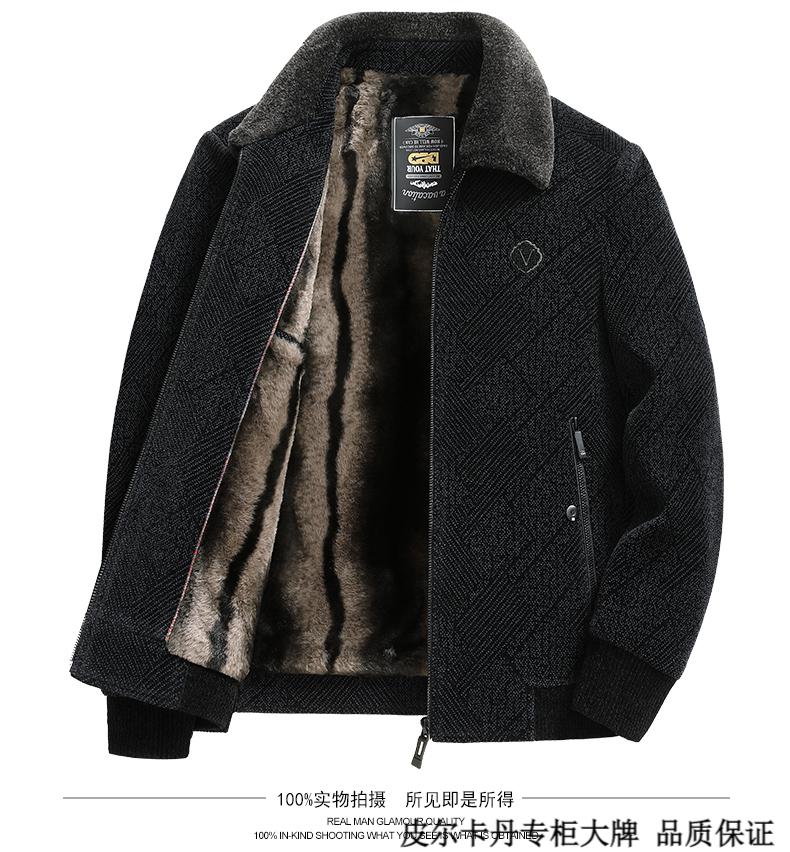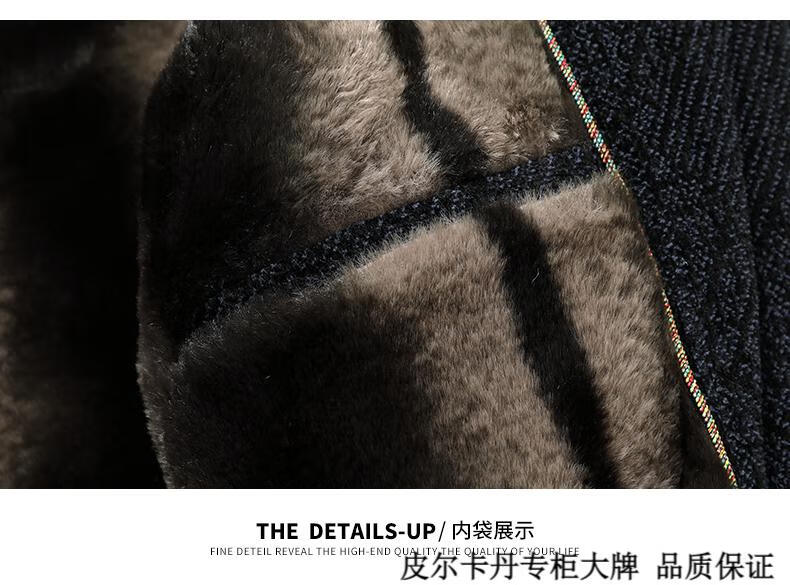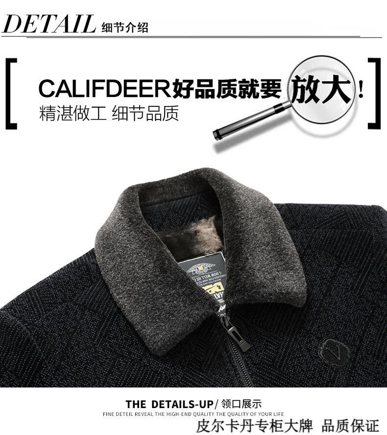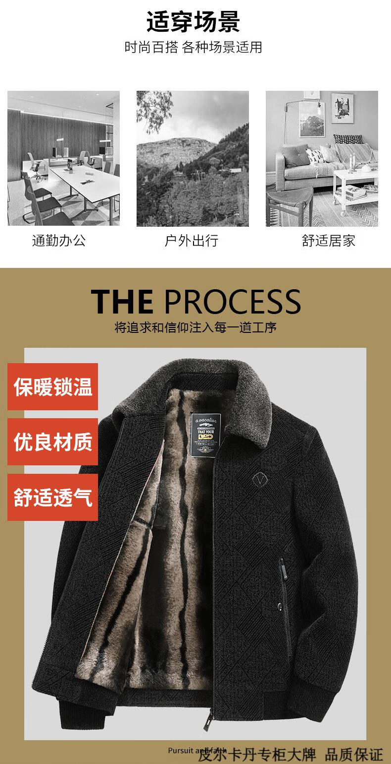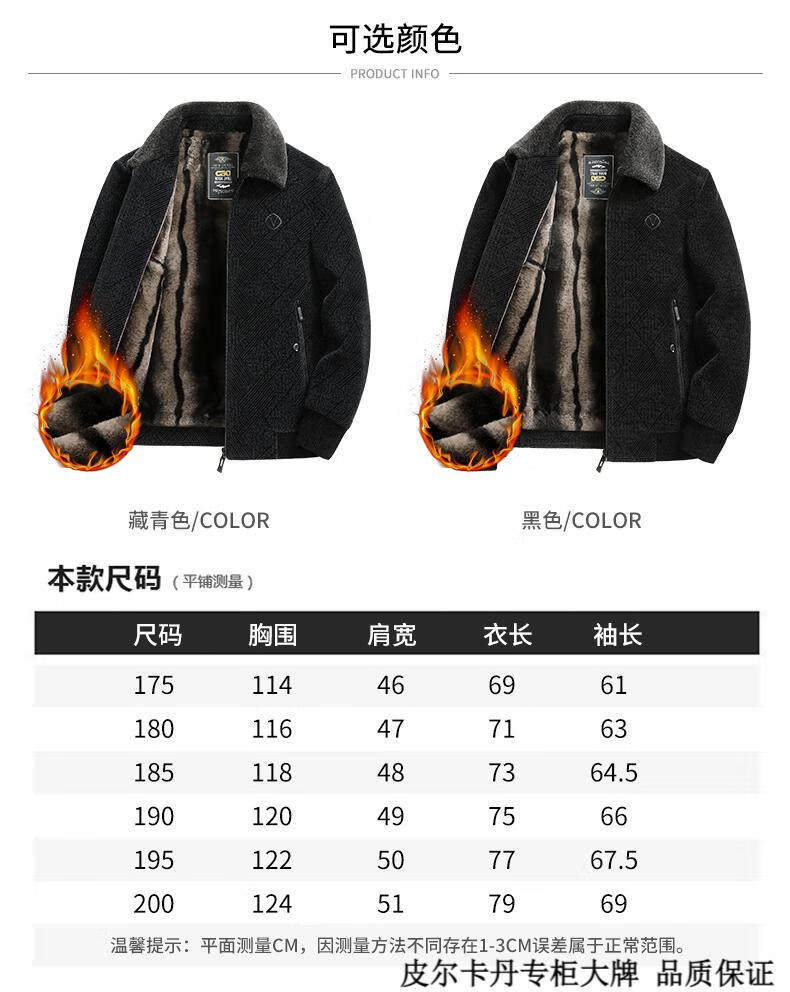 皮尔卡丹(pierre cardin)中年男士棉衣冬季中老年男装加绒加厚毛呢外套爸爸冬装棉服男 藏青色 180 适合115-130斤