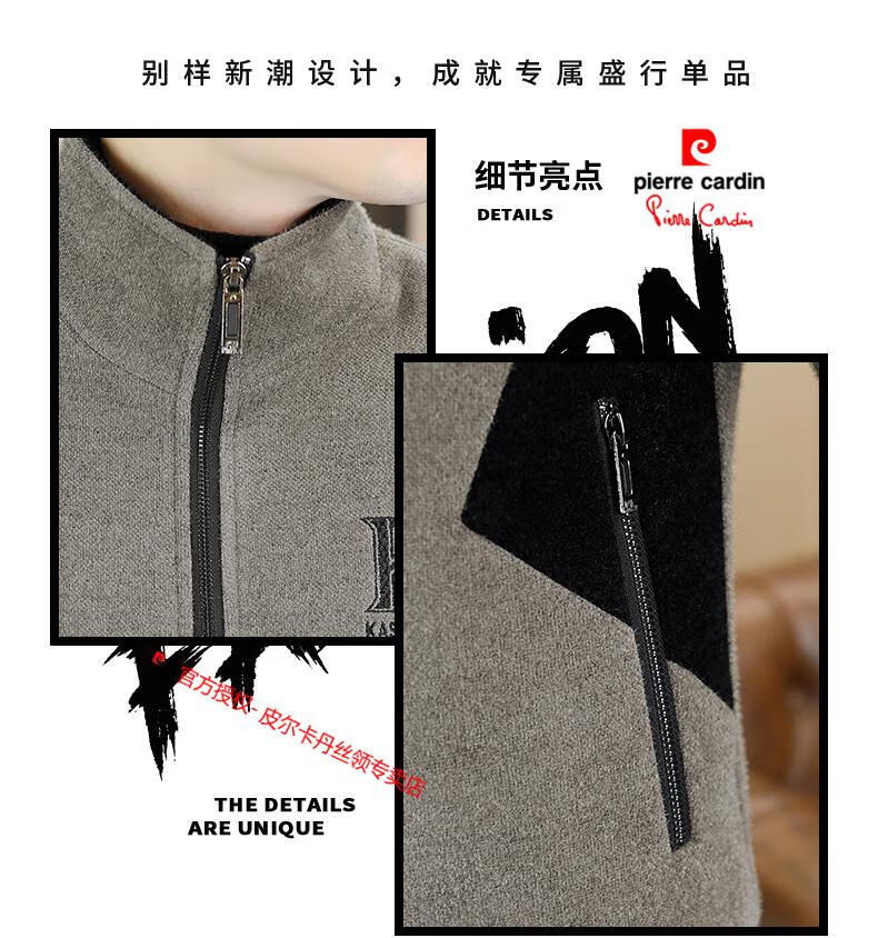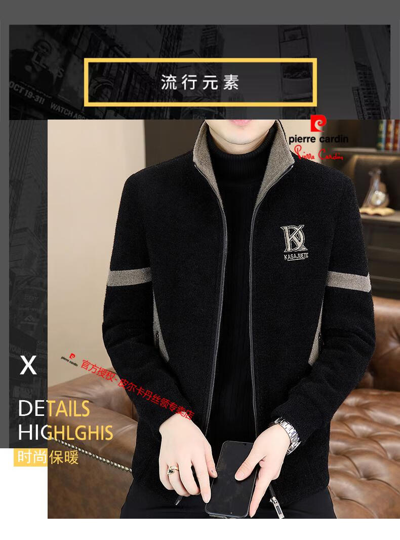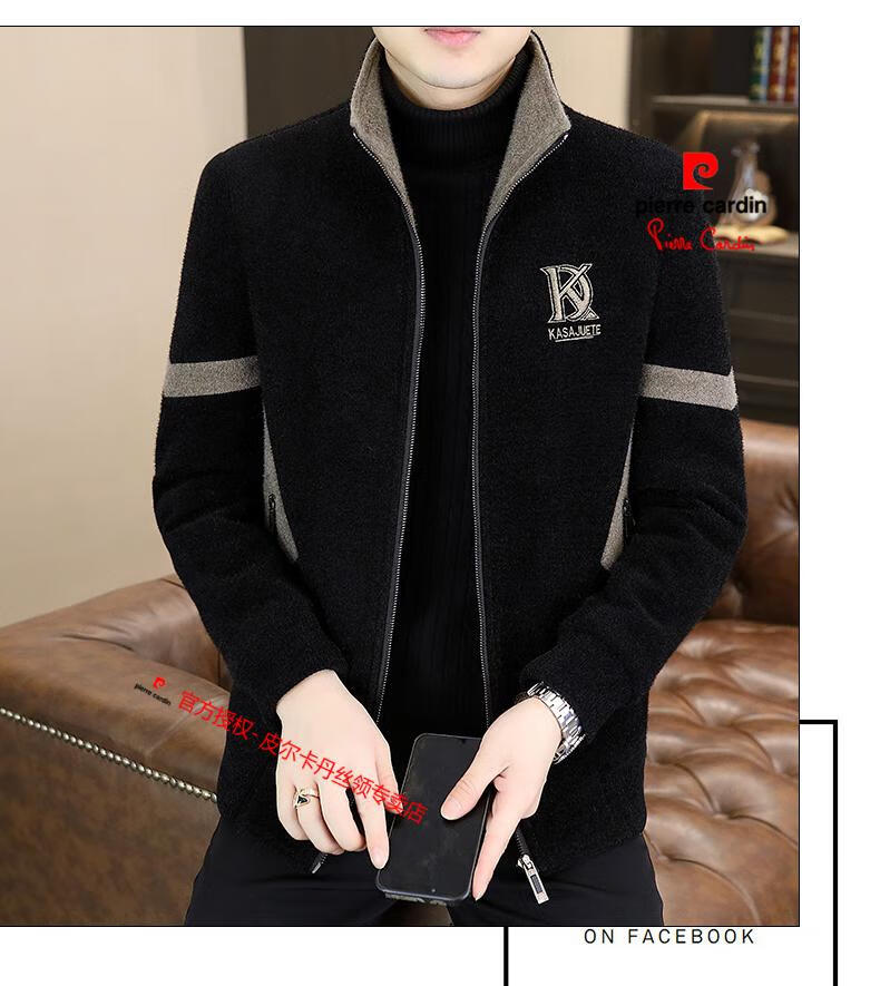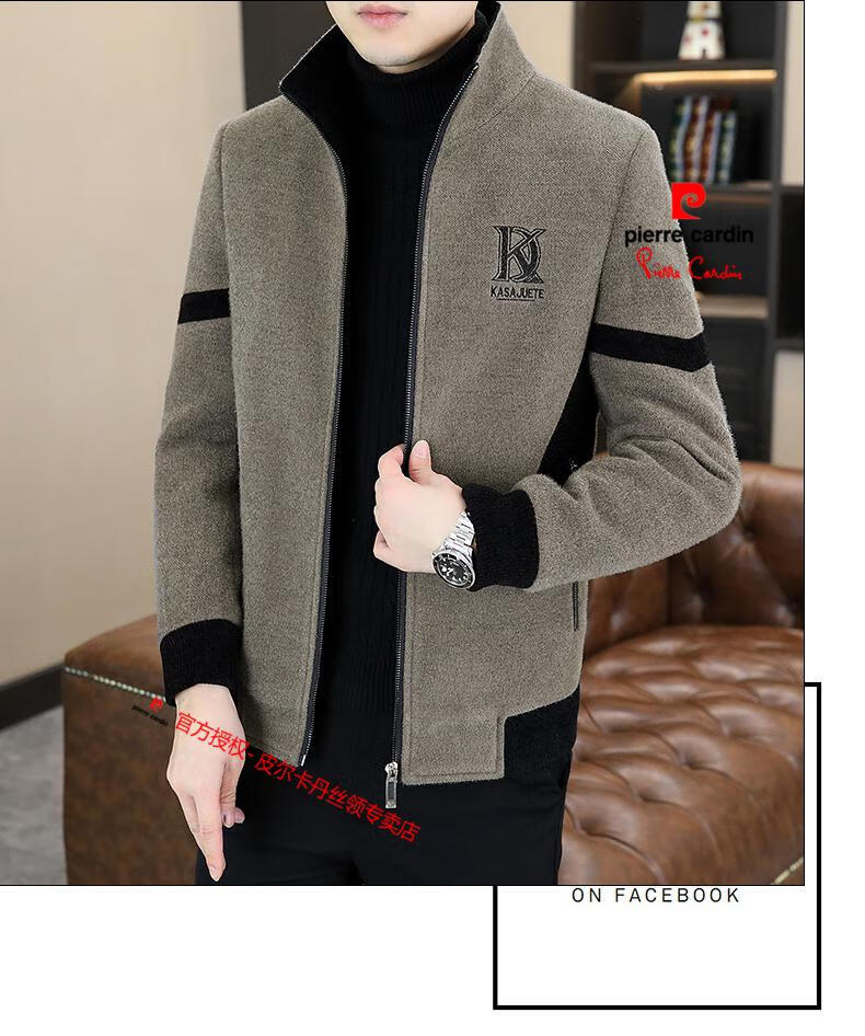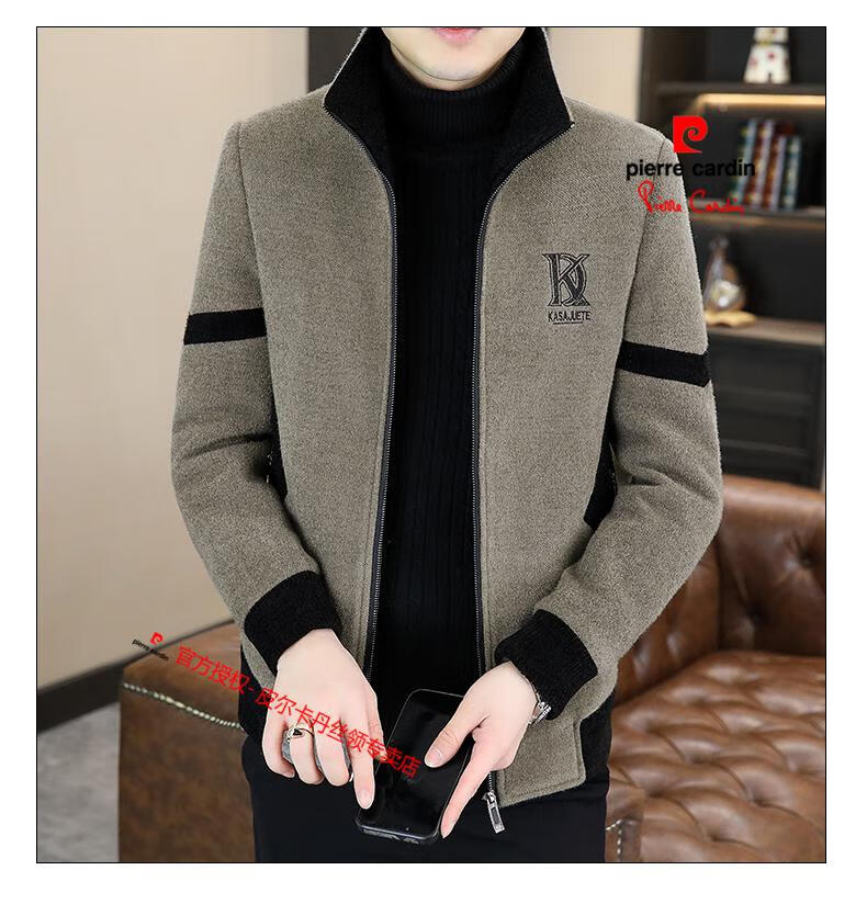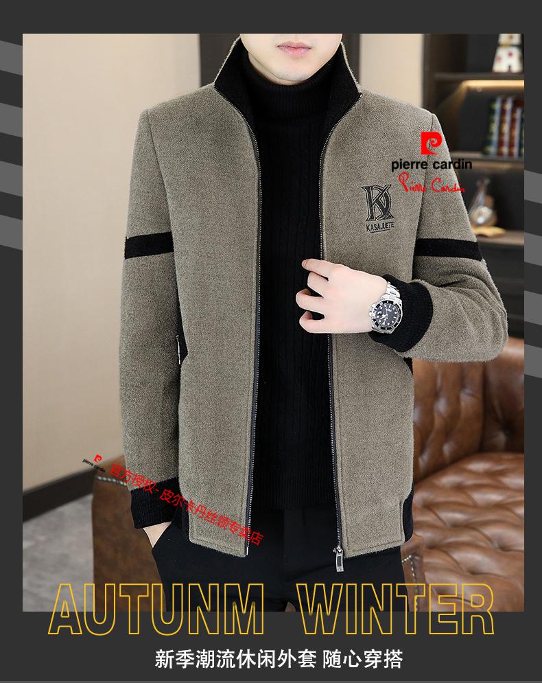 Pierre Cardin autumn and winter woolen coat men's short woolen coat gold mink velvet men's casual velvet thickened jacket 5522 Khaki thickened velvet XL 125-140Jin Jin equals 0.5 kg