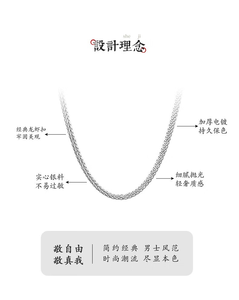 Chinese gold Chopin chain silver necklace men's clavicle chain trendy silver jewelry boys birthday gift for boyfriend and husband anniversary Chopin chain Jingsuda